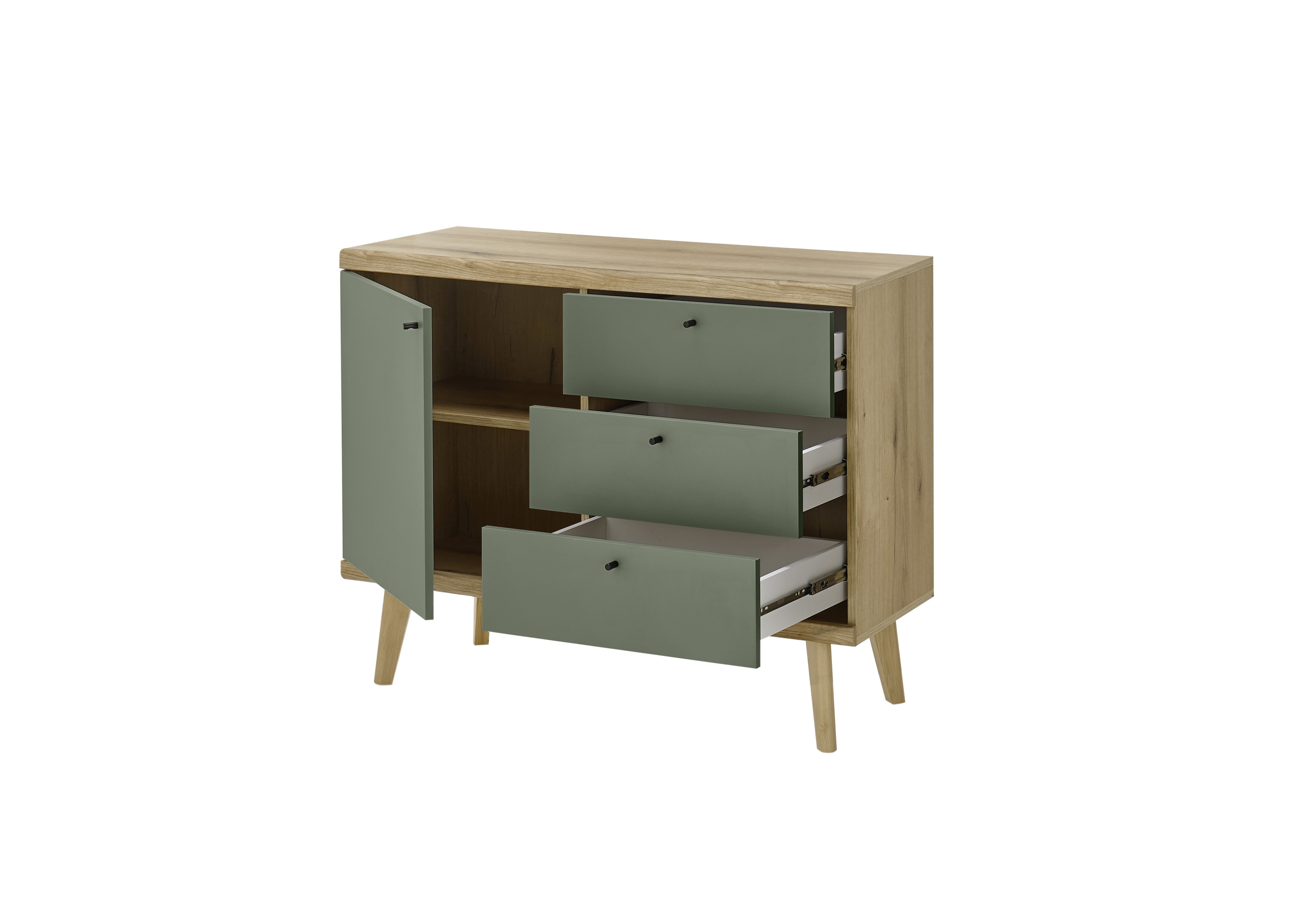 1 Kommode mit 1 Tür, 1 Einlegeboden und 3 Schubkästen