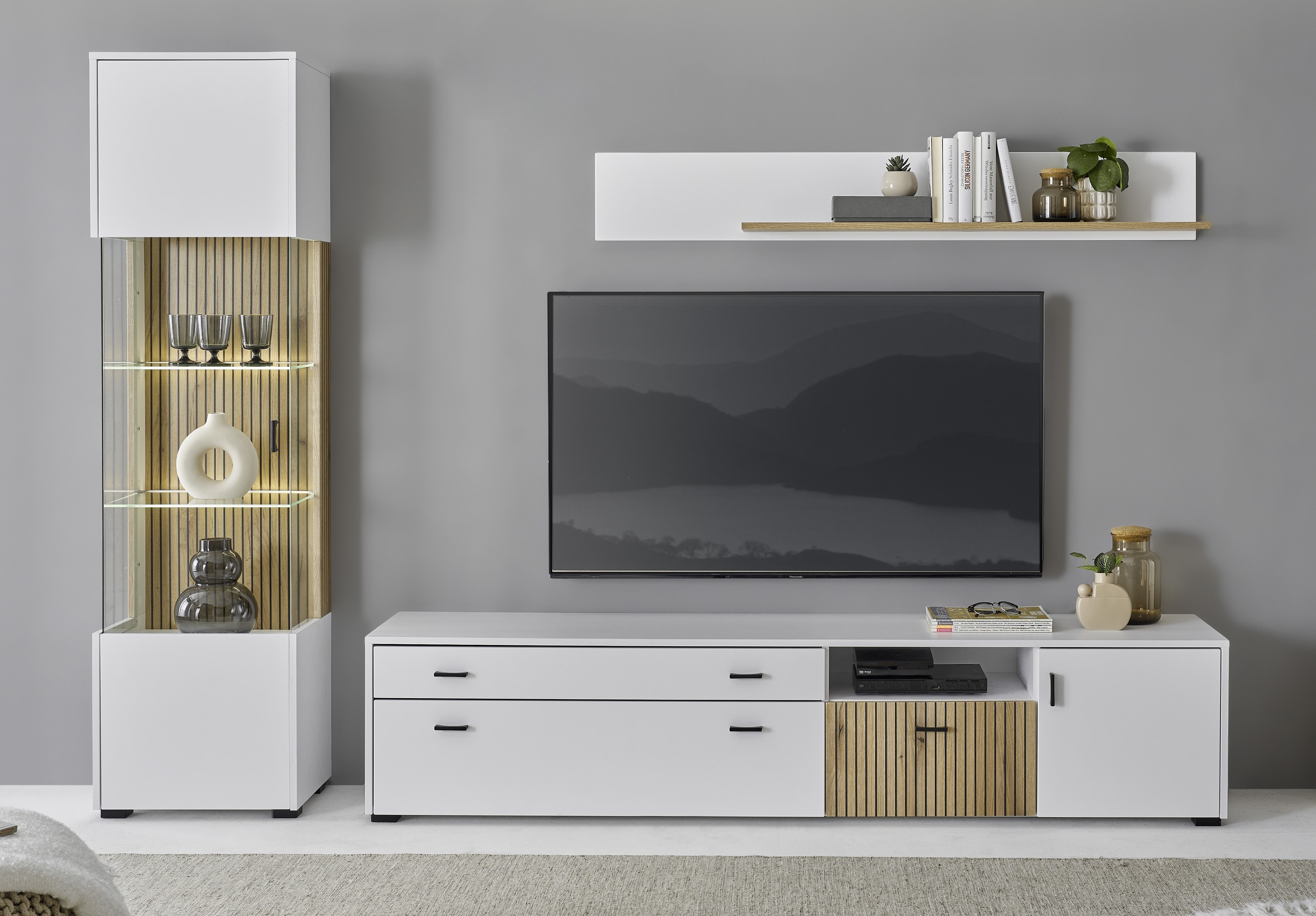 1 Lowboard mit 2 Türen, 1 Klappe, 1 Schubkasten und ein Gerätefach