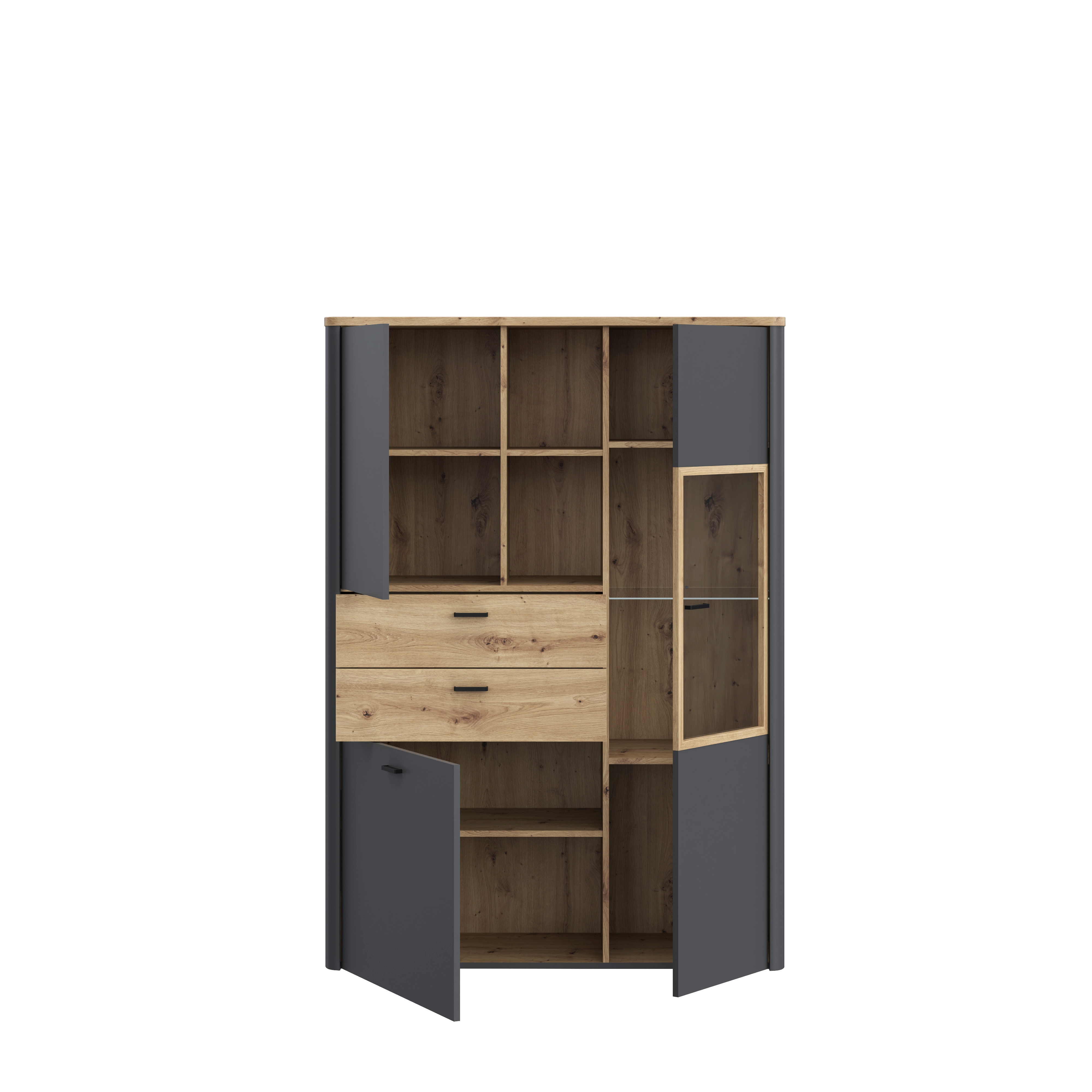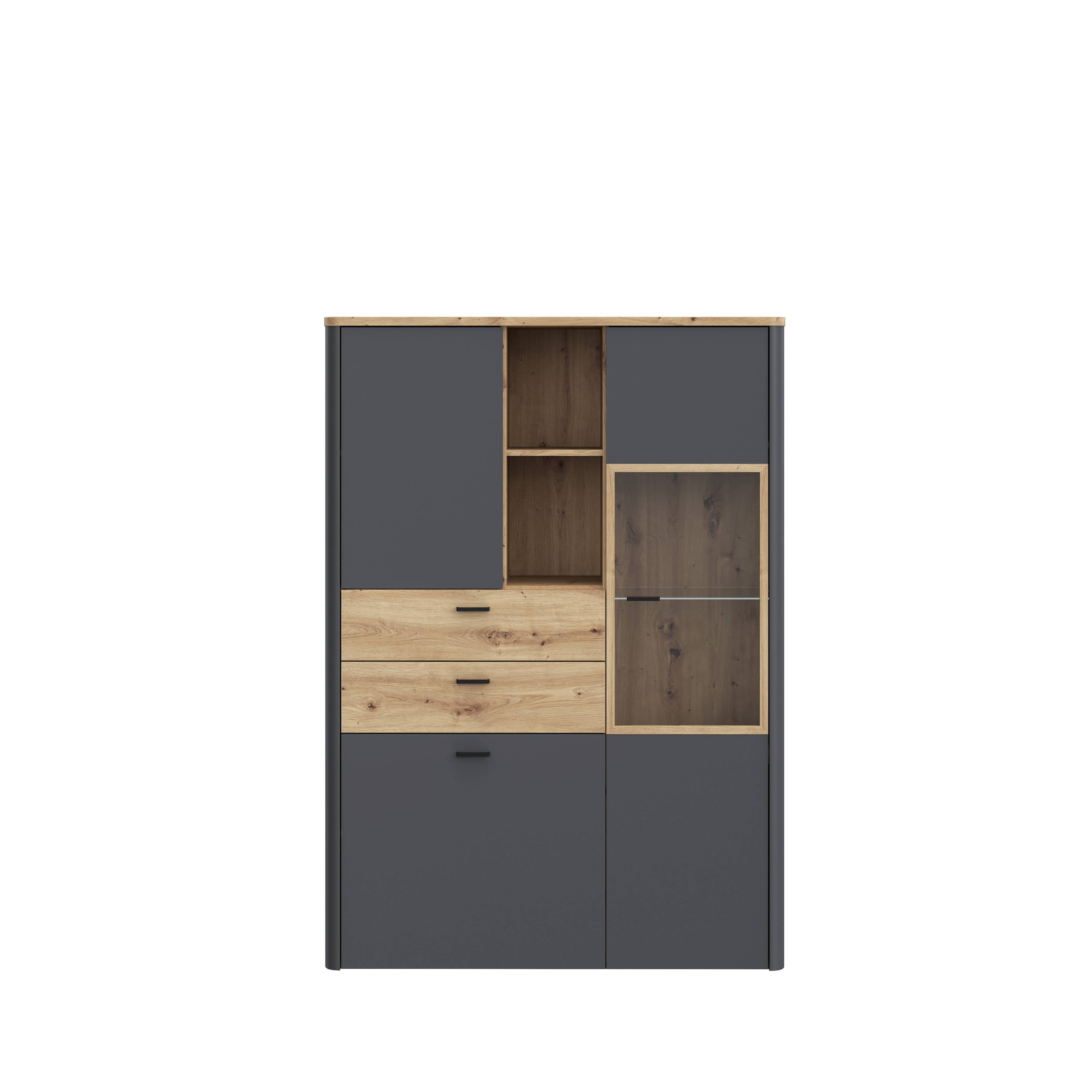 Front und Korpus: M610 Artisan Eiche Holznachbildung kombiniert mit Uni Wolfram grau