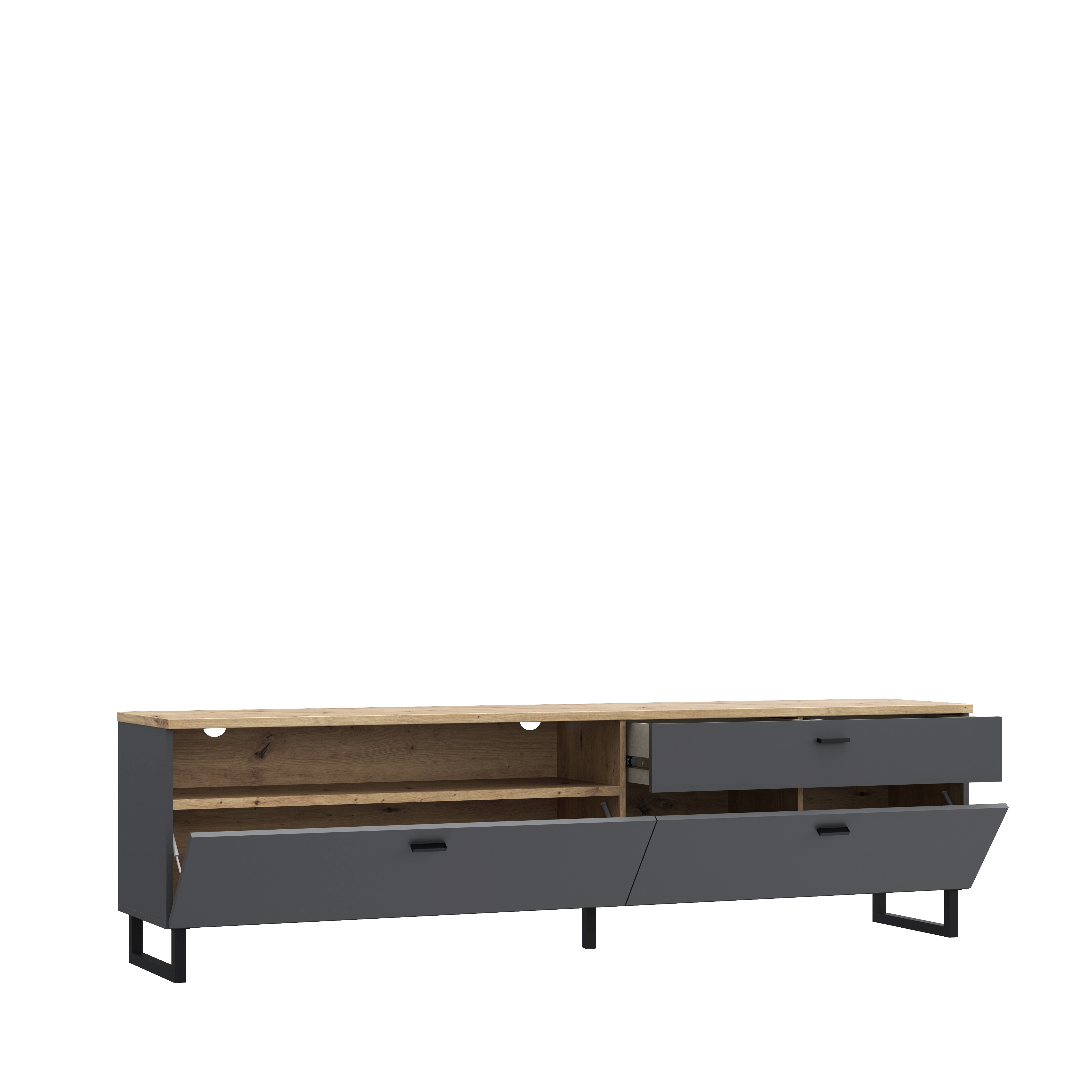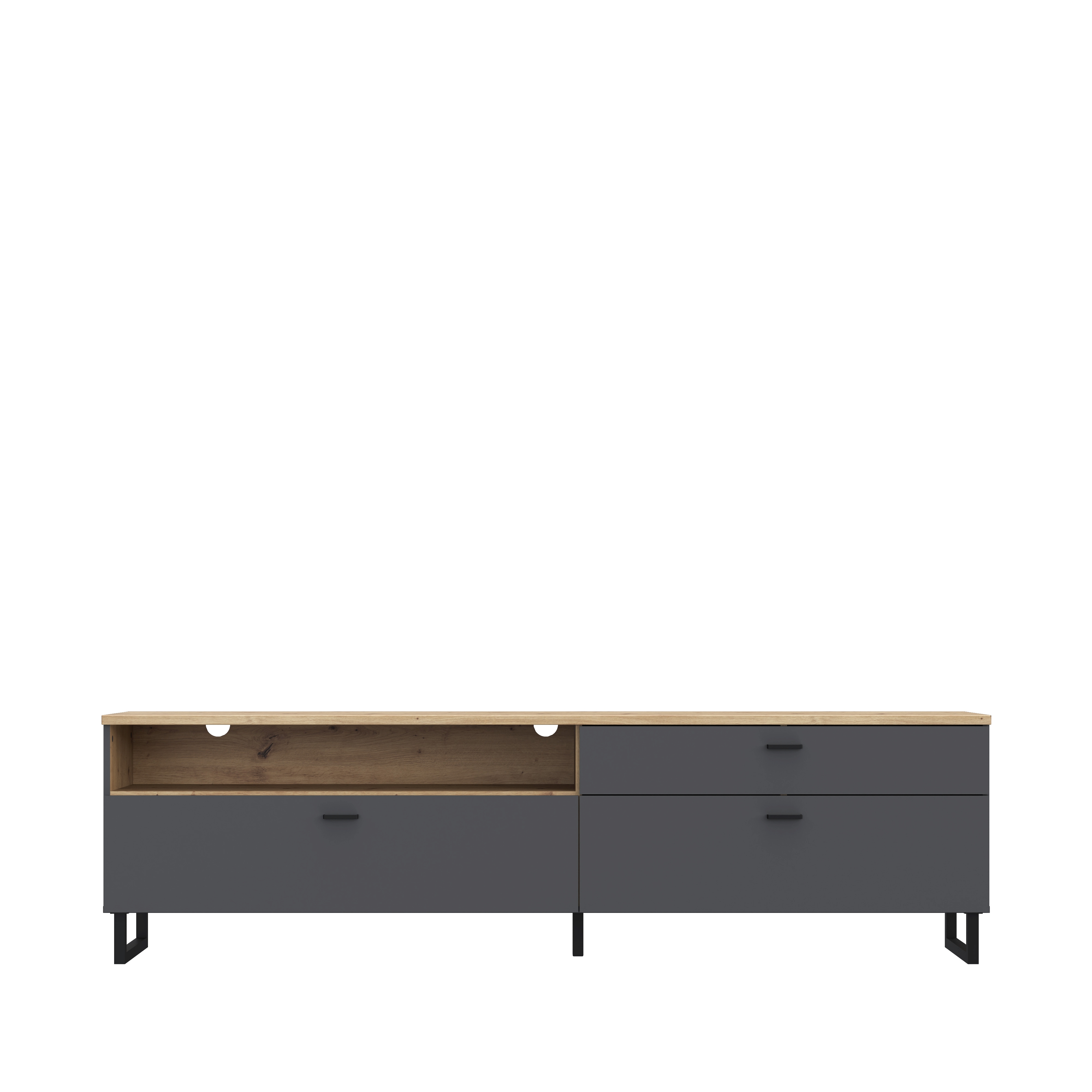 1 TV-Lowboard mit 1 offenen Fach, 3 Schubkästen