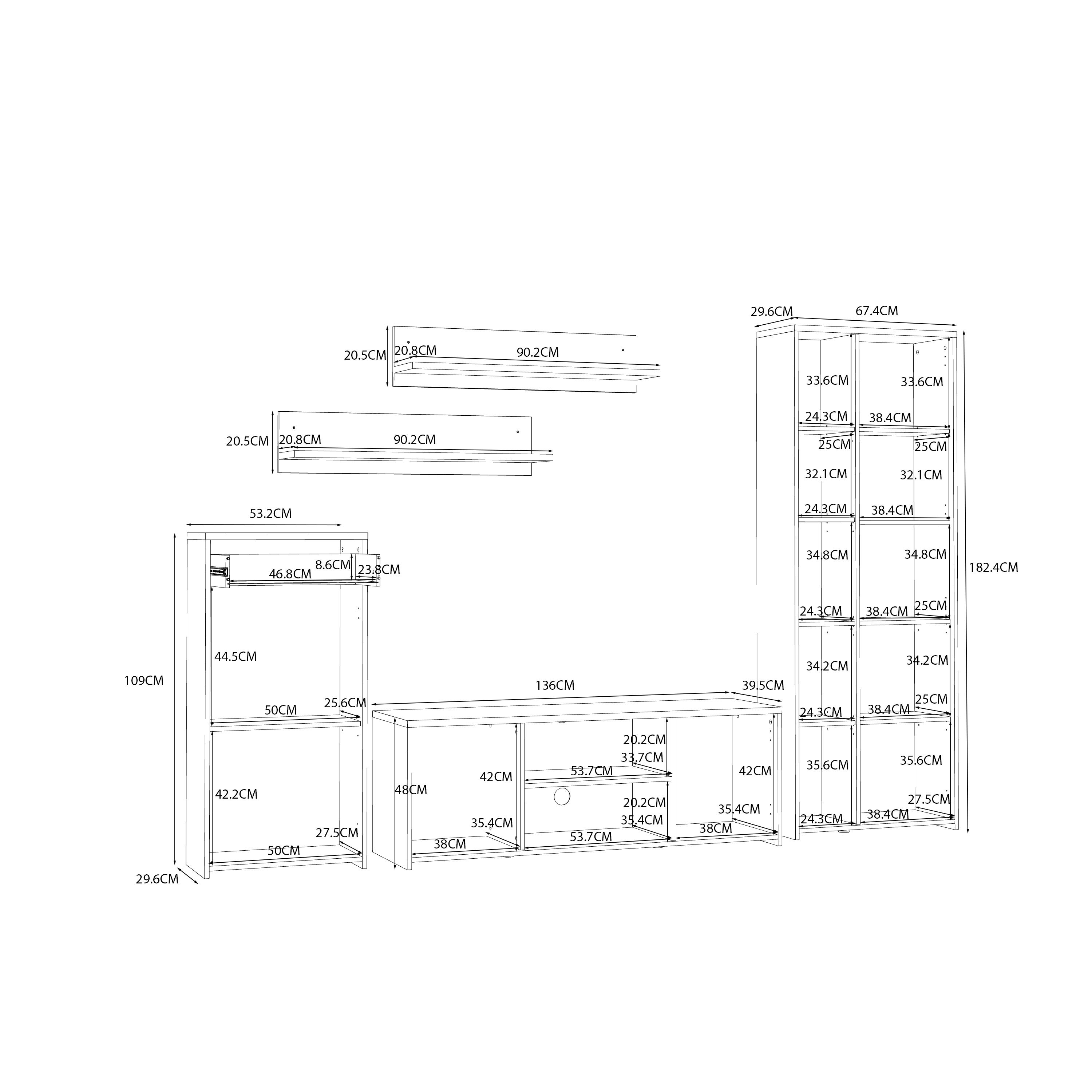 1 TV-Element mit 2 Türen, 2 offenen Fächern und 1 Kabeldurchlass