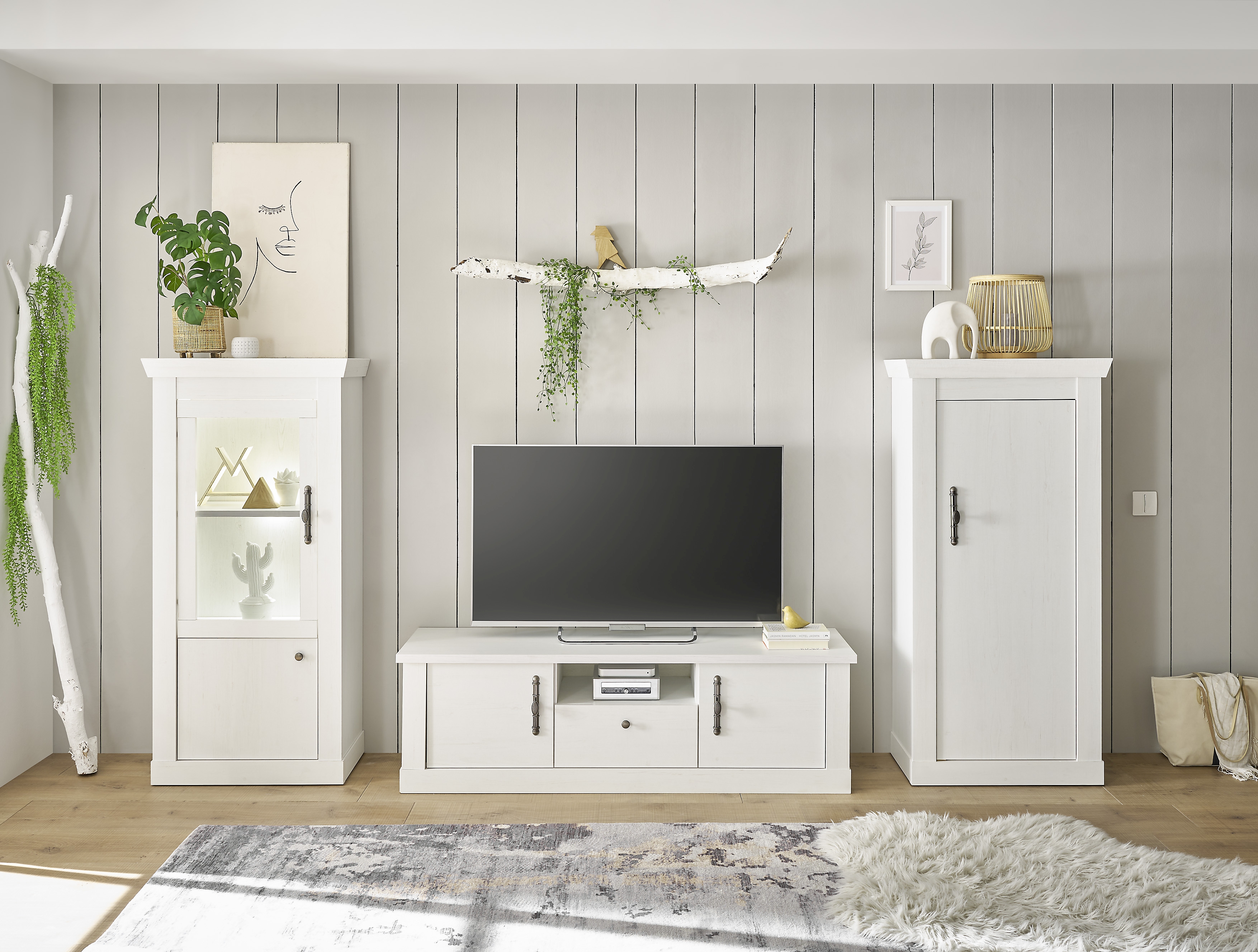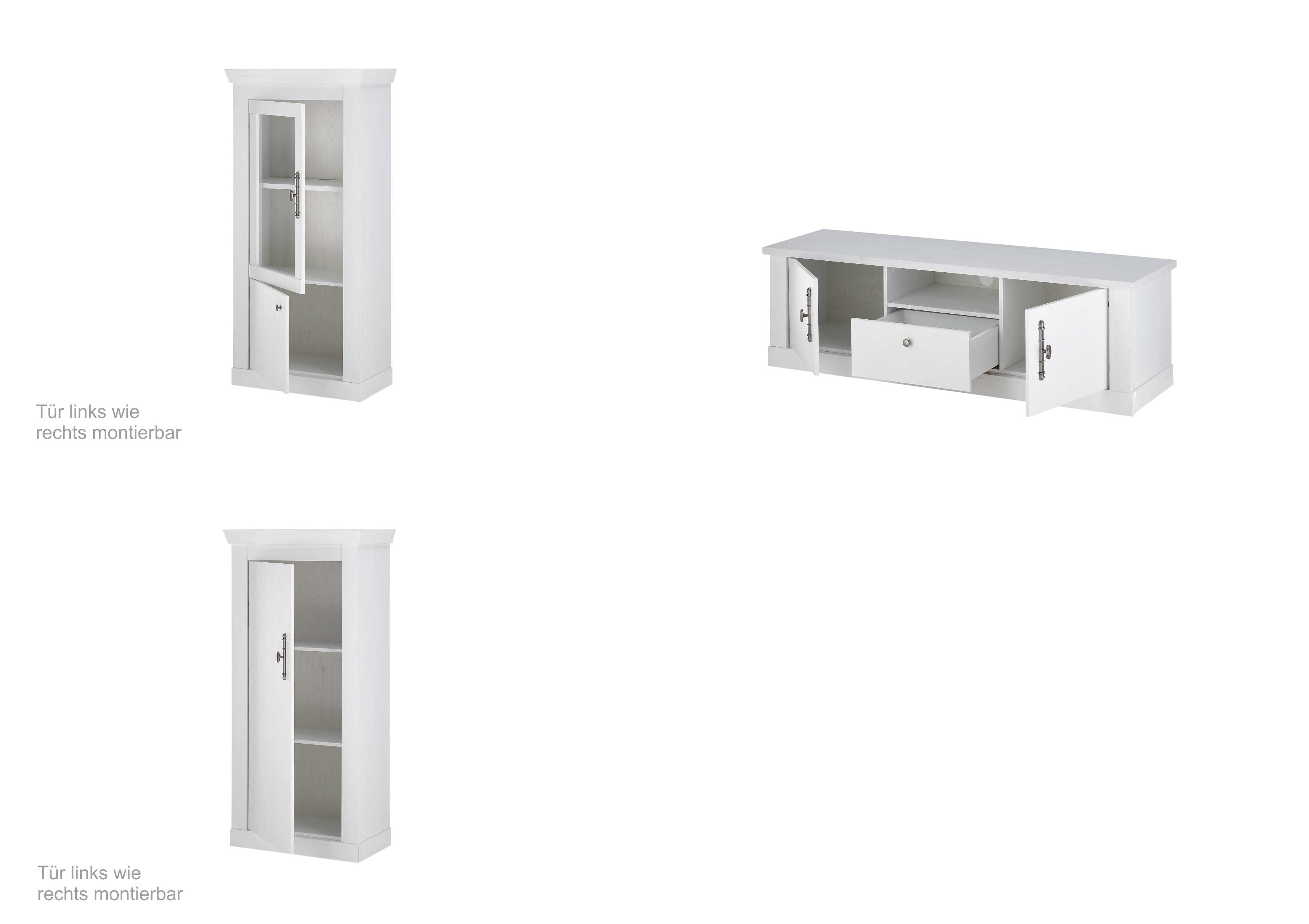 1 Lowboard mit 2 Türen, 1 Schubkasten, 1 Gerätefach und 1 Kabeldurchlass