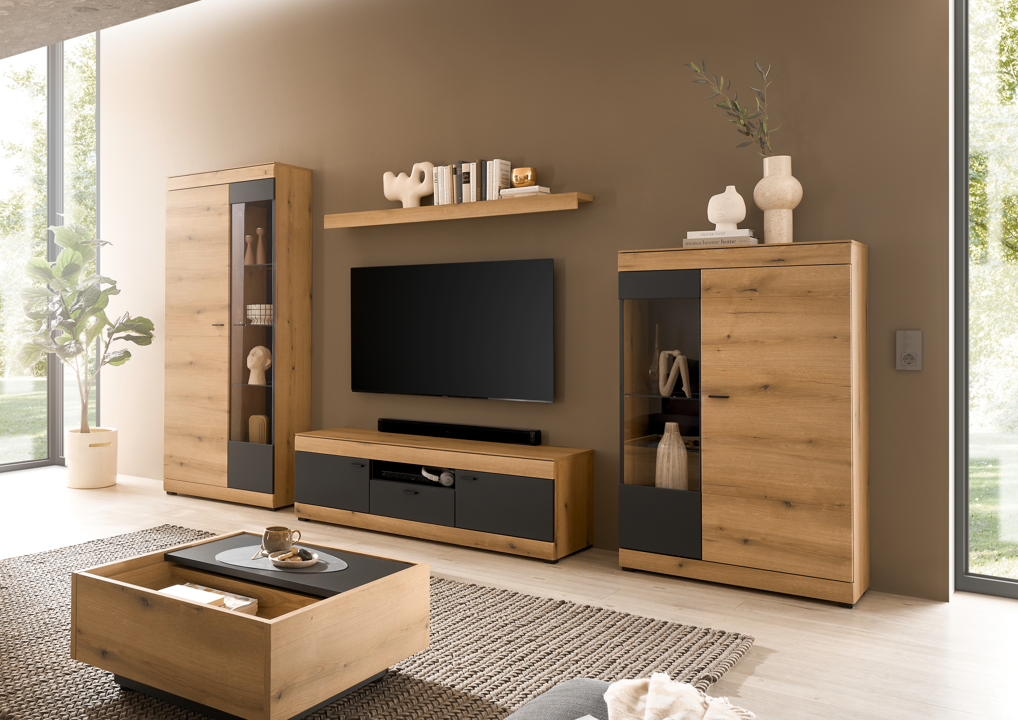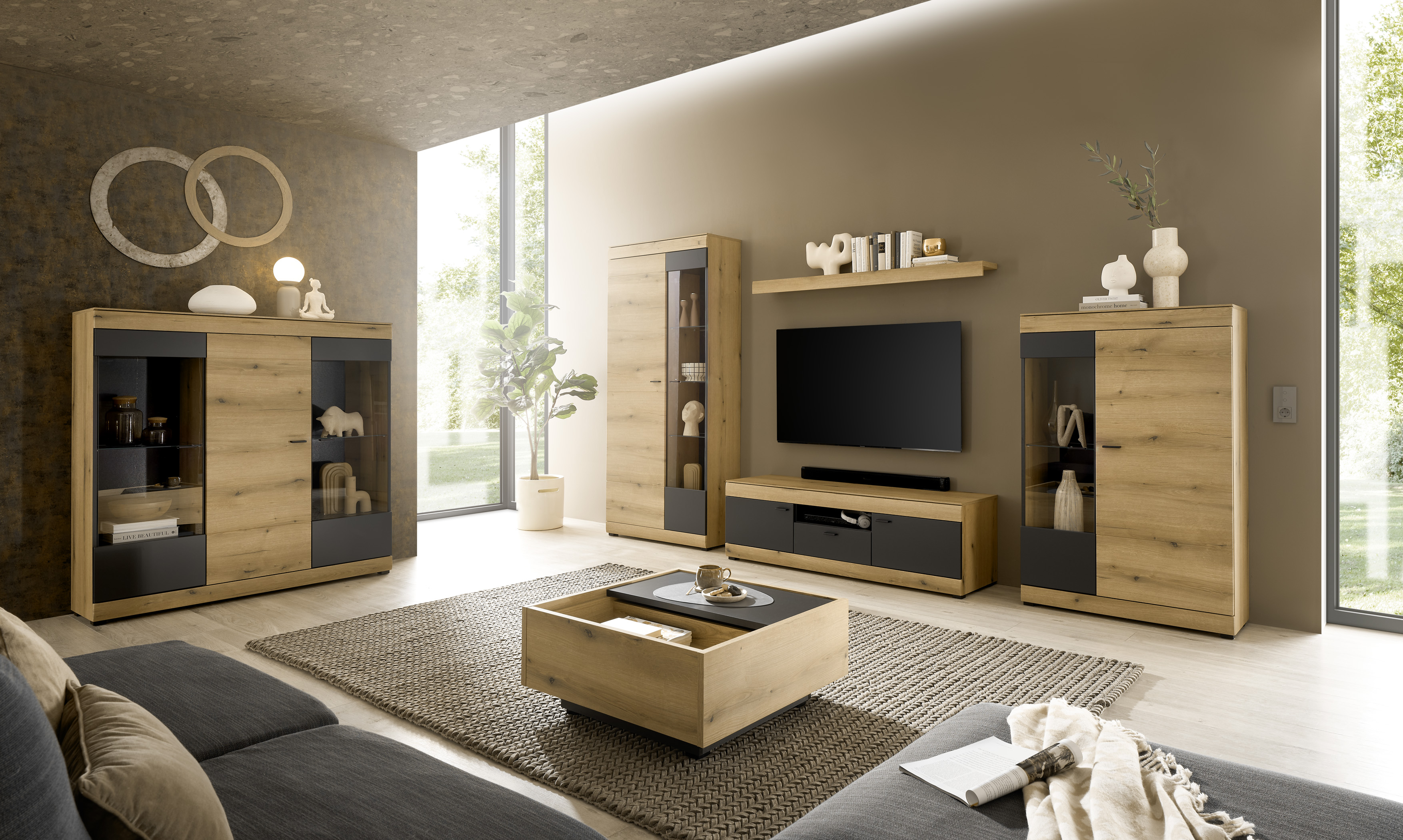 - Zeitloses Design mit Eiche-Fronten und graphitmatten Akzenten