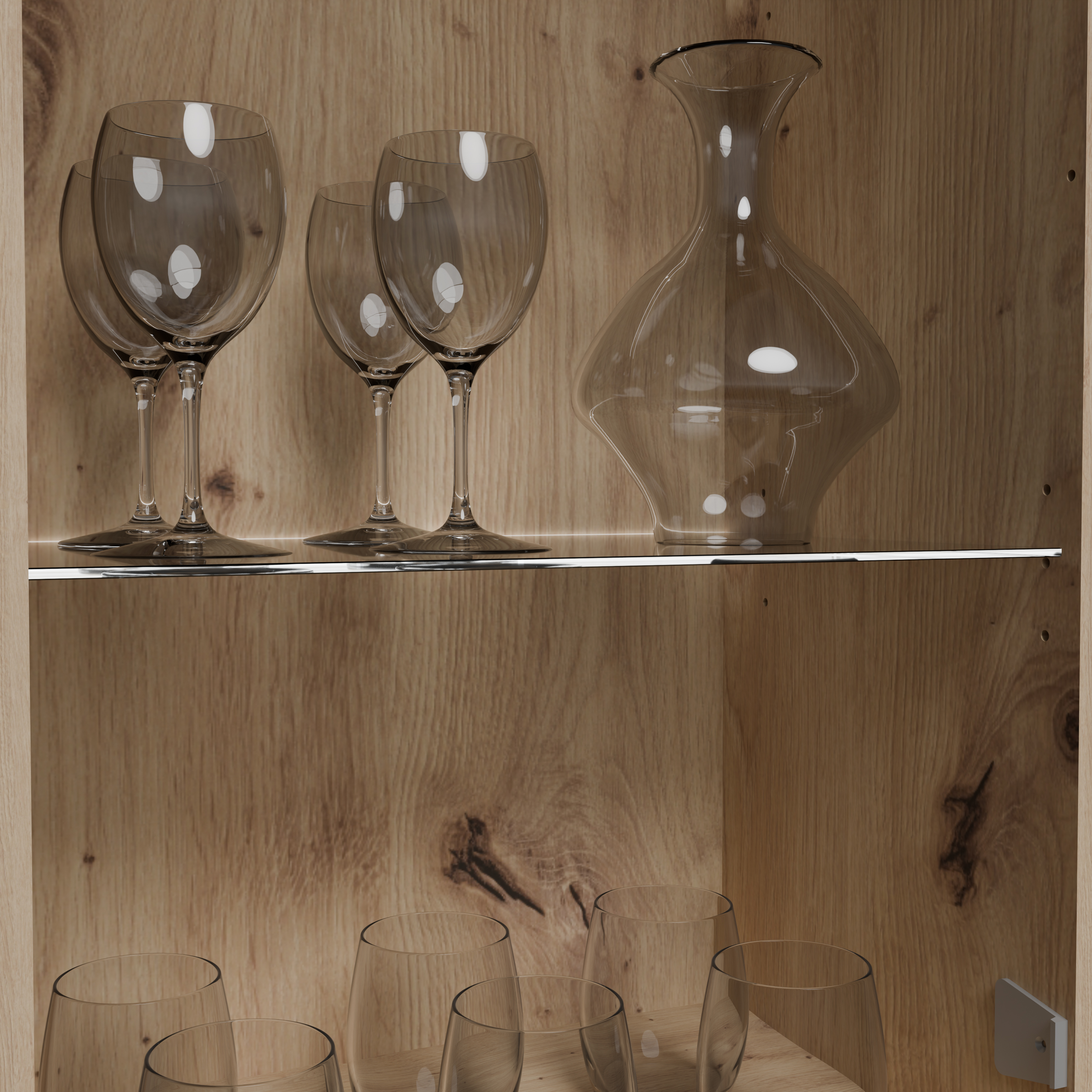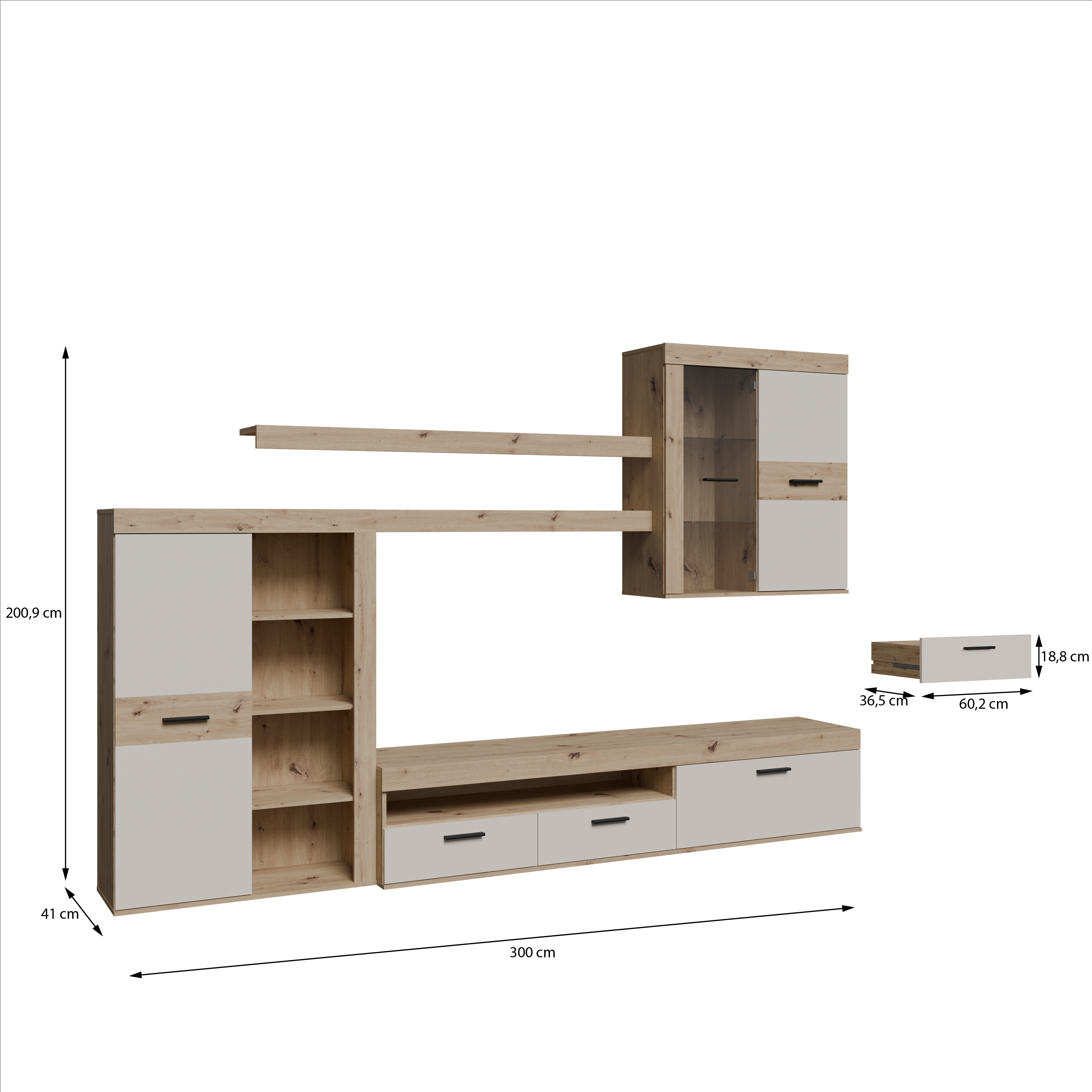 | Ausstattung Anbauwände: | Schublade(n), inkl. Beleuchtung, offene Fächer | ||