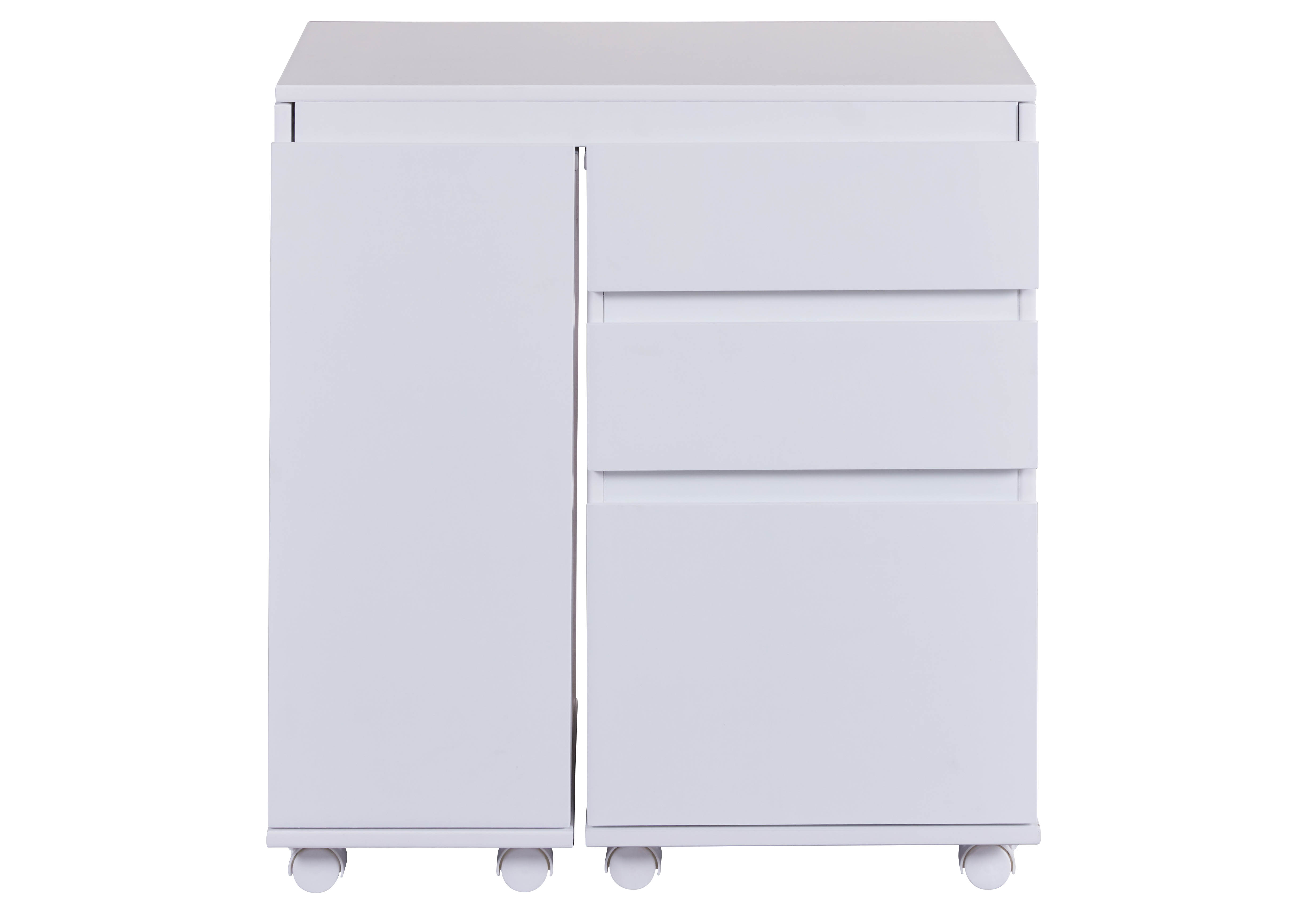 Um den Tisch zu verlängern, müssen Sie einfach die beiden Rollcontainer trennen.