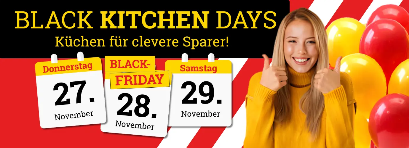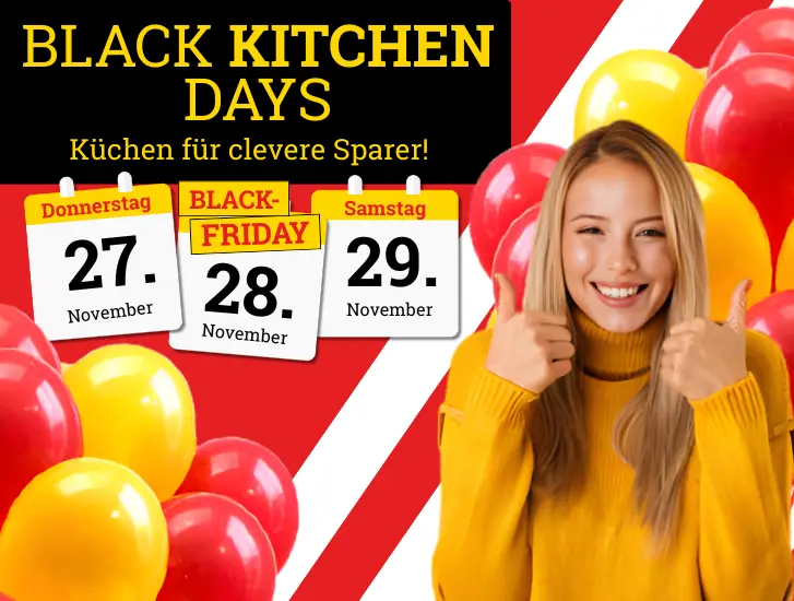 Unsere Black Kitchen Days mit großem Küchen-Sonderverkauf sind da - und mit ihnen Ihre große Chance auf Küchen-Schnäppchen, die Sie so kein zweites Mal finden werden!