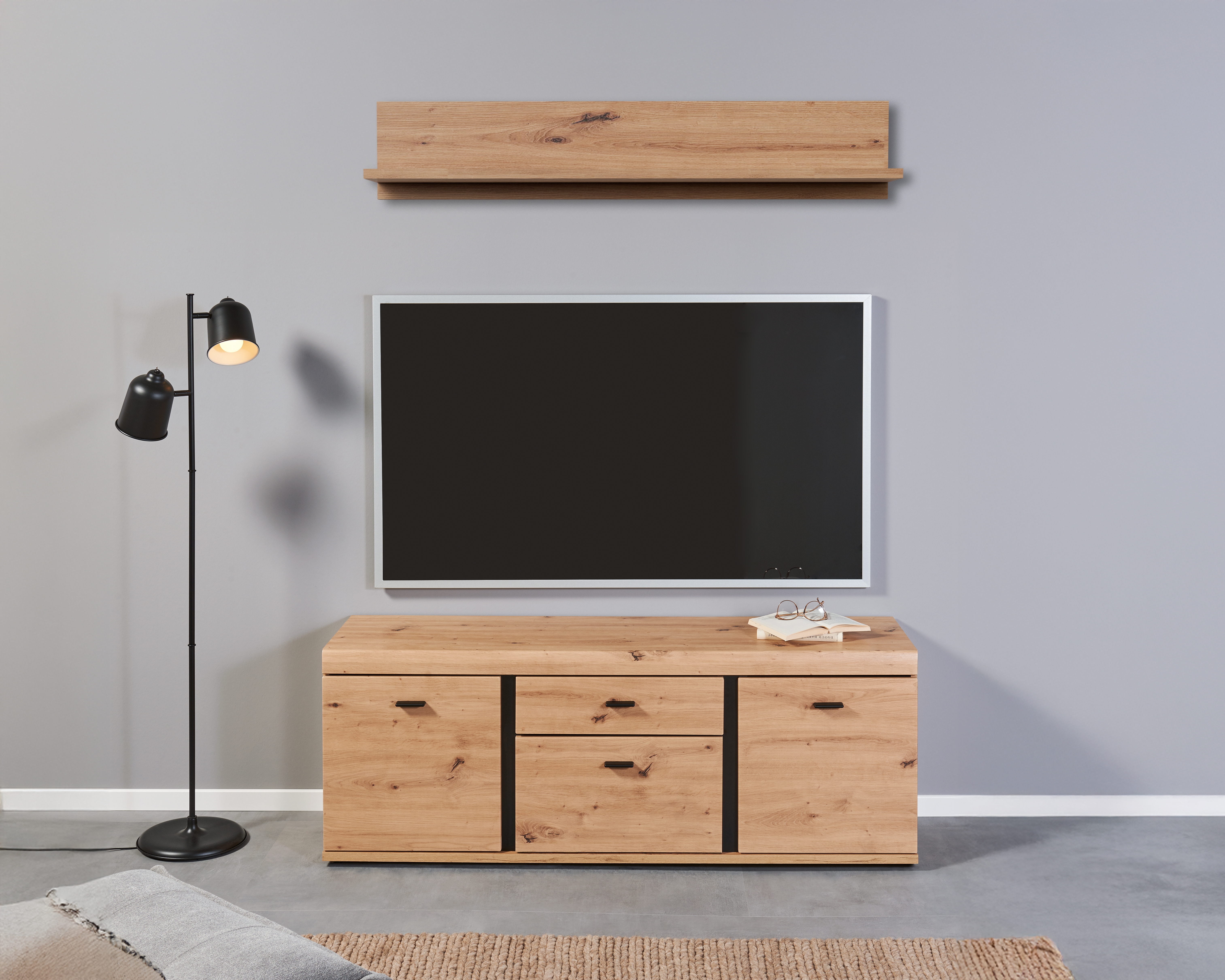 Banc TV avec étagère murale KRETA