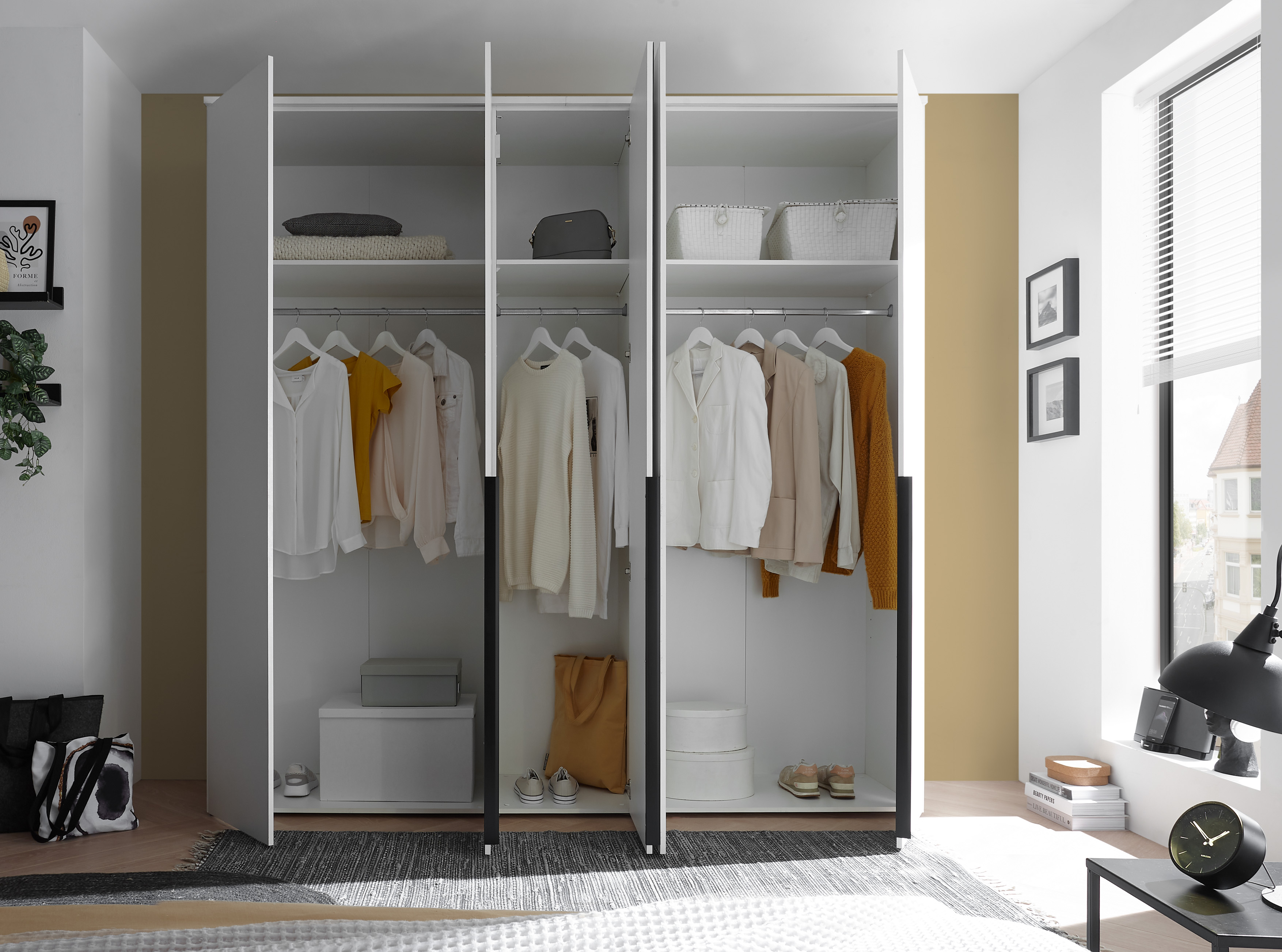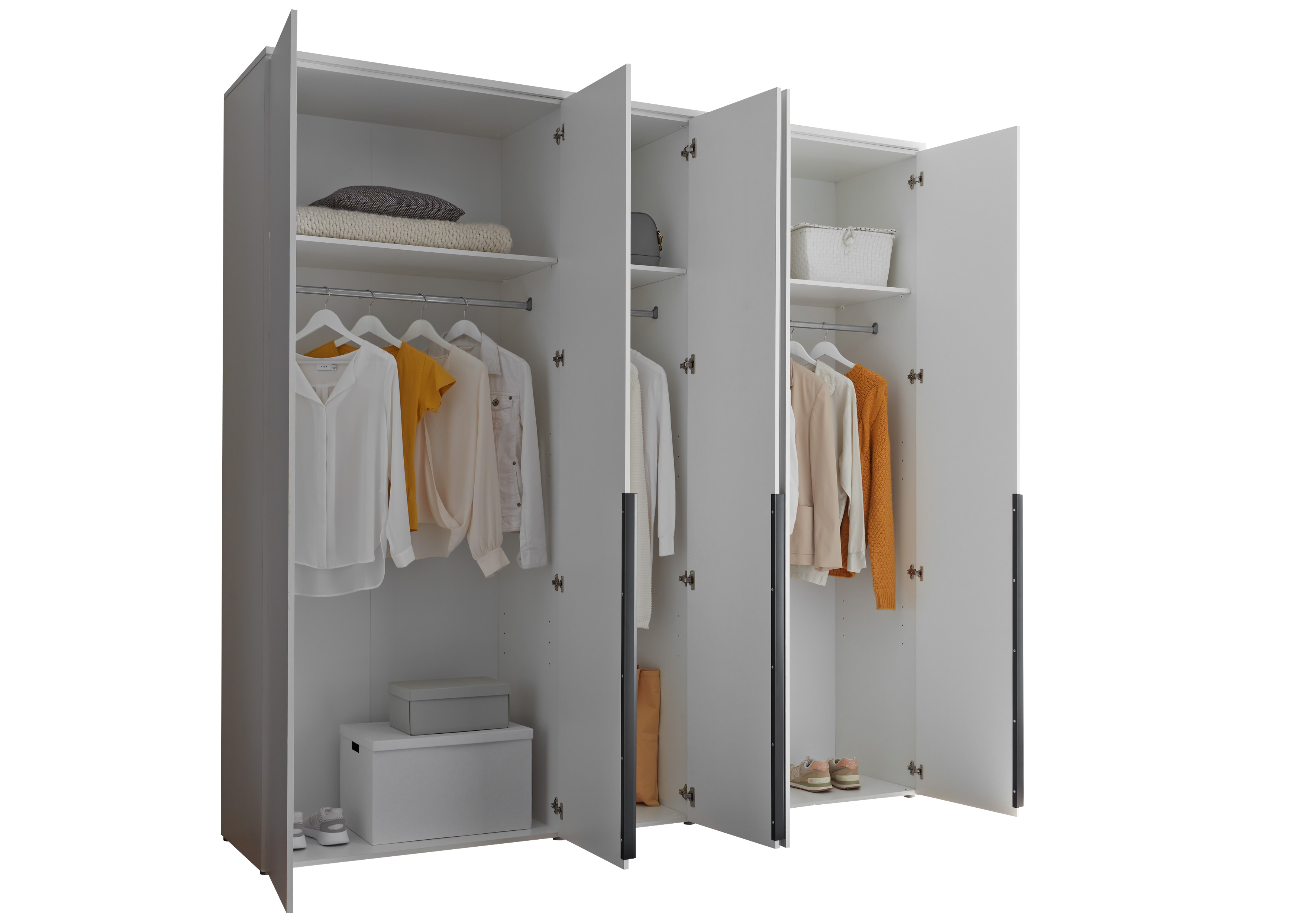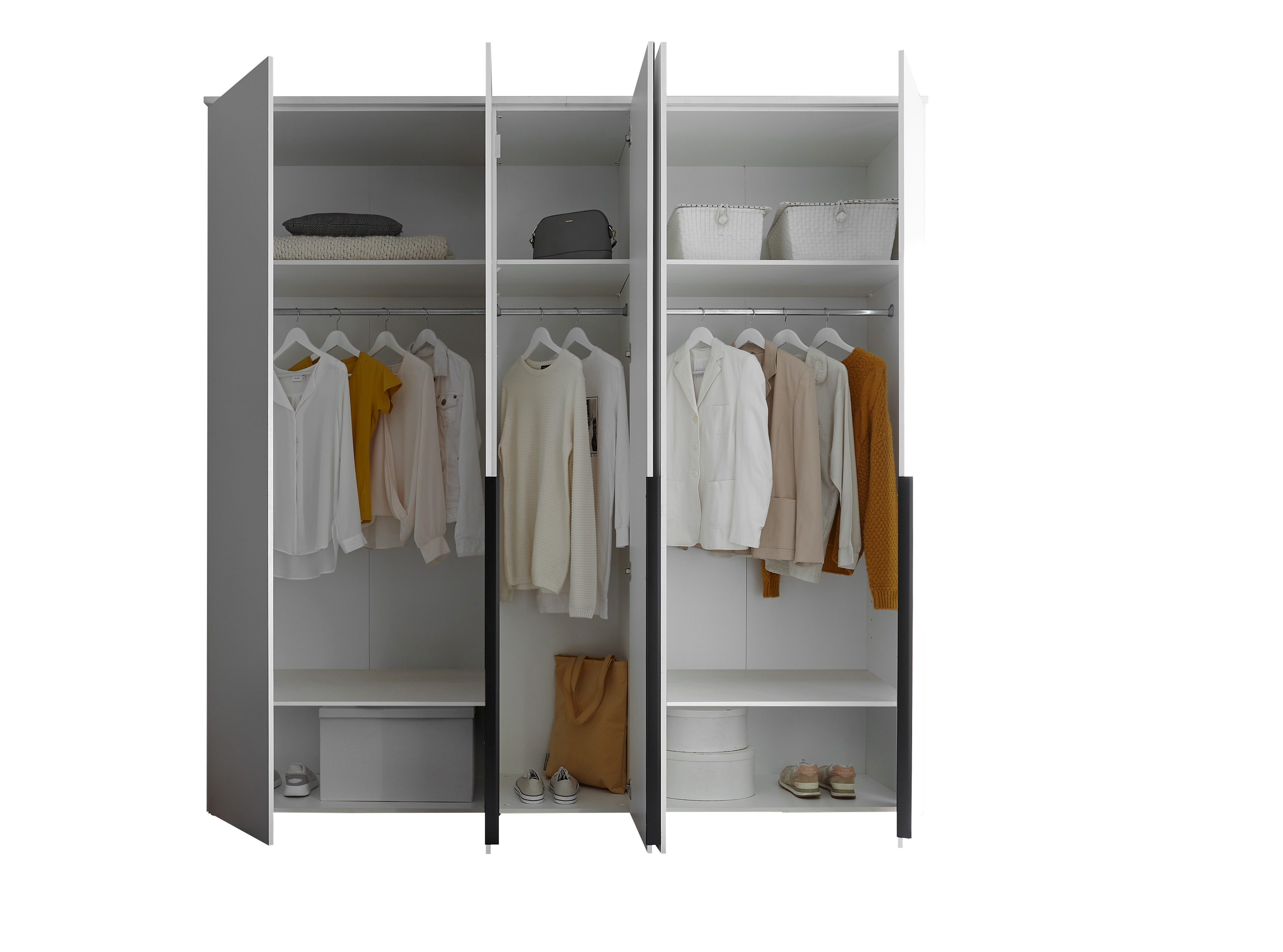 Répartition intérieure : 2 parois médianes et, par compartiment, 1 tablette et 1 barre de penderie