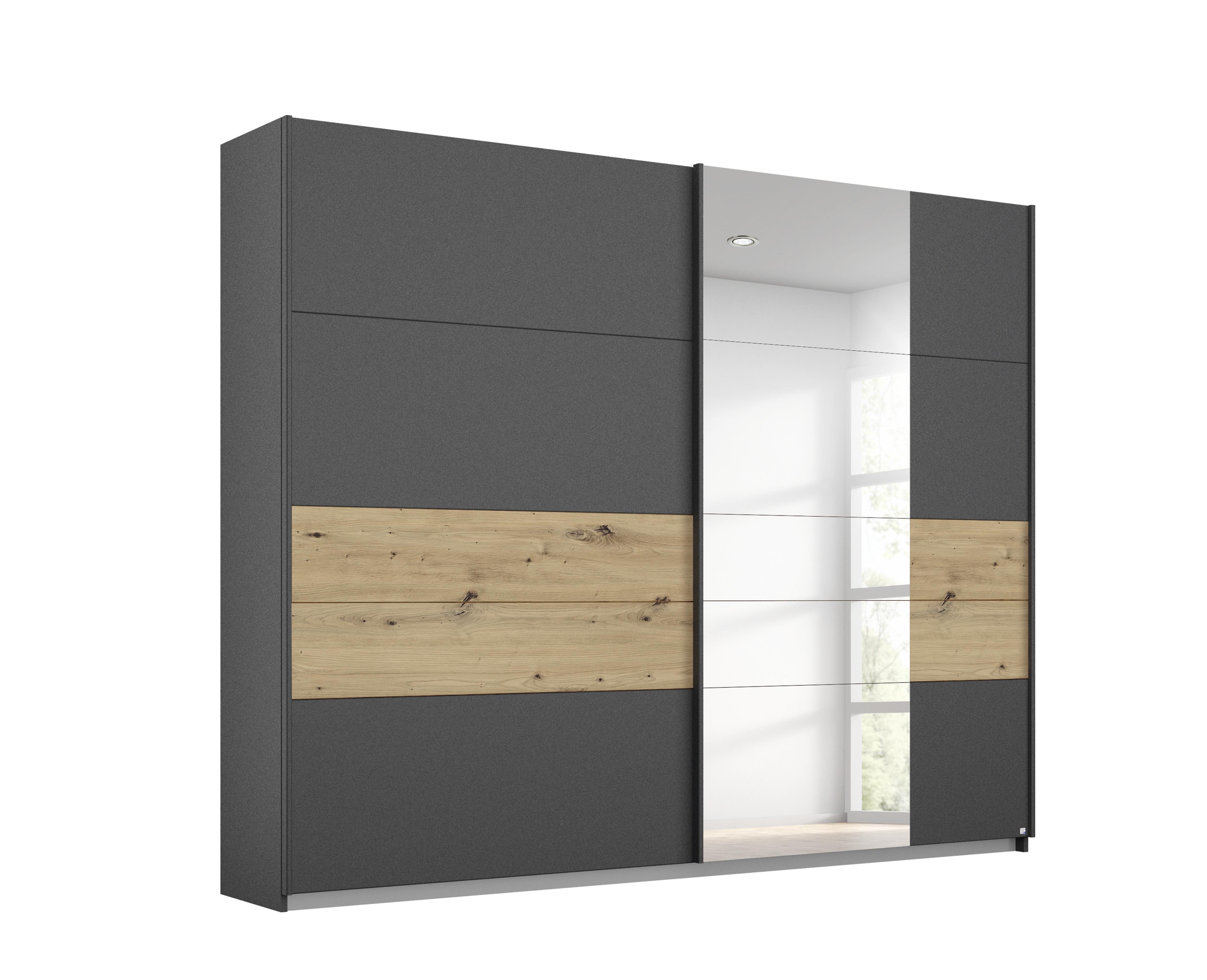 Façade : ton gris métallisé avec contrastes décor chêne Artisan / miroir