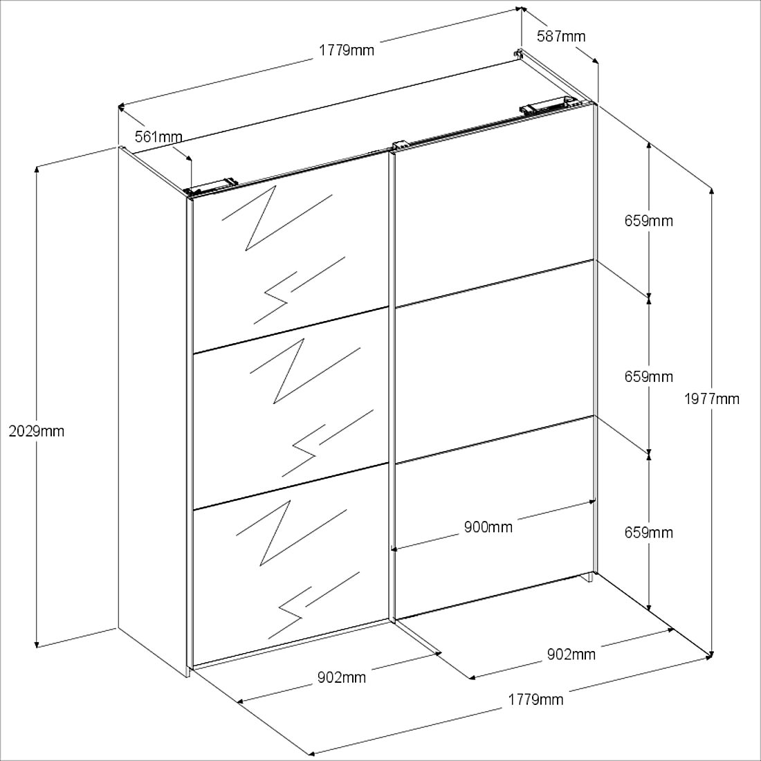 | Armoire à portes coulissantes | 178 | 203 | 59 |