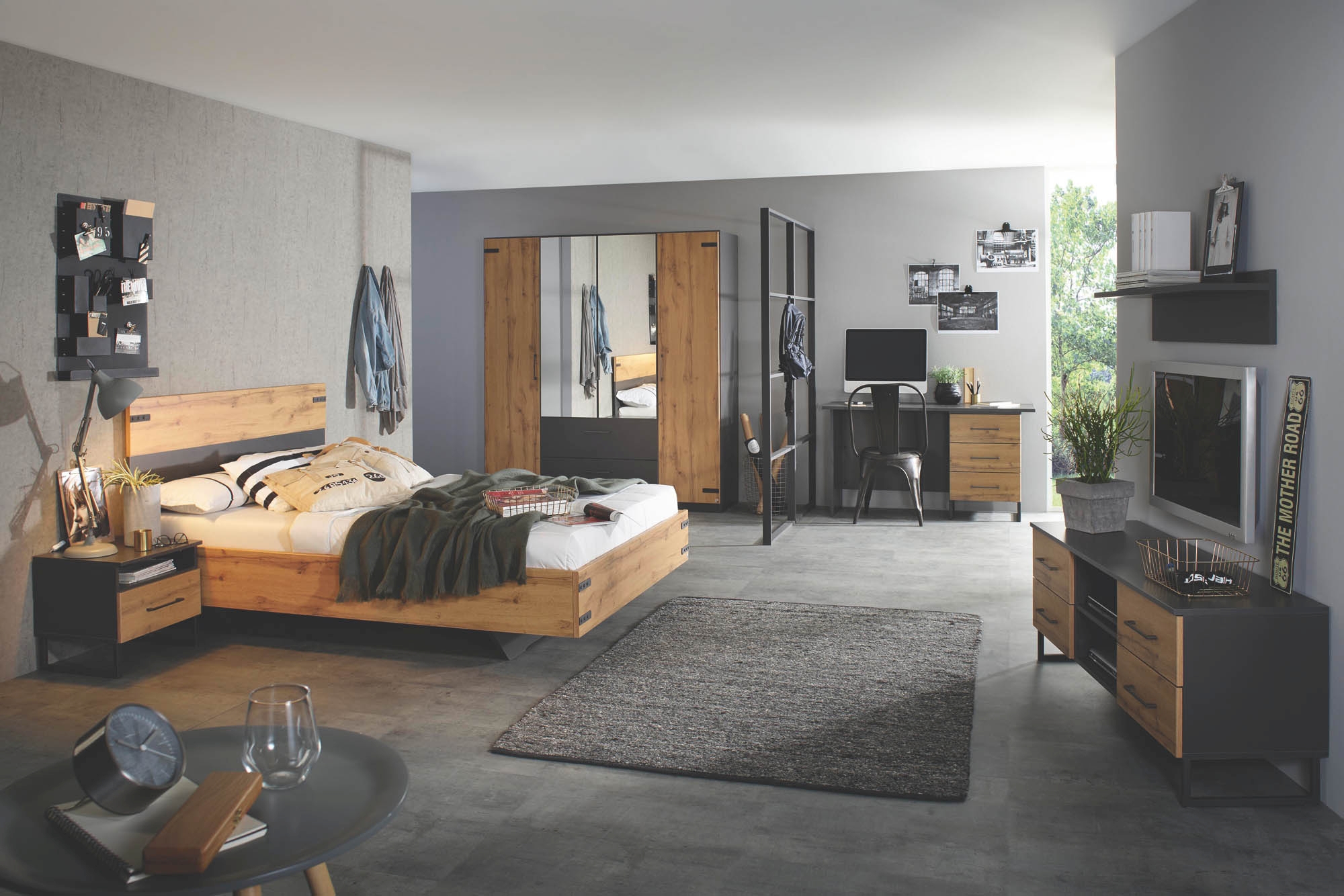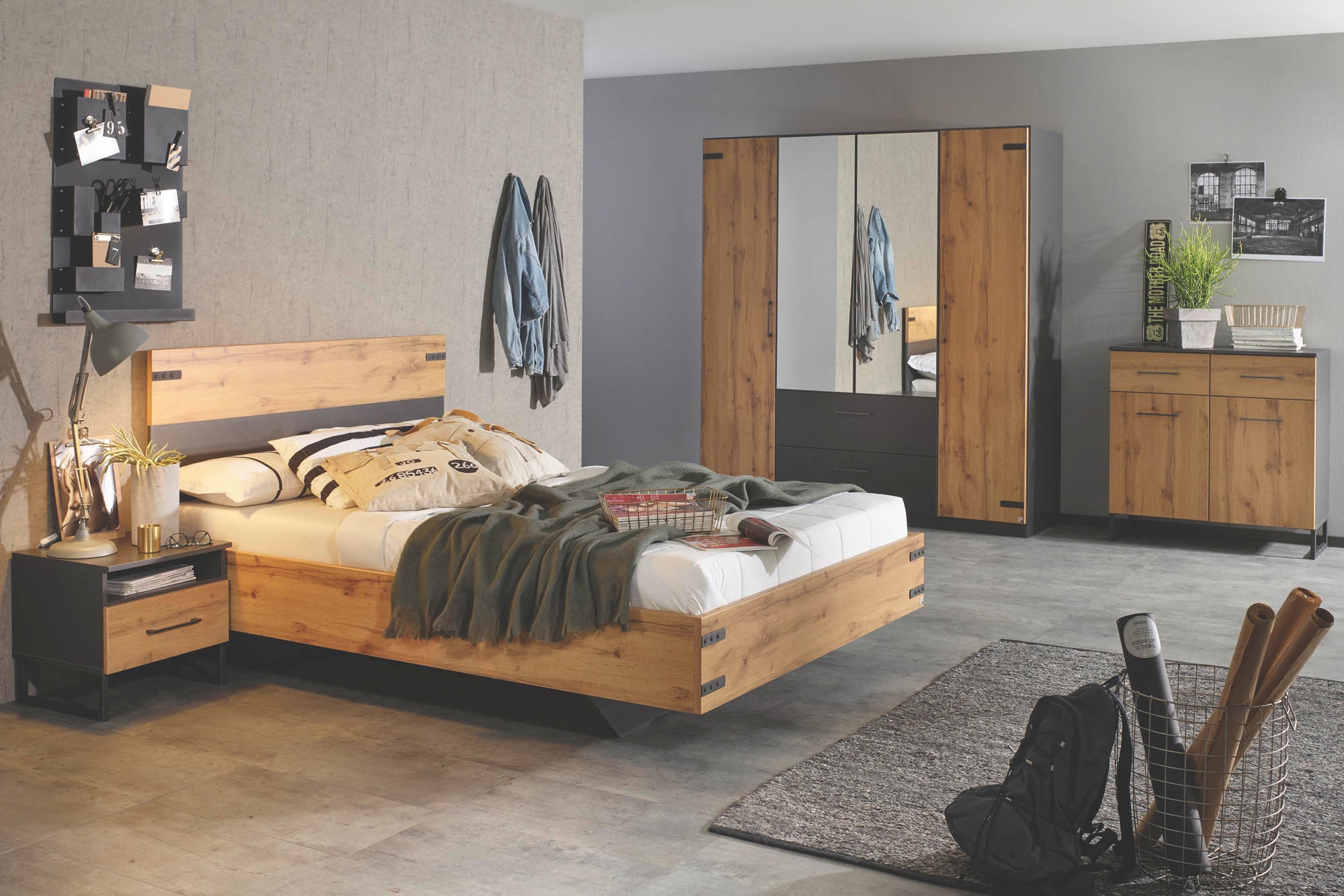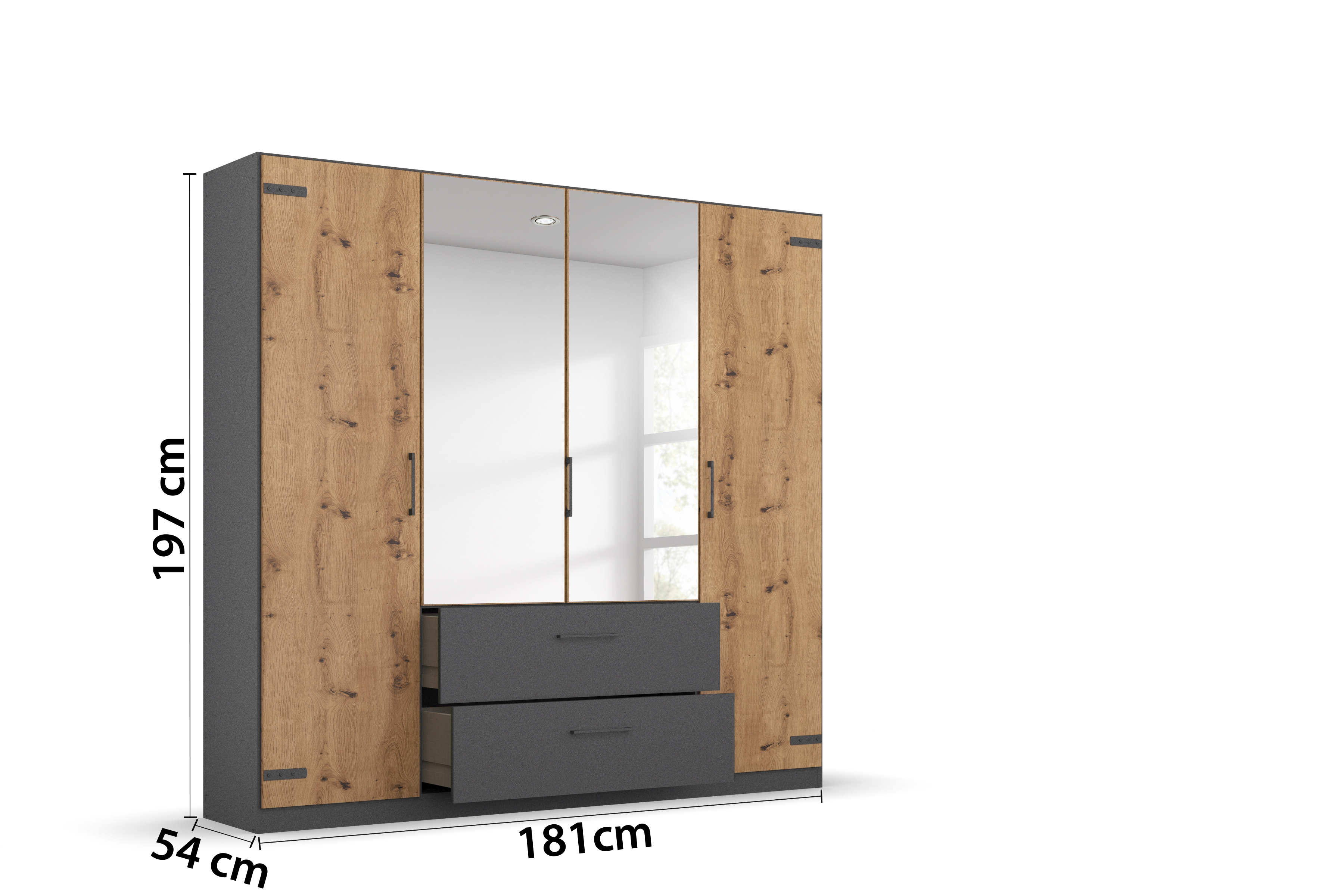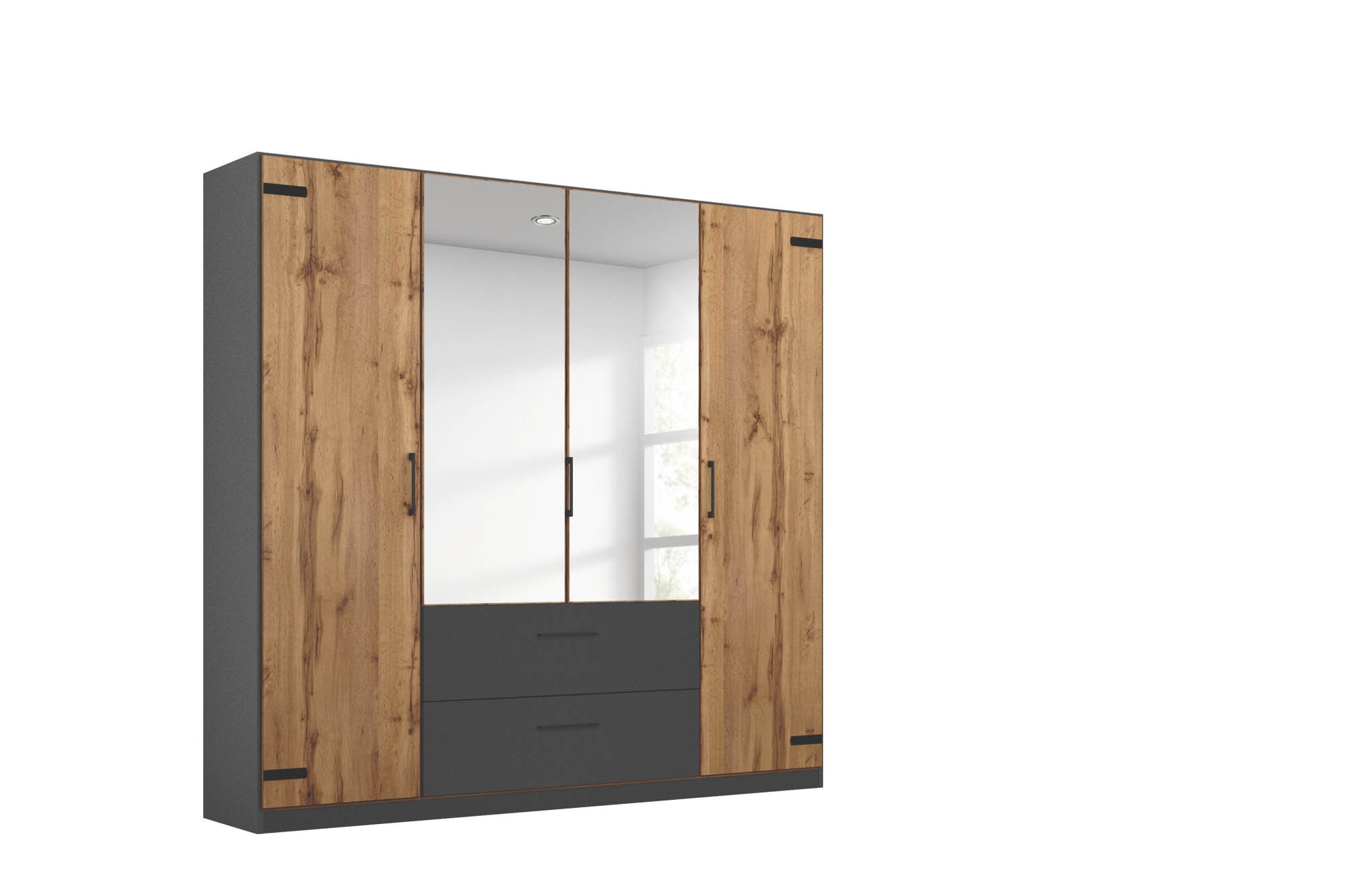 Façade : décor chêne Artisan avec façades des tiroirs ton gris métallisé / miroir