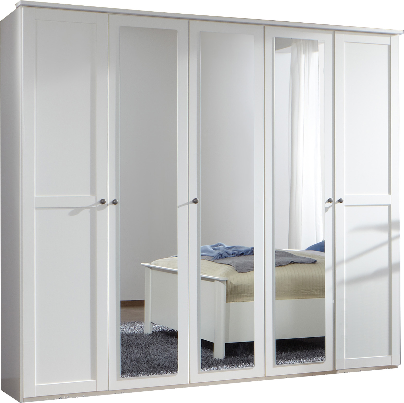 5 portes dont 3 portes au centre avec miroir