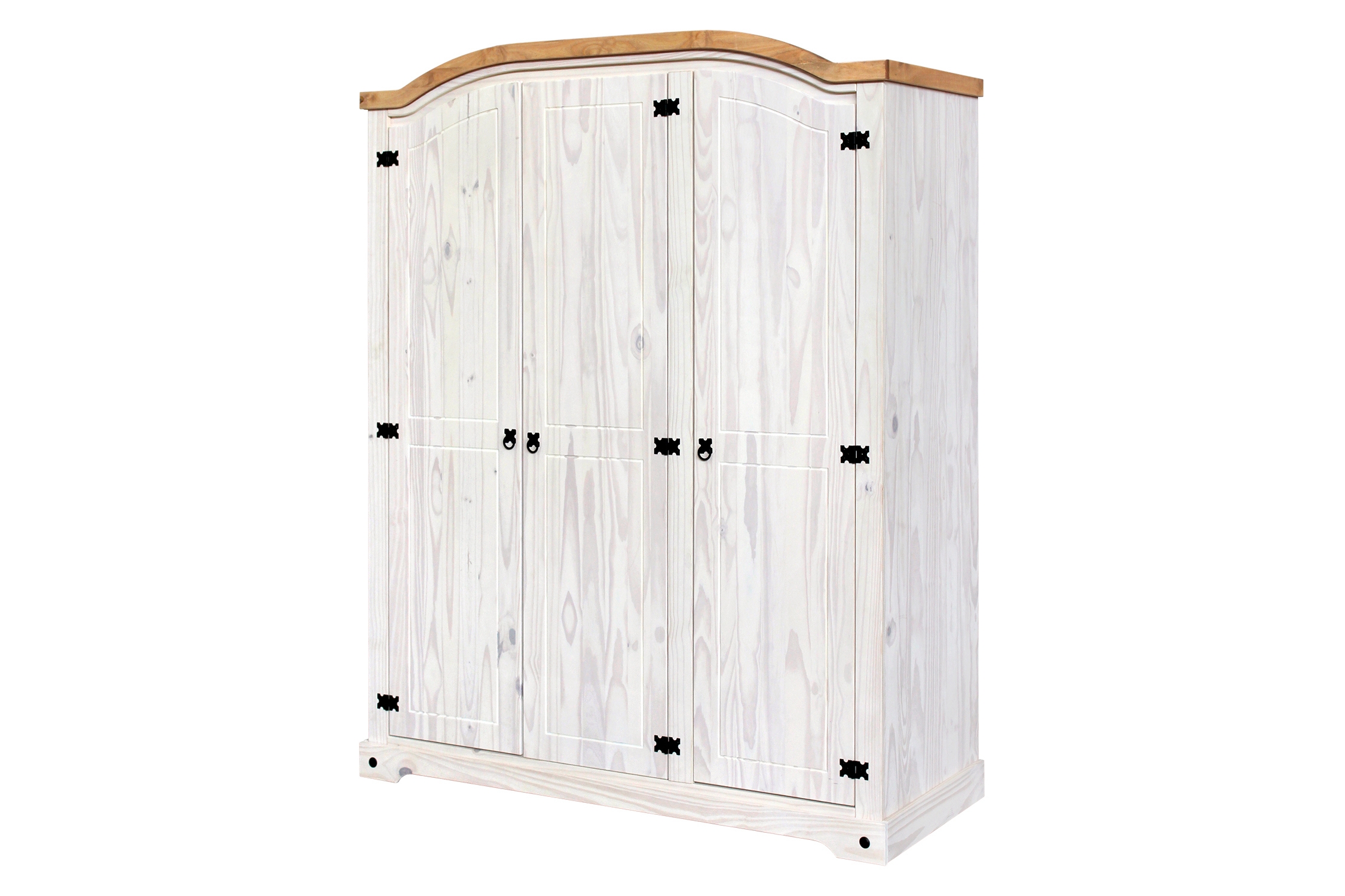 Cette armoire à vêtements 3 portes fera régner l'ordre de façon stylée dans votre espace de vie. Elle a été fabriquée en pin massif et offre un bel espace pour ranger les vêtements de façon ordonnée derrière 3 portes avec une barre de penderie et des tablettes amovibles. Le panneau supérieur ton miel de forme arrondie attirera tous les regards. L'armoire à vêtements s'intègre parfaitement dans la chambre à coucher ou la chambre d'enfant et est aussi du plus bel effet dans le couloir ou l'entrée. Le pin massif apportera un souffle rustique dans votre foyer. La surface est laquée de façon à bien protéger le meuble.