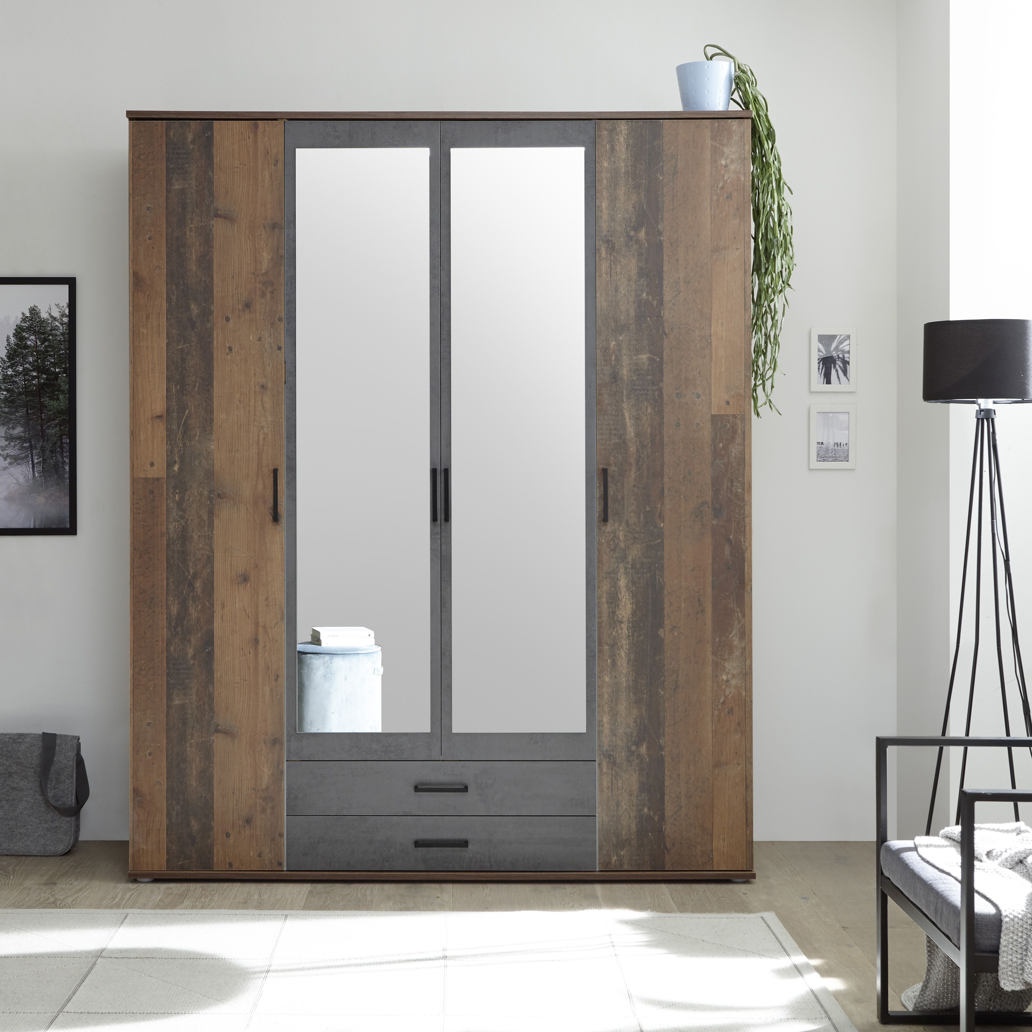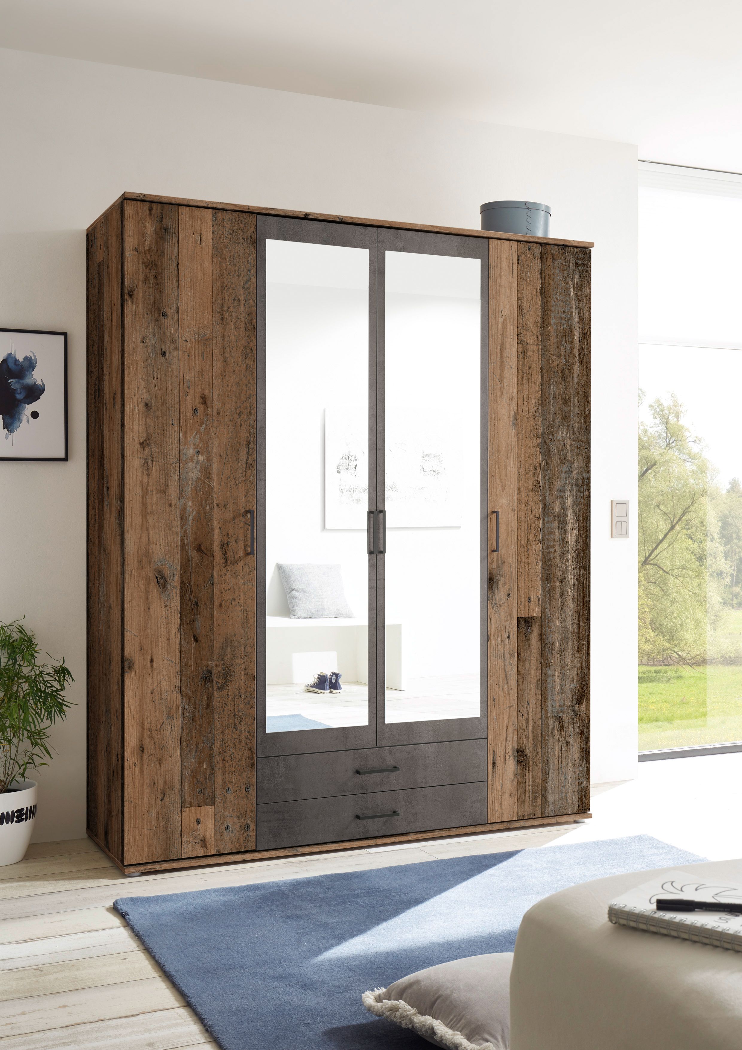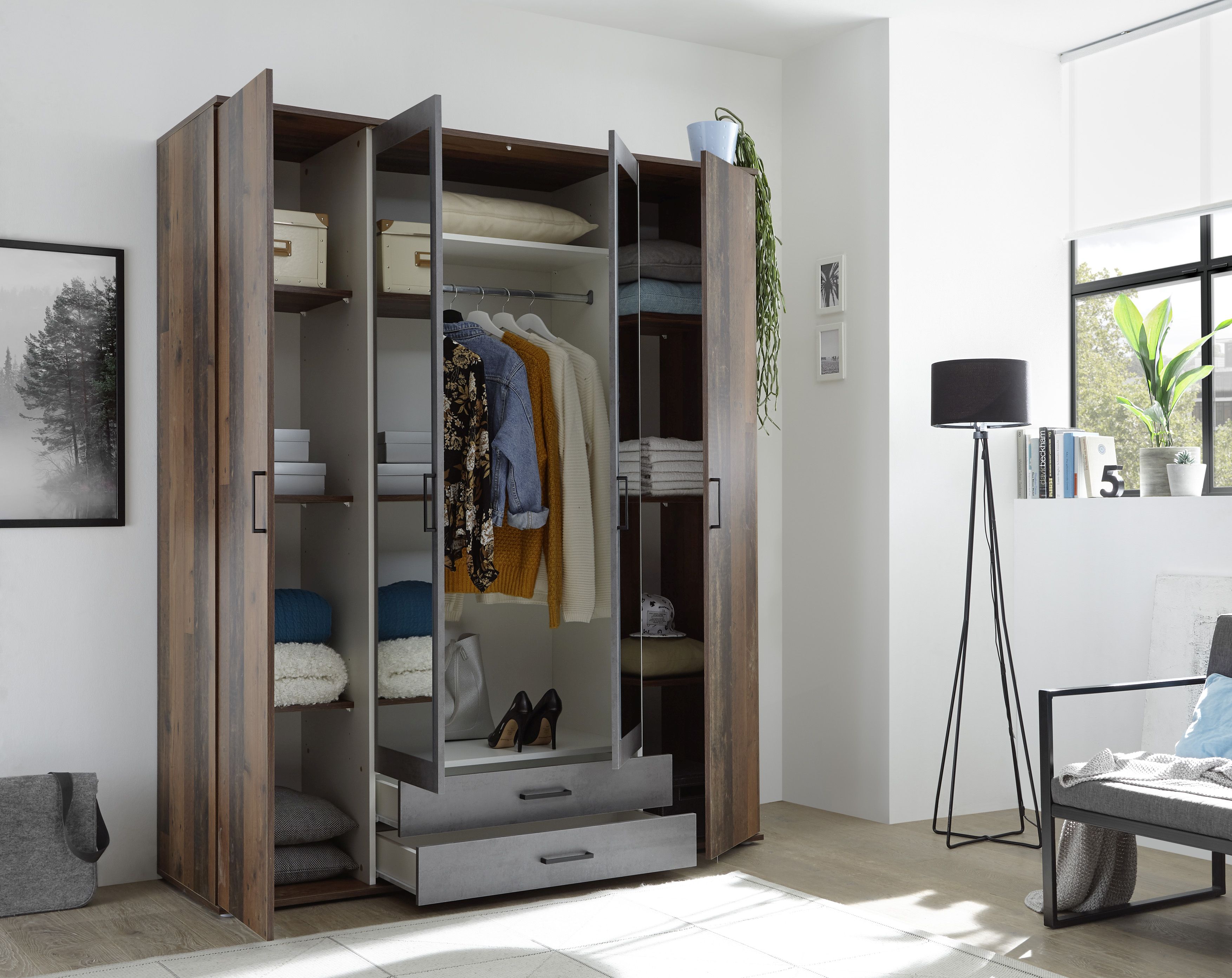 Élégante armoire à vêtements CHICAGO avec bel espace de rangement - Armoire à portes battantes ton Old Style et aspect béton - 159 x 197 x 54 cm (L/H/P)
