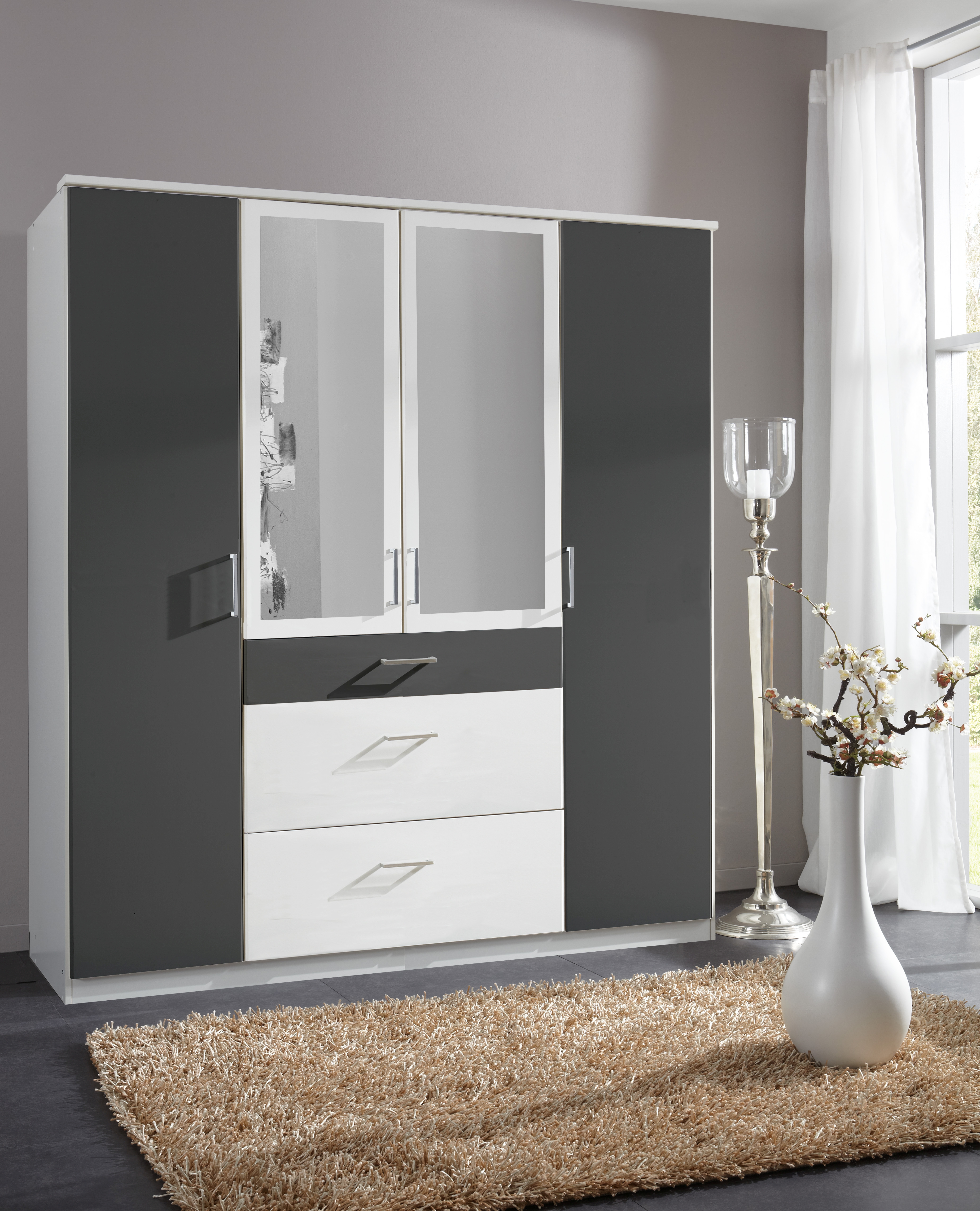 4 portes dont 2 portes au centre avec miroir