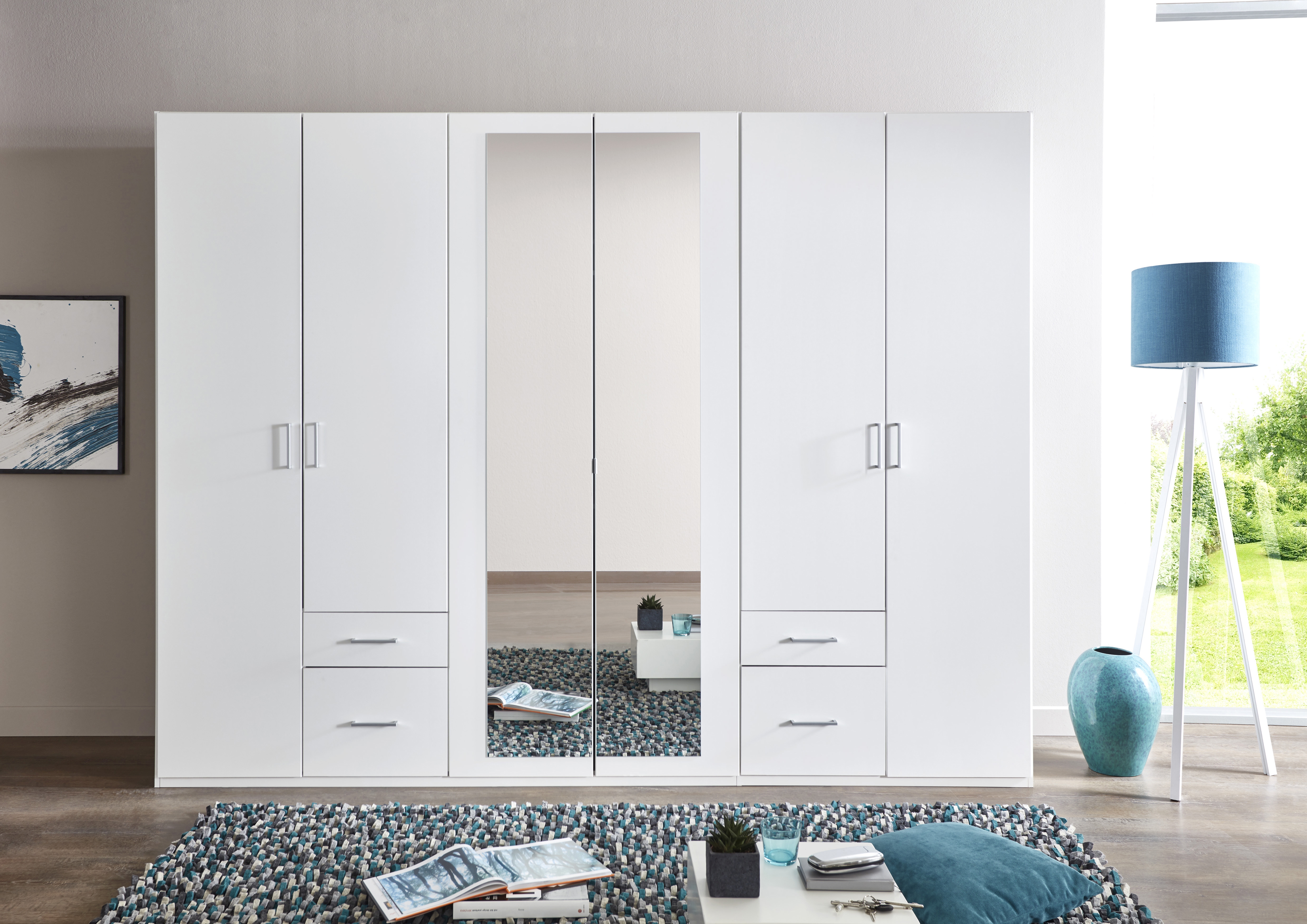 6 portes dont 2 portes au centre avec miroir