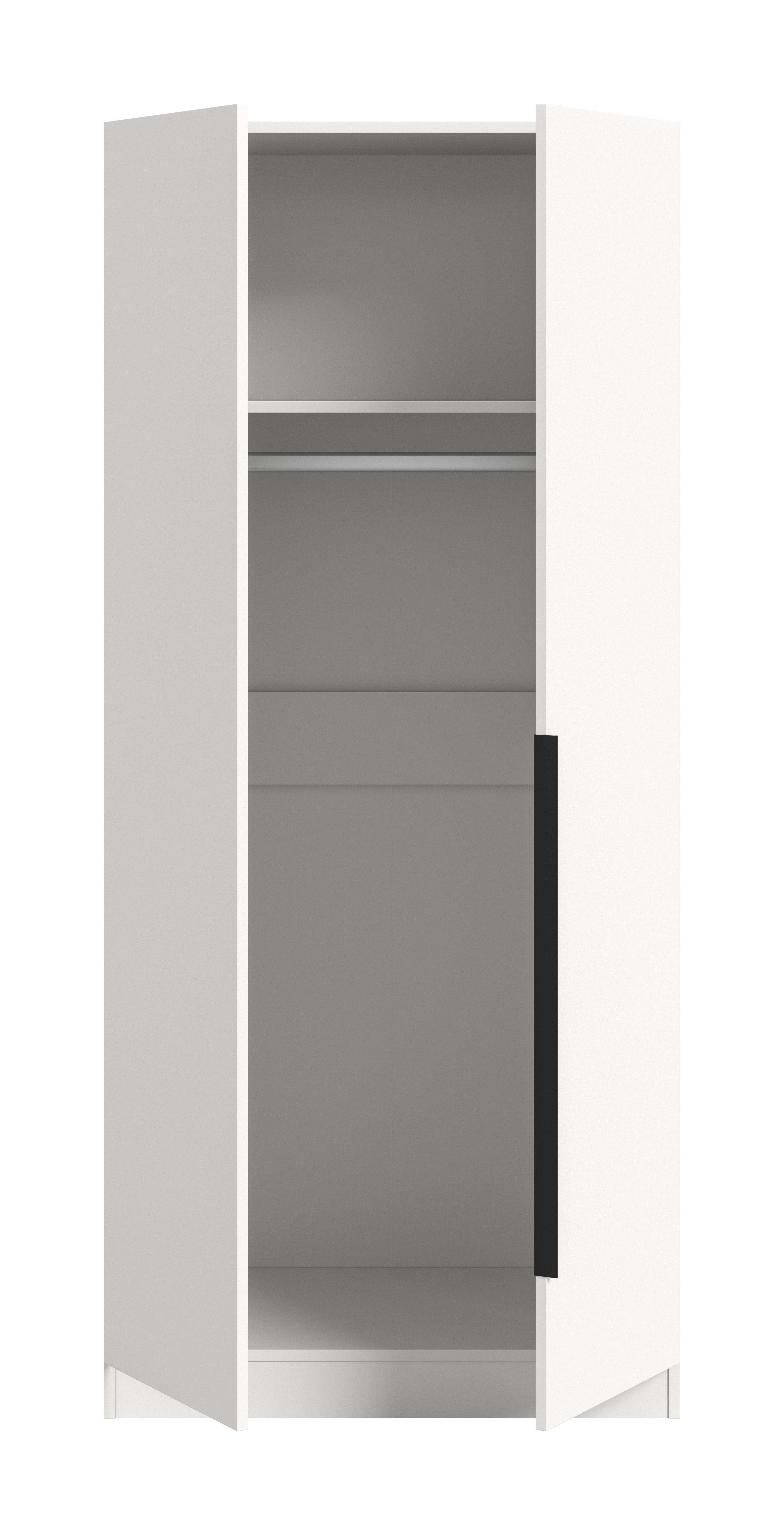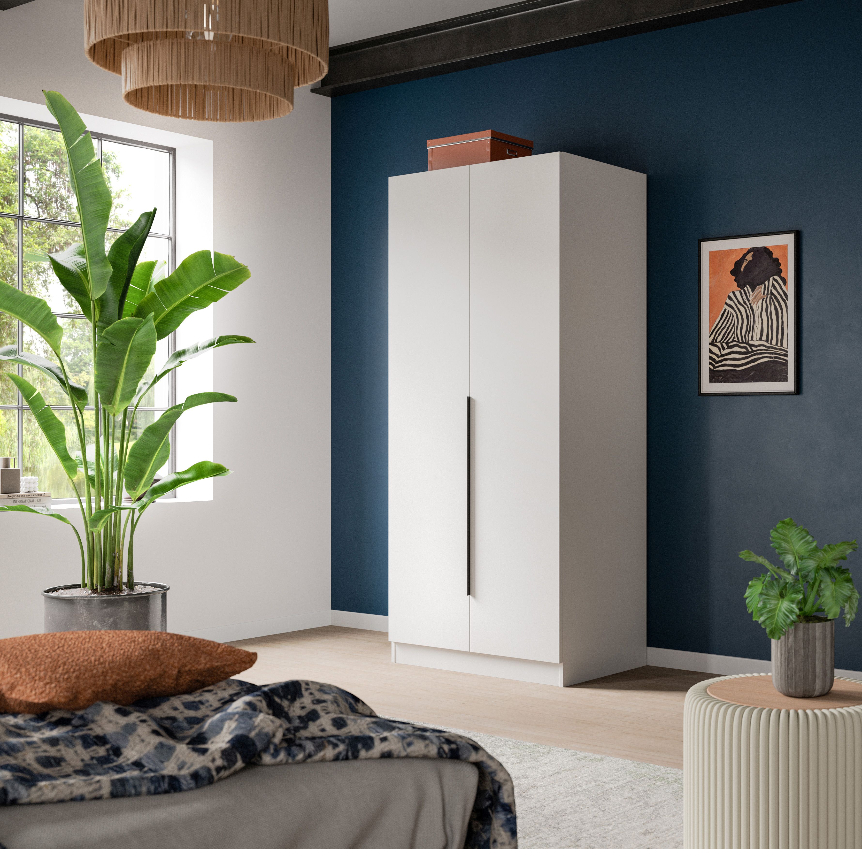 Cette armoire compacte 2 portes est une solution pratique et stylée pour ranger vos vêtements de manière ordonnée et les avoir toujours à portée de main. Avec son design intemporel, elle crée une atmosphère claire et accueillante, propice au bien-être. Elle se caractérise par sa répartition intérieure bien pensée : une barre de penderie ainsi que des tablettes amovibles supplémentaires permettent une organisation flexible en fonction de vos besoins. L’armoire mesure 80 cm de large, 180 cm de haut et 52 cm de profondeur – des dimensions idéales pour les petits espaces ou en complément de votre mobilier de chambre. Grâce à ses surfaces faciles d’entretien, le nettoyage se fait rapidement et sans effort.