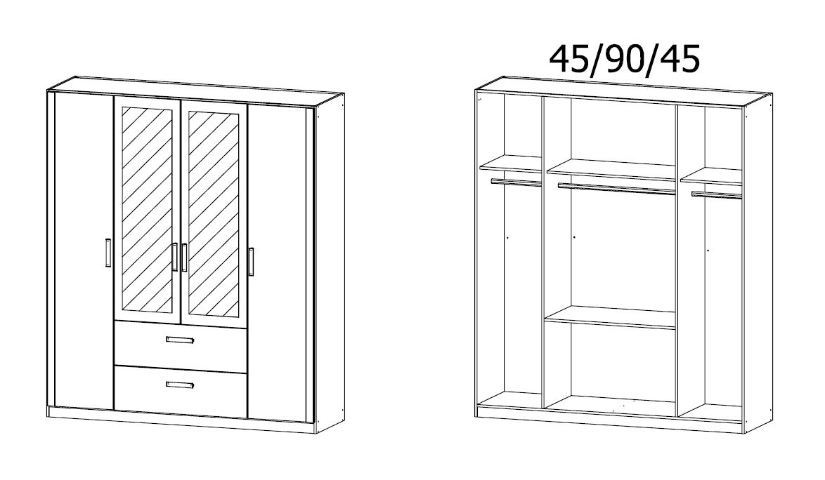 4 portes, dont 2 portes au centre avec miroir