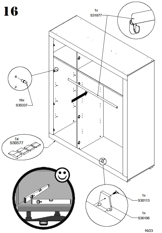 - 1 barre de penderie (portes de droite)