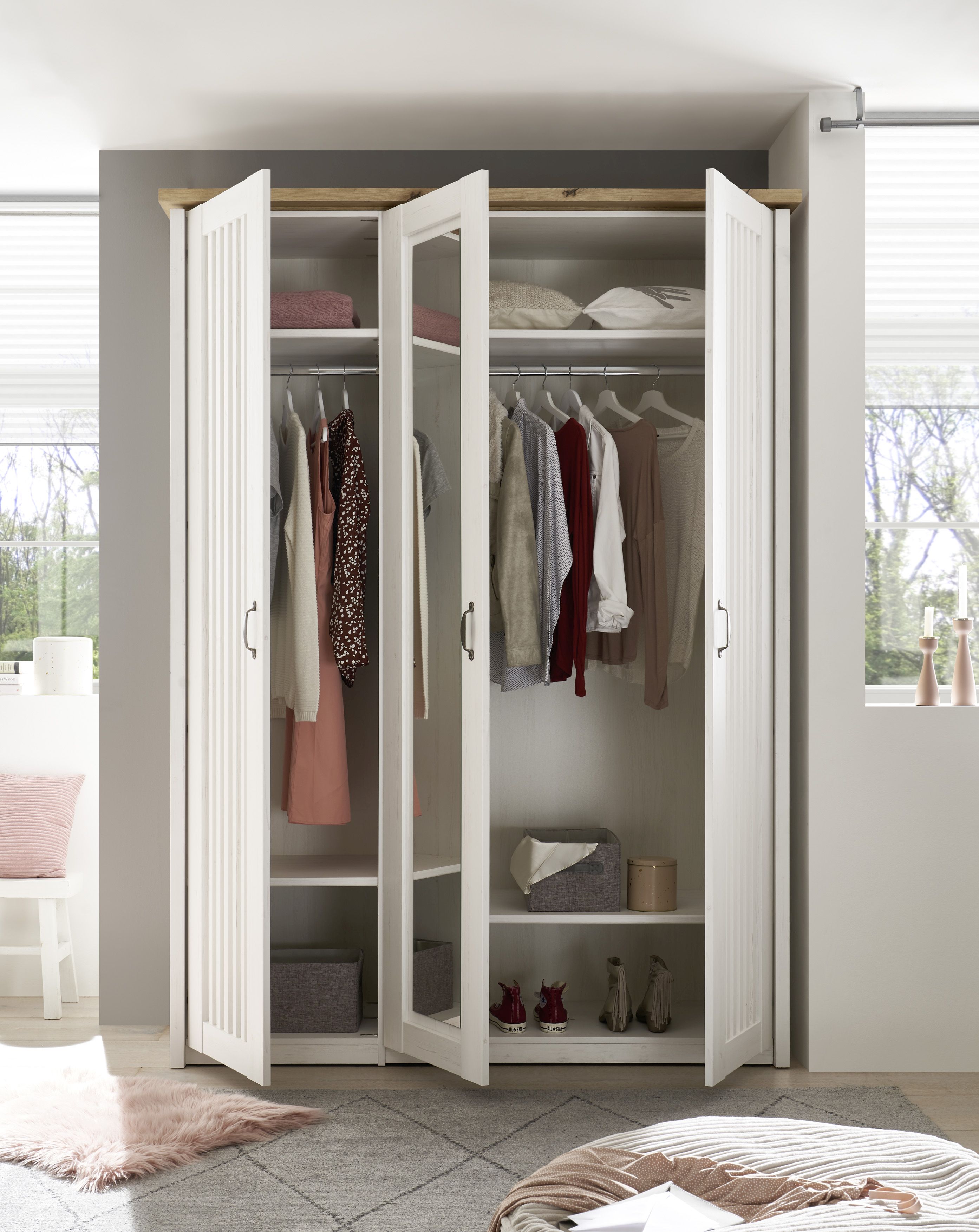 Répartition intérieure : 1 paroi médiane et, par compartiment, 2 tablettes et 1 barre de penderie