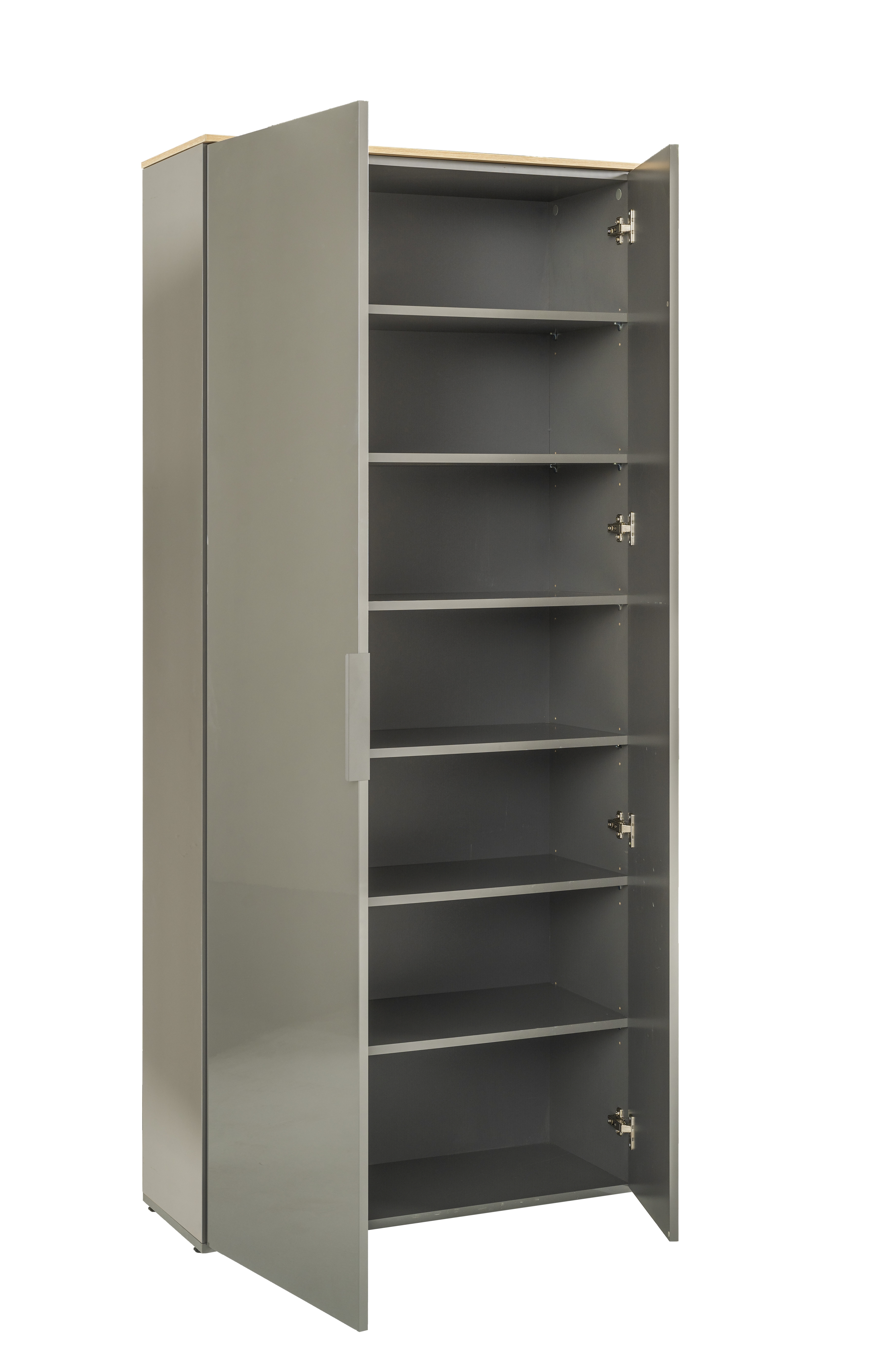 Caisson et façade : décor chêne Artisan et ton gris titane ultra brillant