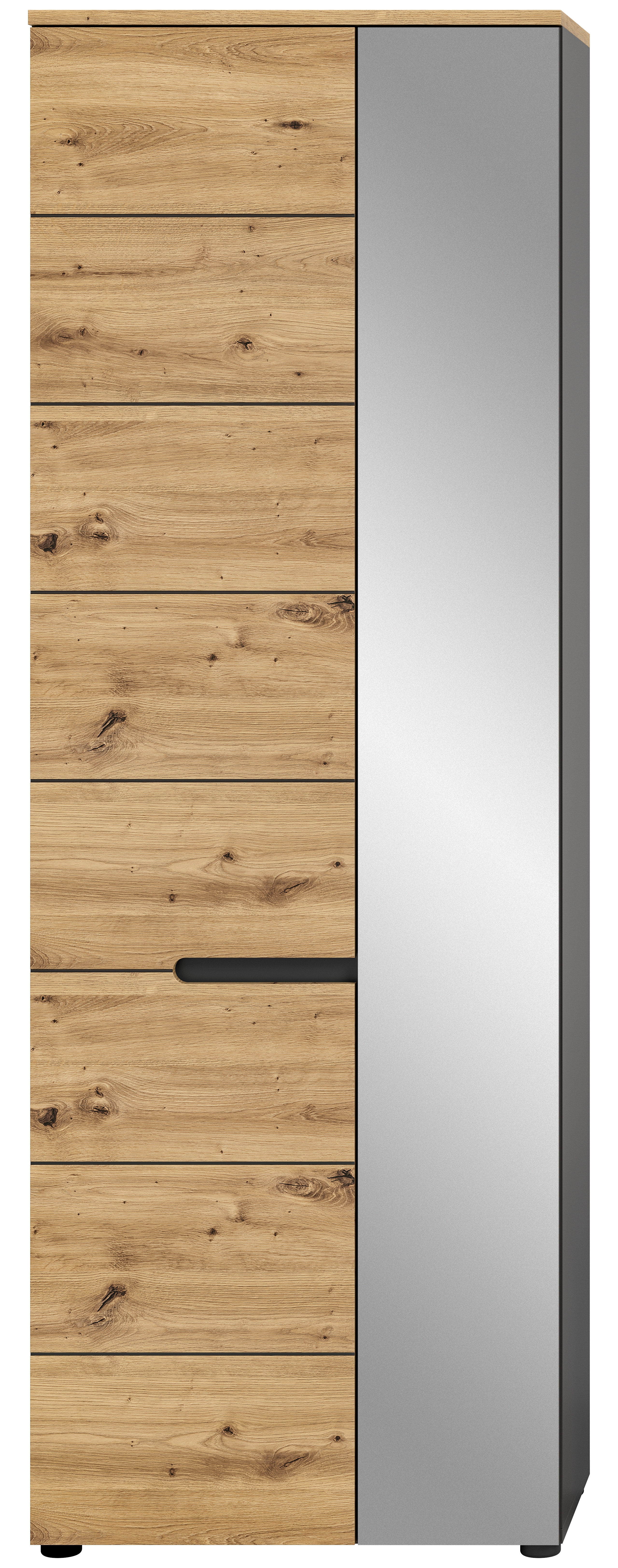 Notre armoire d’entrée (dimensions : 65x190x37 cm) est proposée dans des teintes élégantes : décor gris basalte et décor chêne Artisan. Elle conférera ainsi une note stylée et tendance à votre intérieur. Avec un bel espace de rangement pour les vestes, chaussures et accessoires, cette armoire est la solution idéale pour une entrée bien ordonnée. Découvrez dès maintenant ce meuble beau et pratique pour la maison.