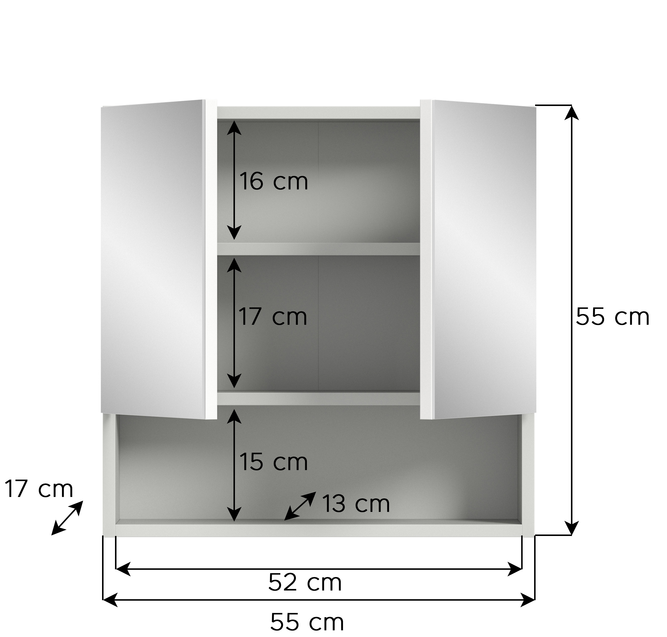 - Utilisation : l’armoire de toilette avec son miroir pratique est idéale comme solution peu encombrante et fonctionnelle pour stocker les accessoires de bain.