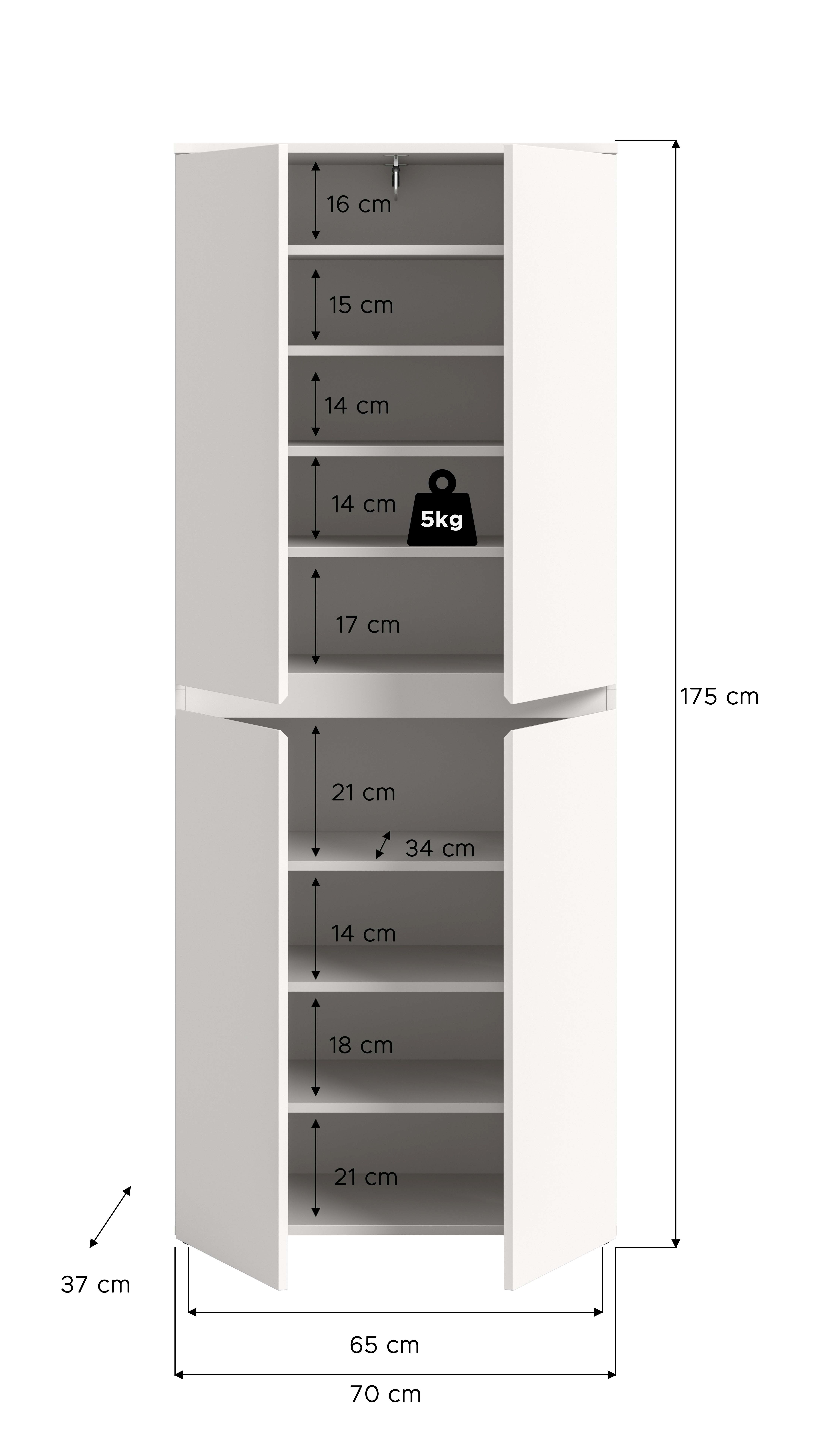 - Dimensions : L/H/P env. : 70 x 175 x 37 cm