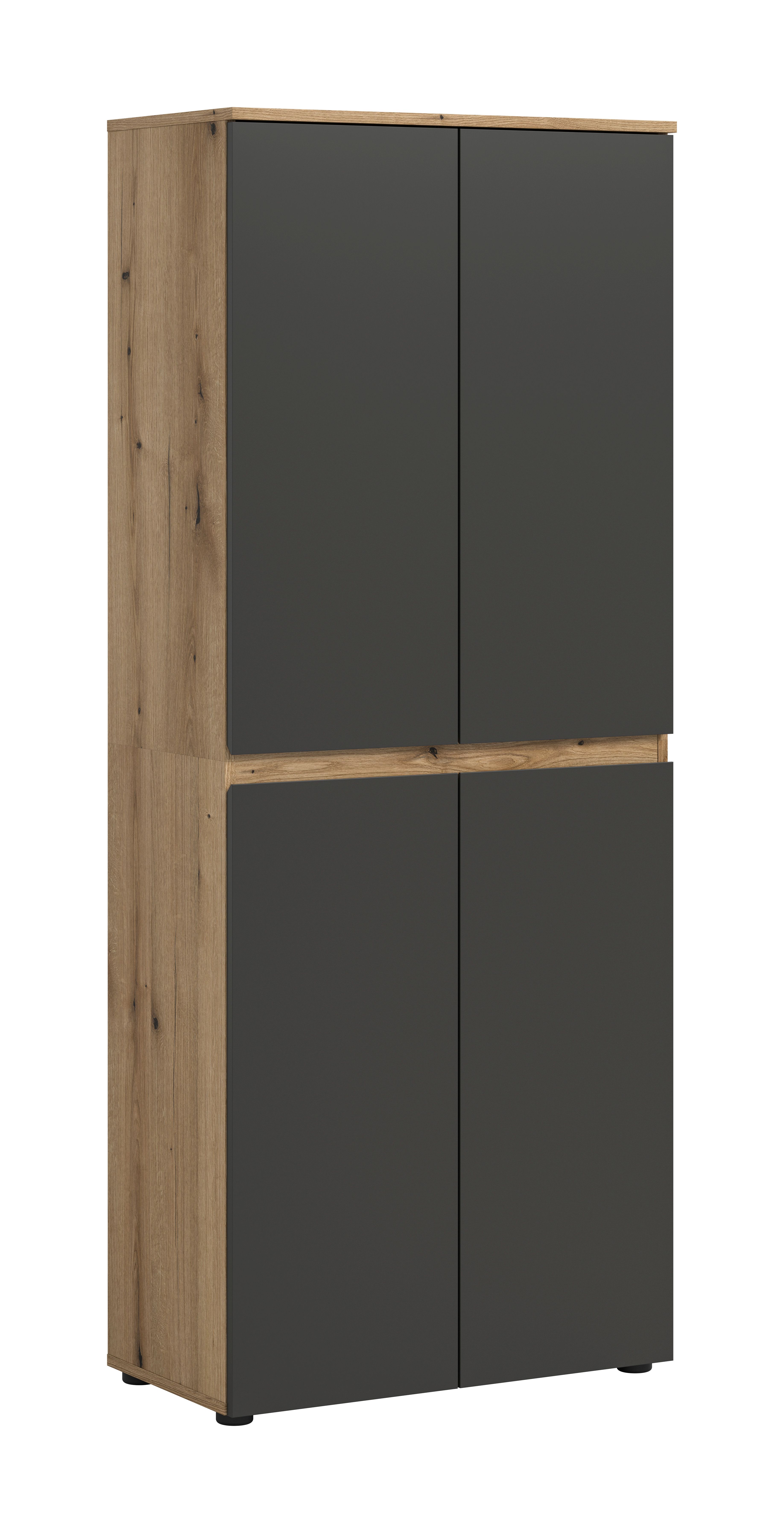 Cette armoire multifonction pratique dans un décor chêne Evoke et ton anthracite combine intelligemment rangement et organisation (dimensions : 70 x 175 x 37 cm). Grâce à sa barre de penderie robuste, les vestes, les manteaux et les chemises y trouveront facilement leur place, tandis que 7 tablettes amovibles réglables en hauteur assurent une flexibilité maximale en matière de répartition intérieure. Cette armoire s’adaptera aisément à vos besoins pour ranger chaussures, textiles, classeurs ou accessoires ménagers. Avec son design intemporel, elle s’intègre harmonieusement dans n’importe quelle pièce, mais trouvera aussi sa place dans l’entrée ou à la cave. Vous cherchez un rangement peu encombrant ? Cette armoire est faite pour vous !