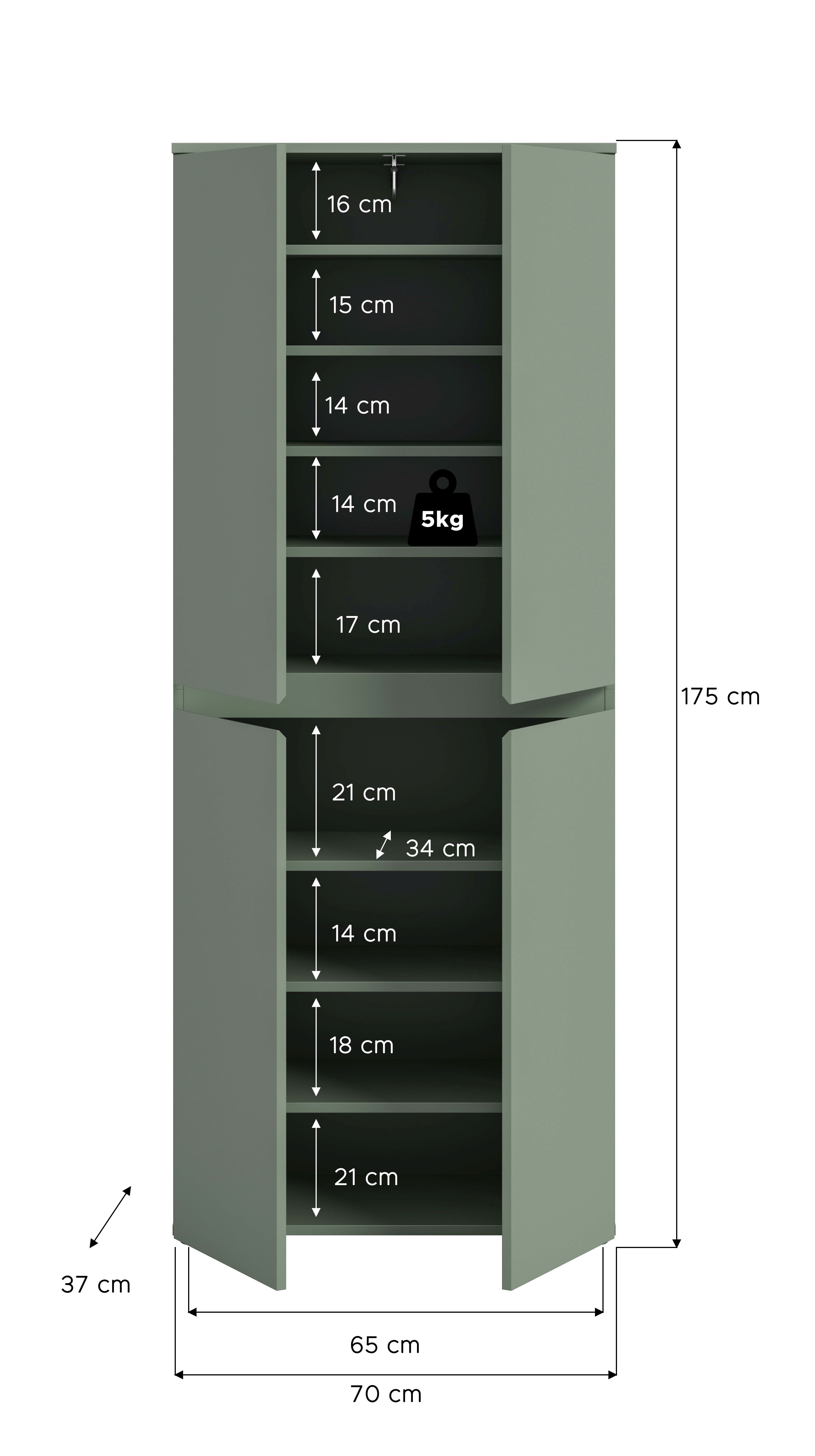 Cette armoire multifonction pratique dans un ton smoke green combine intelligemment rangement et organisation (dimensions : 70 x 175 x 37 cm). Grâce à sa barre de penderie robuste, les vestes, les manteaux et les chemises y trouveront facilement leur place, tandis que 7 tablettes amovibles réglables en hauteur assurent une flexibilité maximale en matière de répartition intérieure. Cette armoire s’adaptera aisément à vos besoins pour ranger chaussures, textiles, classeurs ou accessoires ménagers. Avec son design intemporel, elle s’intègre harmonieusement dans n’importe quelle pièce, mais trouvera aussi sa place dans l’entrée ou à la cave. Vous cherchez un rangement peu encombrant ? Cette armoire est faite pour vous !