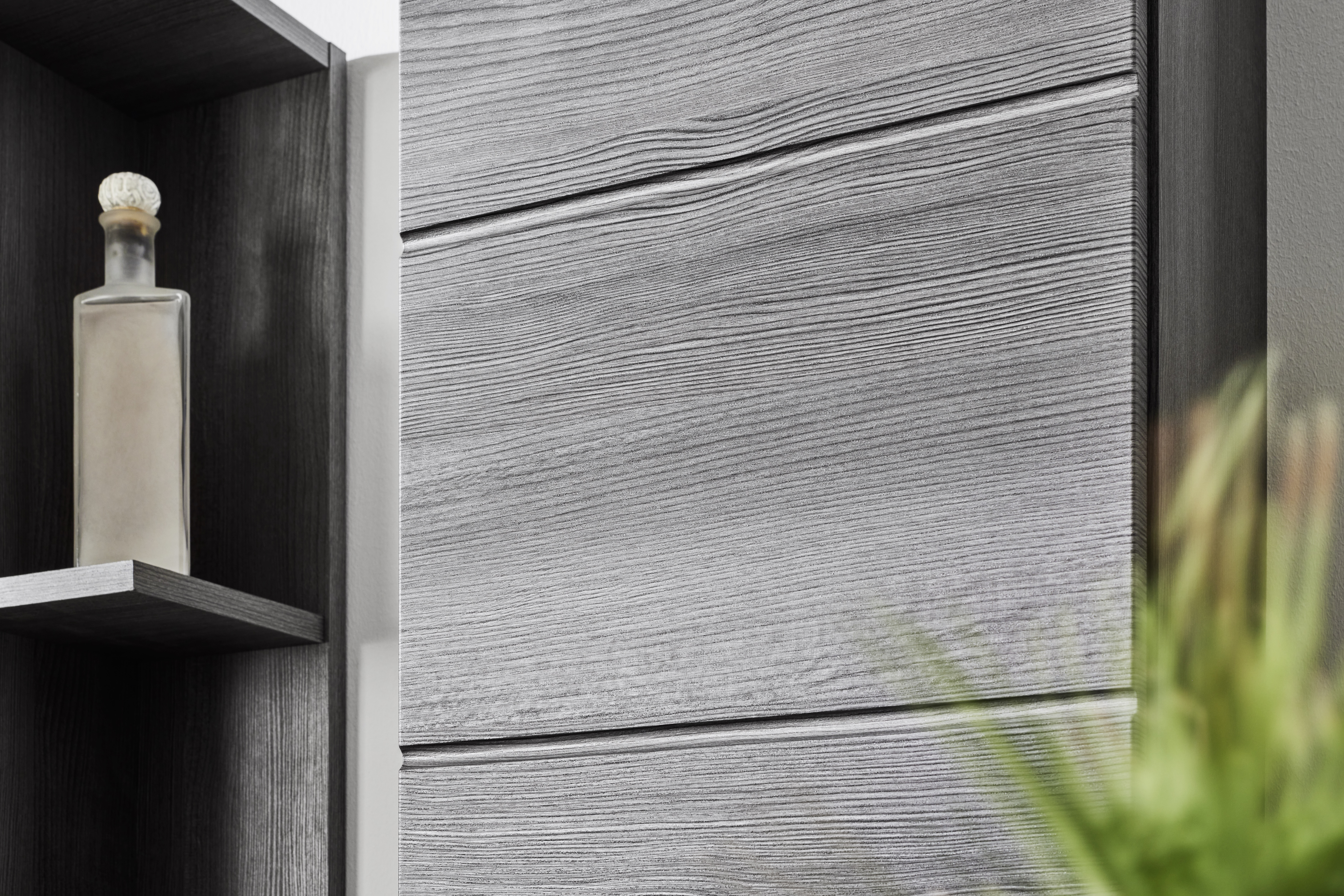 - Design moderne : les façades argent fumé avec poignées noires s'harmonisent parfaitement avec les intérieurs contemporains.