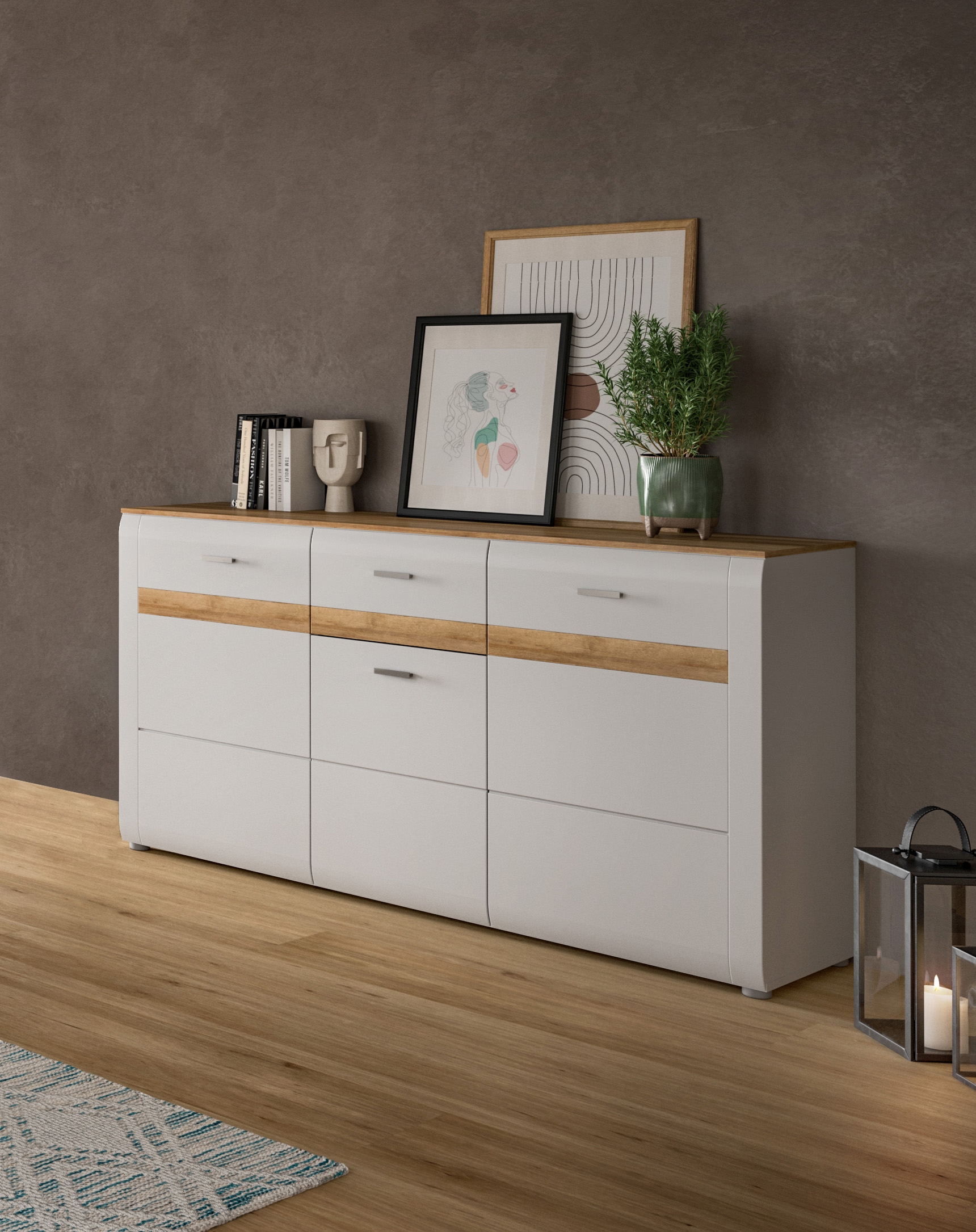 Synonyme d’élégance et d’exigence, découvrez notre bahut ton gris et chêne qui incarne la fusion réussie entre design moderne et beauté naturelle ! Ce bahut n’offre pas seulement un espace de rangement stylé ; il mettra aussi en valeur votre décoration intérieure. Commandez-le maintenant pour conférer à vos pièces une note haut de gamme en matière de style et de rangement.