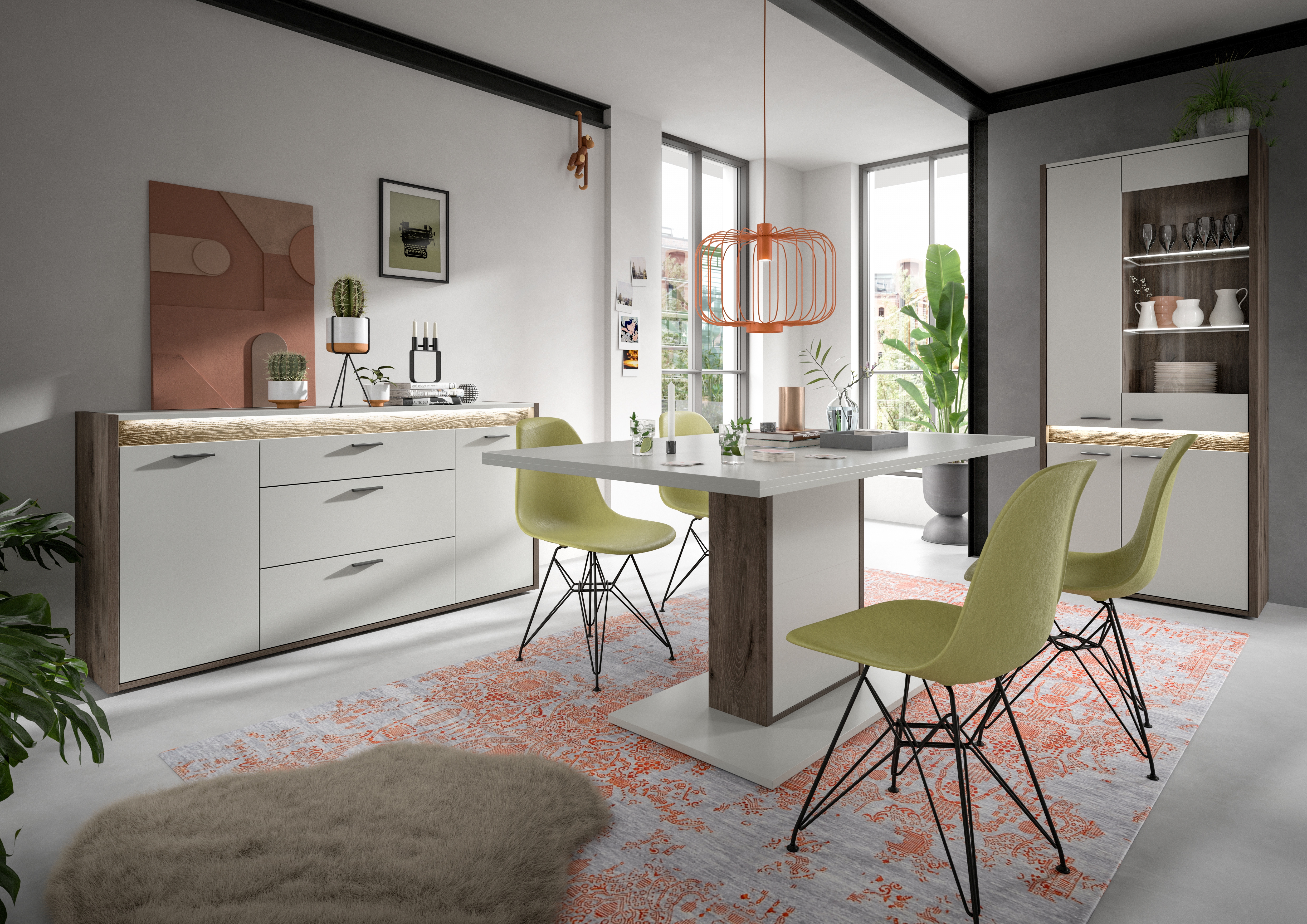 Découvrez ce bahut polyvalent décor chêne Nox foncé et ton gris clair (dimensions : 167x86x40 cm) : la combinaison idéale entre style et fonctionnalité pour votre intérieur. Grâce à son éclairage de façade dimmable, il offre à la fois une ambiance lumineuse agréable et un espace de rangement spacieux pour vos objets personnels. Avec ce buffet élégant, conférez à votre salon une touche tendance tout en profitant de son design attrayant et de son côté pratique.