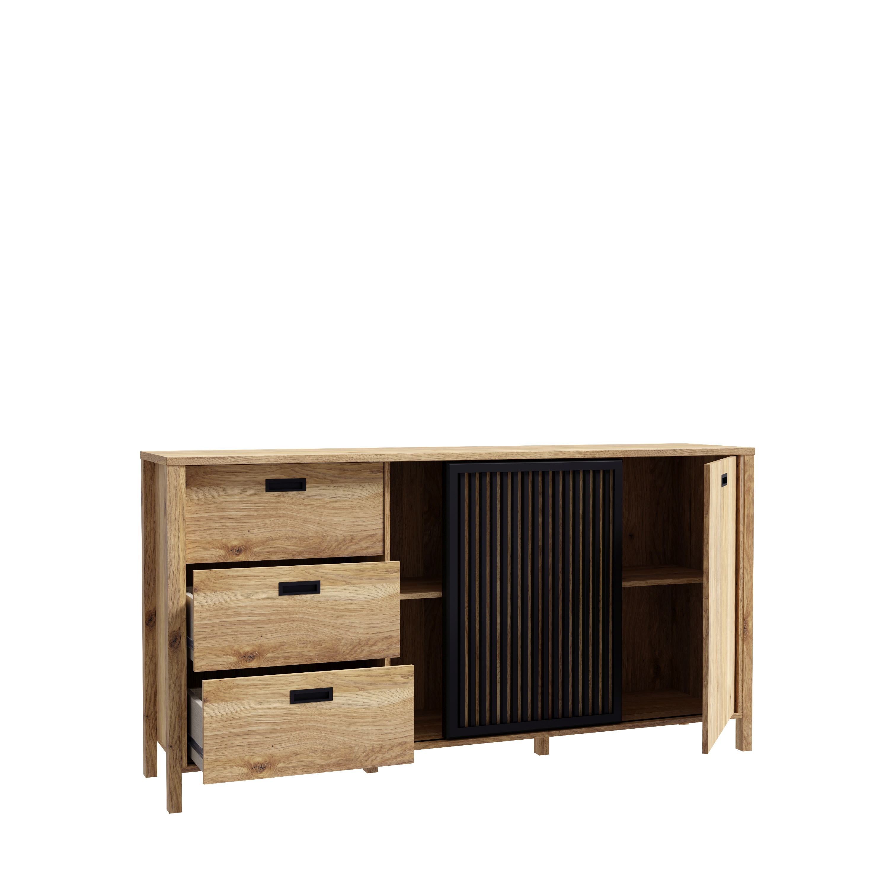Façade : M635 décor chêne Mauvella (D108) avec contrastes ton noir (Z13)