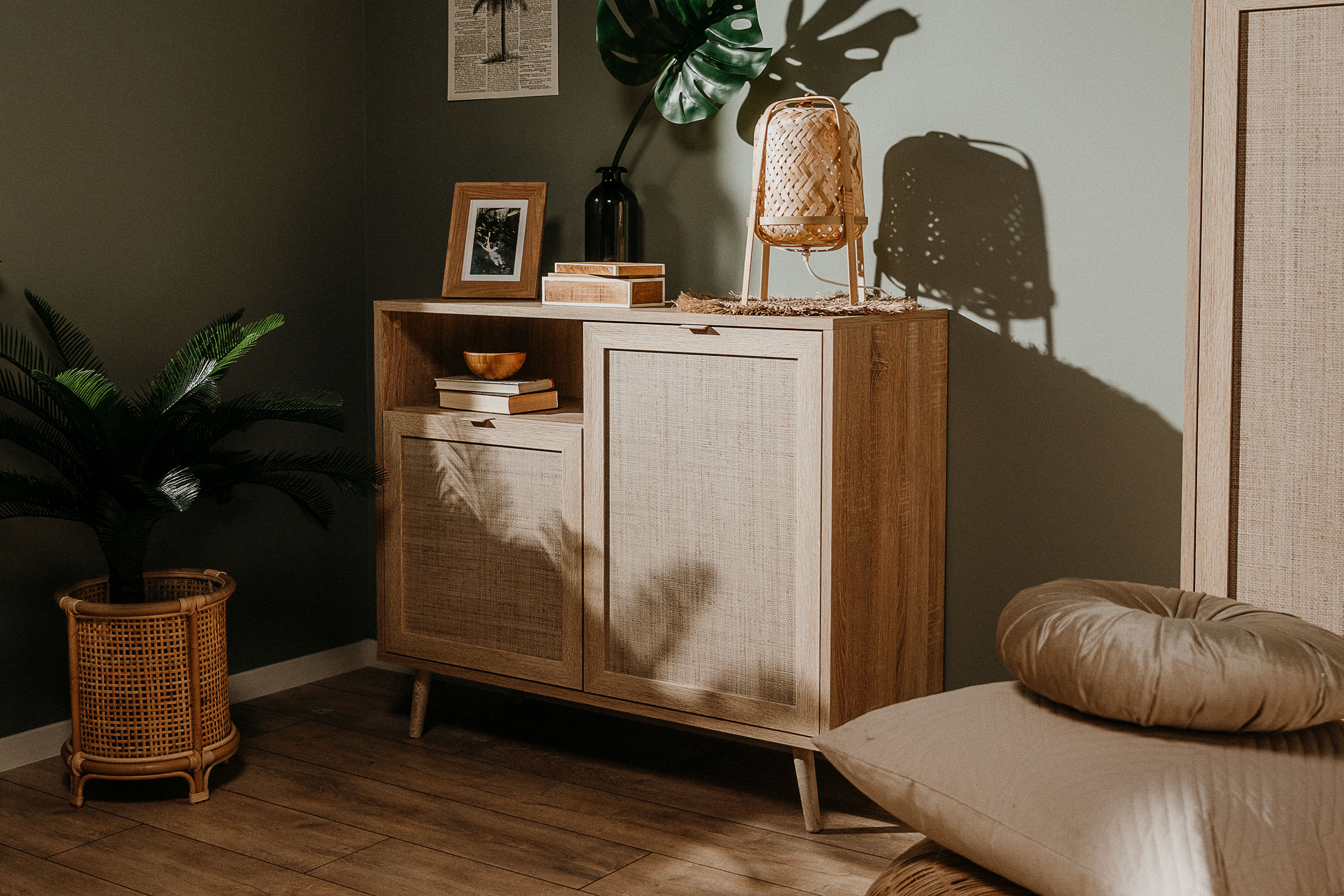 Décor chêne Sonoma / motif imprimé raphia tressé