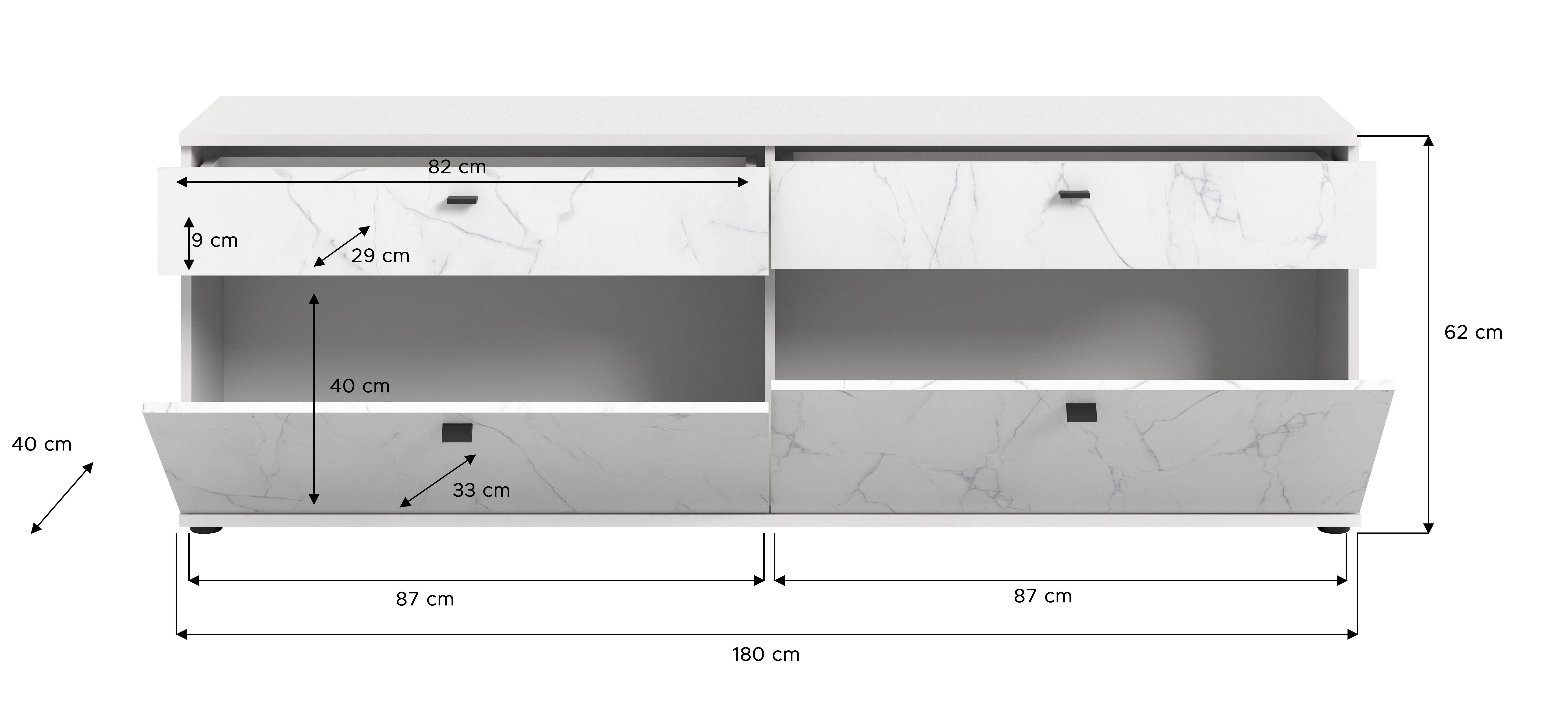 • Design/style : bahut bas moderne dans un décor marbre blanc de qualité, au design intemporel et élégant.
