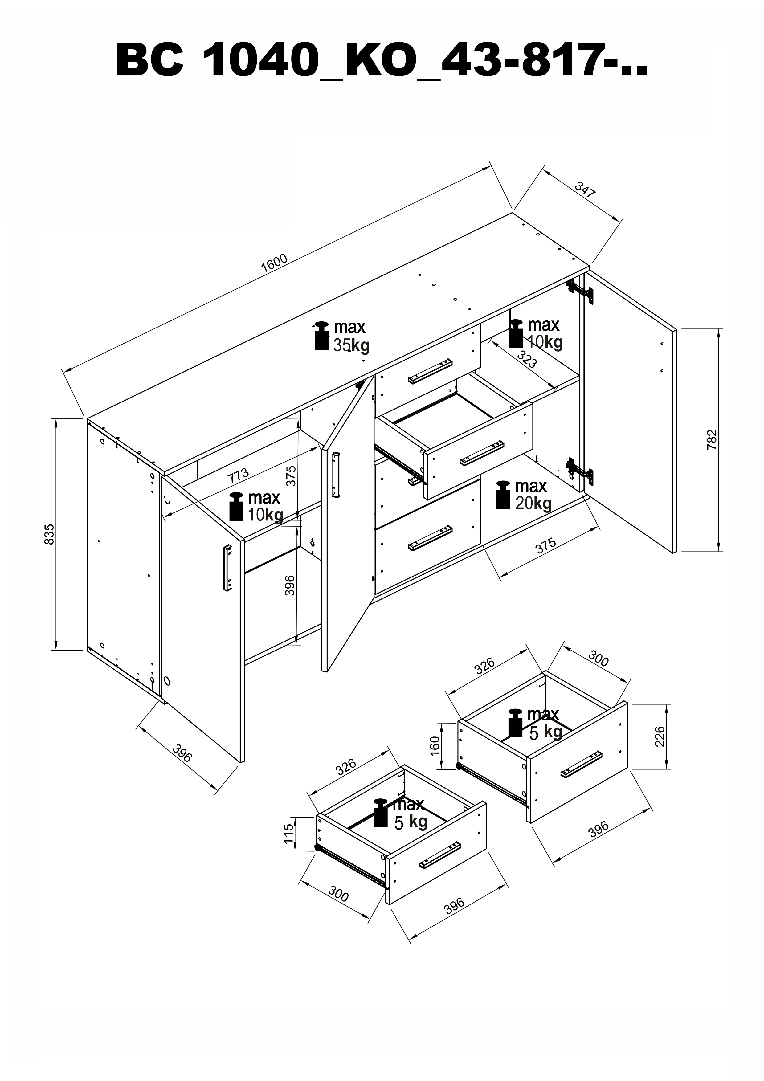 | Ausstattung Kommoden Phono Büro Regal: | Portes, Tiroirs | ||