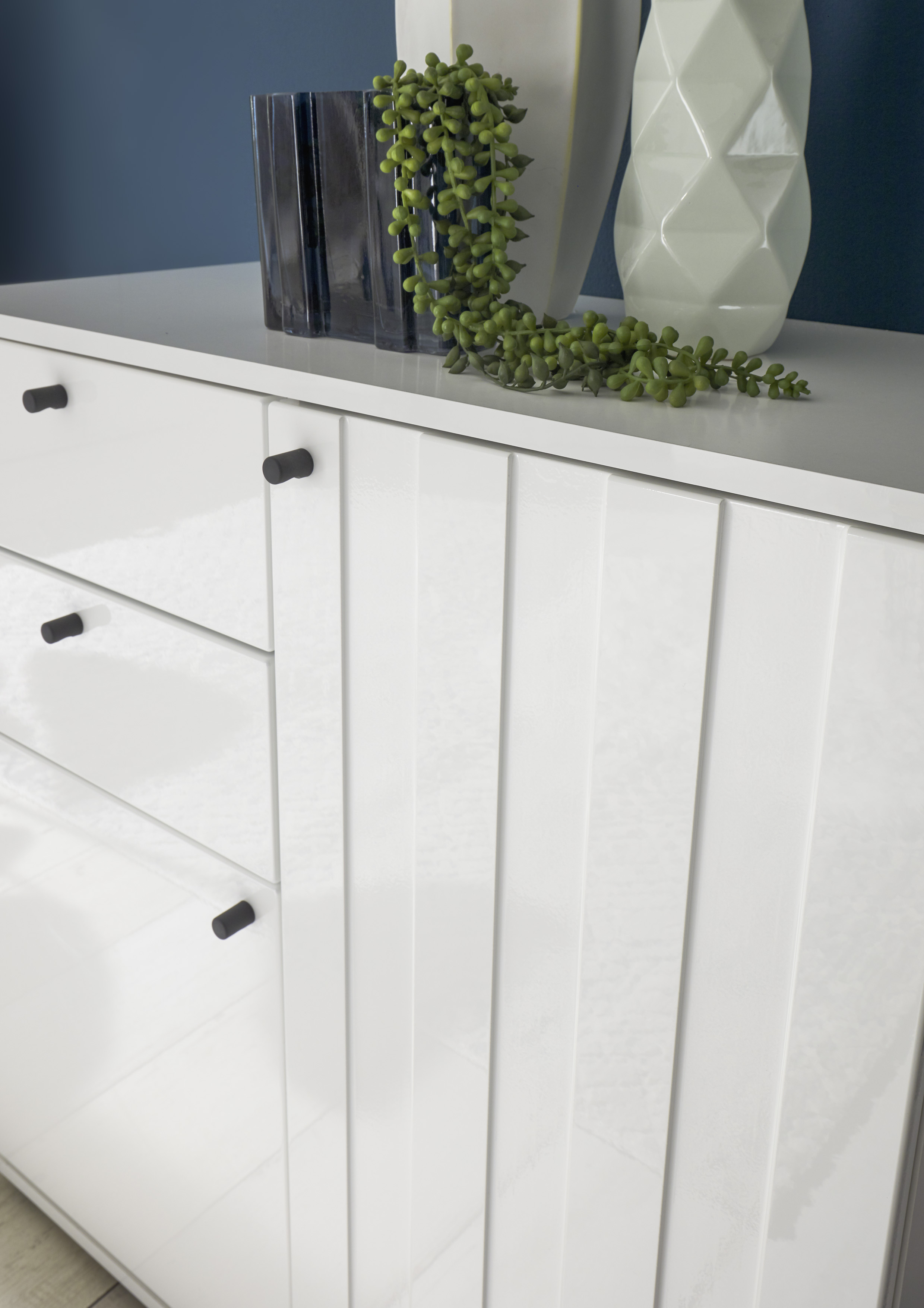 Façade : ton blanc ultra brillant thermoformé / MDF (panneaux de fibres de bois de densité moyenne)