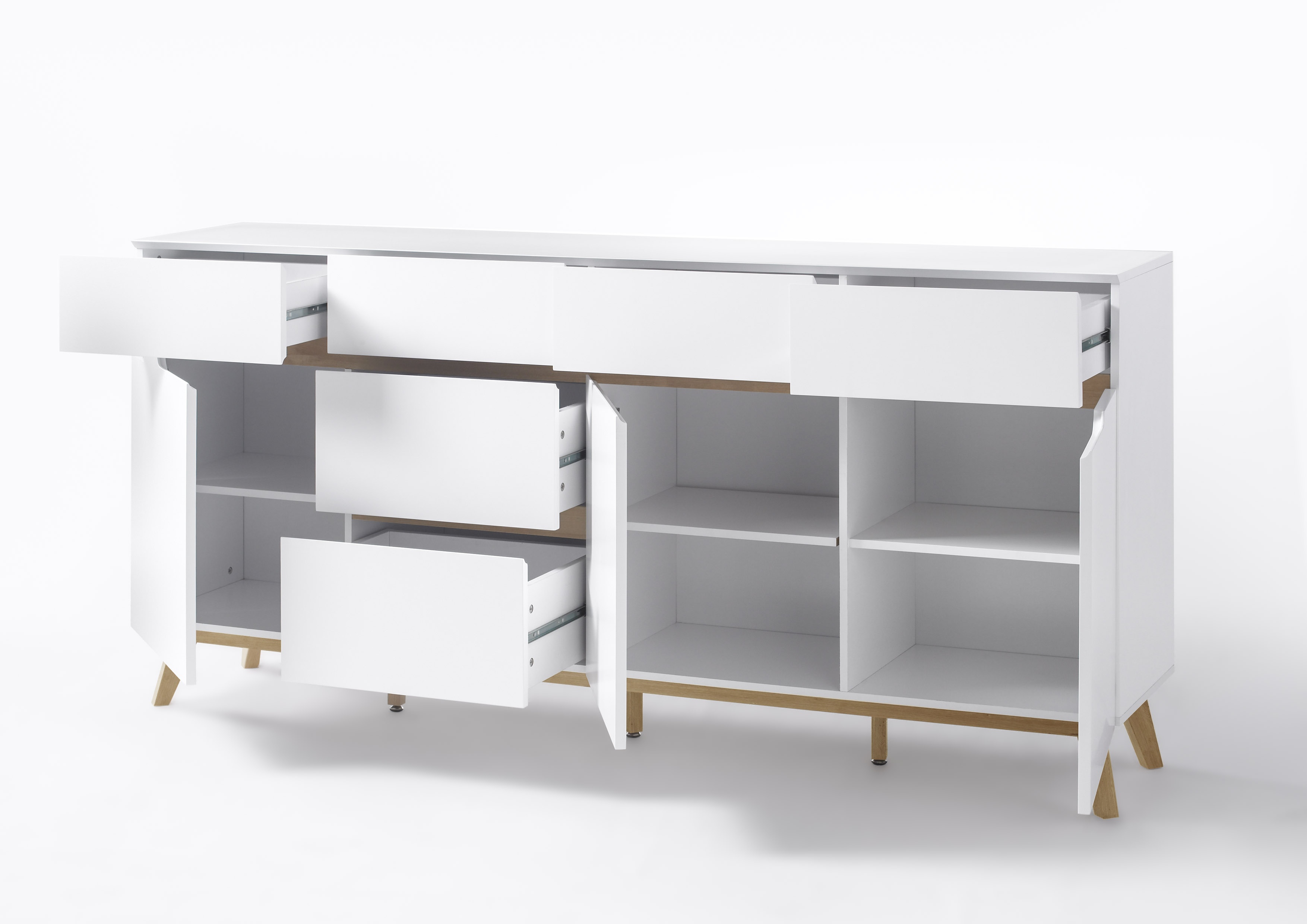 Caisson et façade : MDF (panneau de fibres de densité moyenne) laqué blanc mat