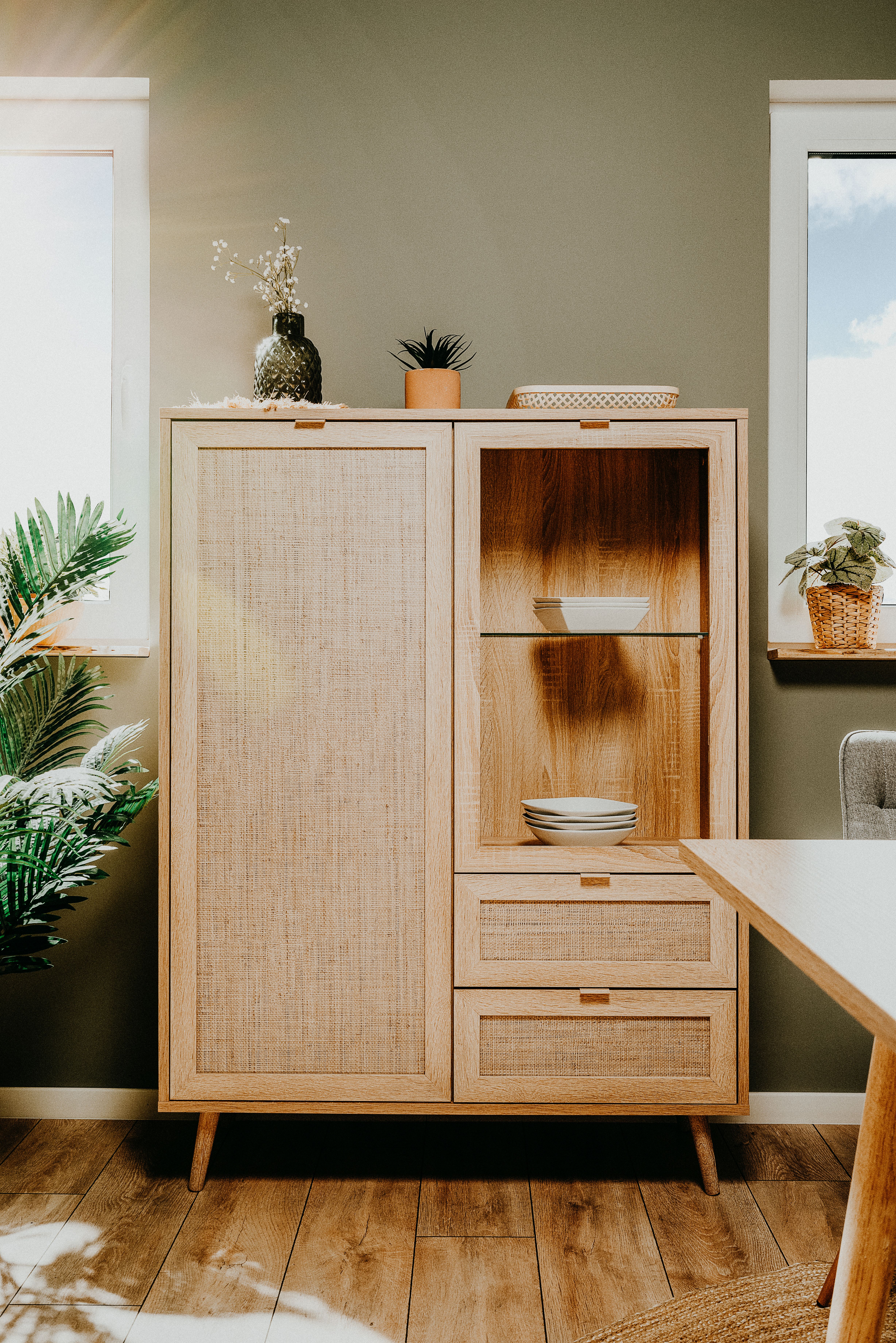 Décor chêne Sonoma / motif imprimé raphia tressé
