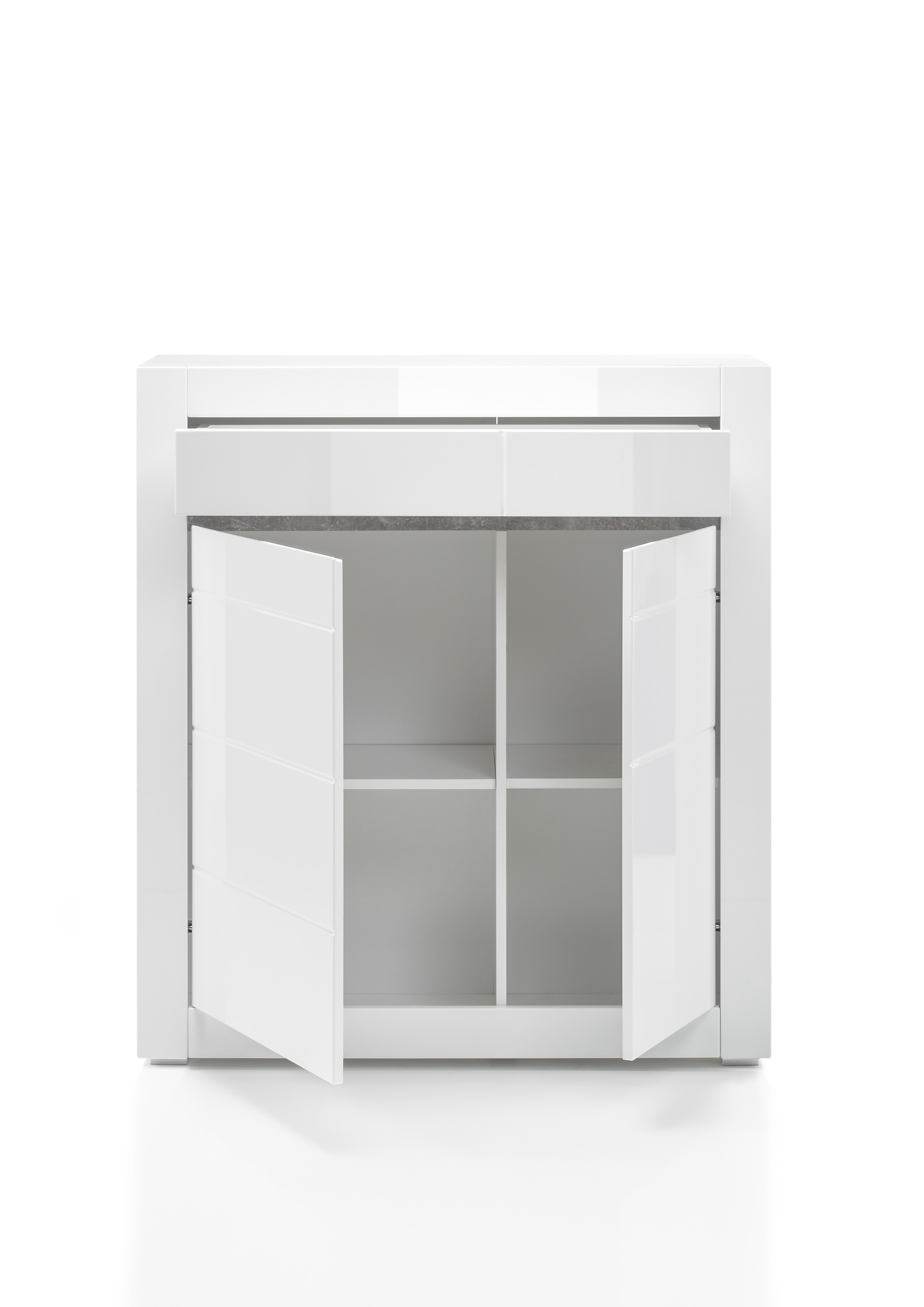 2 portes avec fermeture amortie et, derrière chacune d'elles, 1 tablette amovible