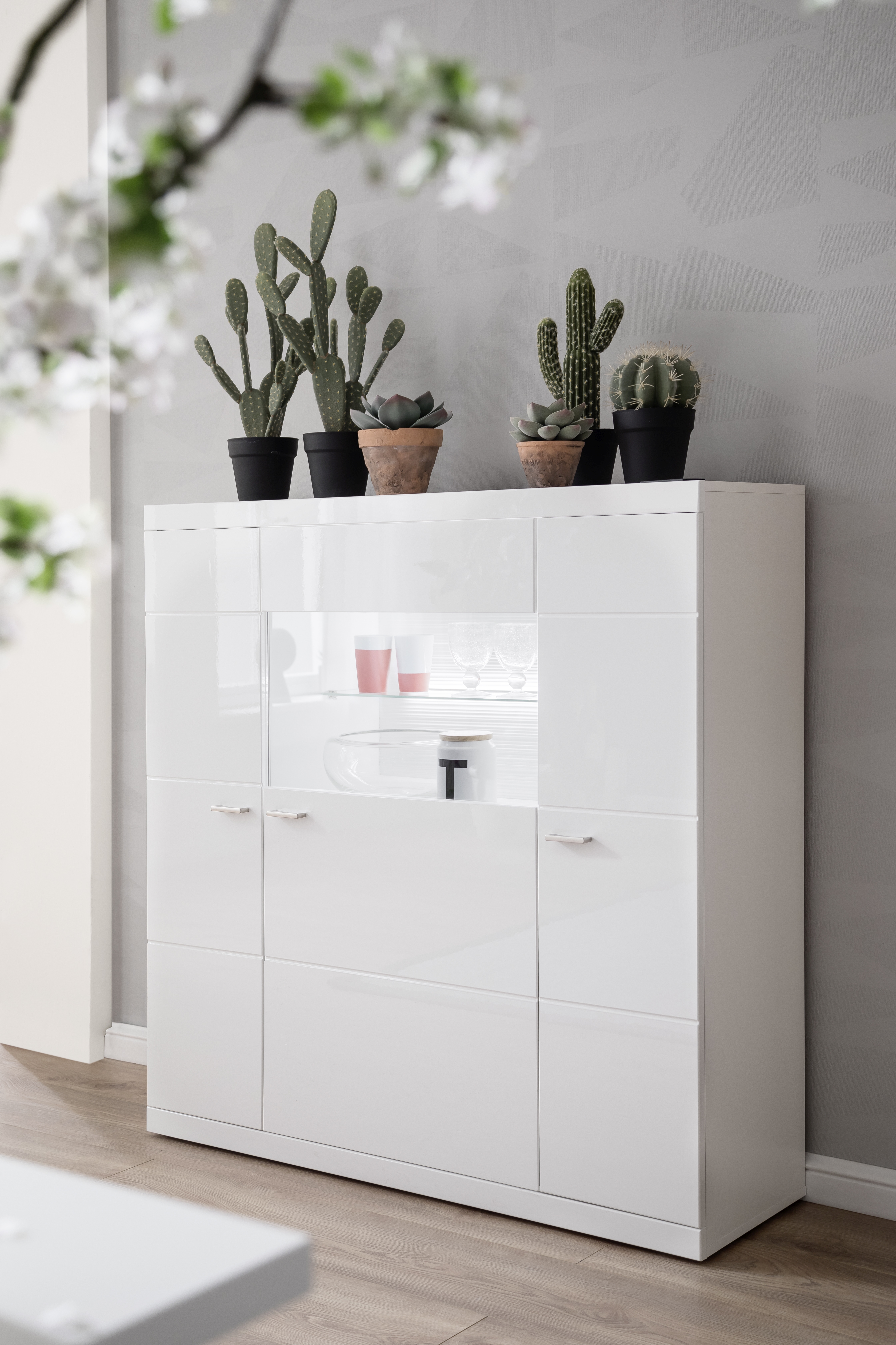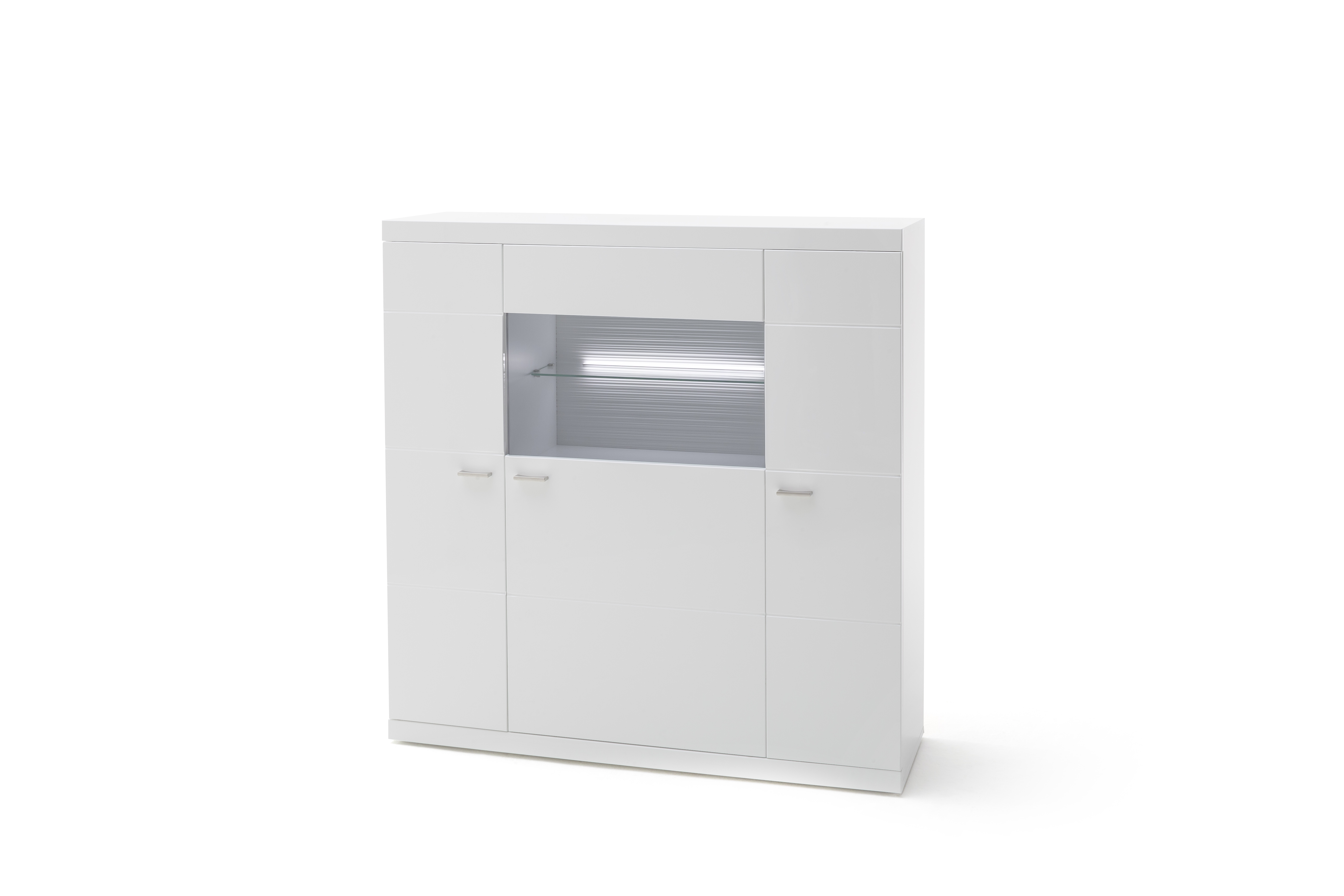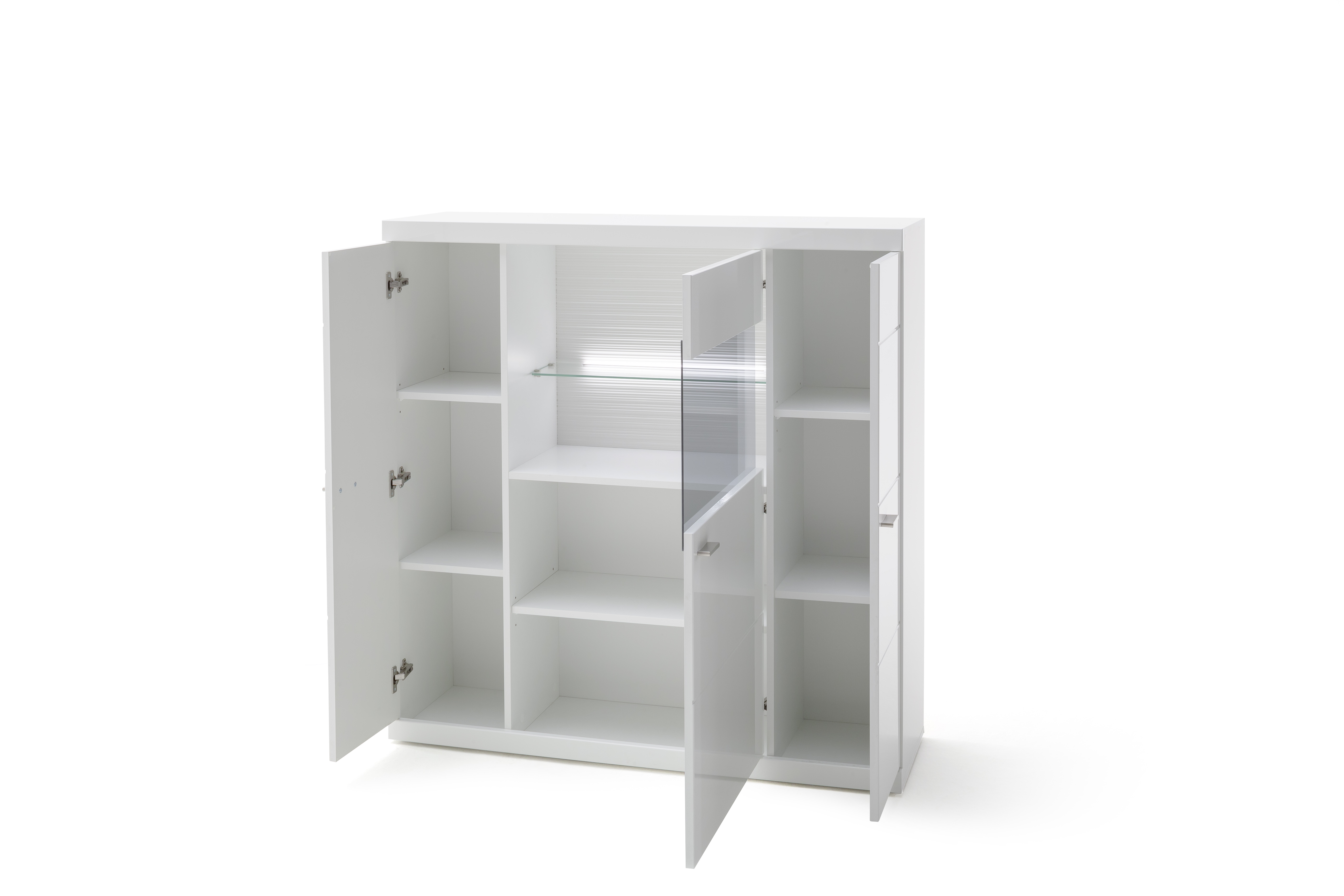 Façade : MDF (panneau de fibre de bois de densité moyenne) thermoformé ton blanc ultra brillant  / intérieur : décor bois mélaminé ton blanc / verre