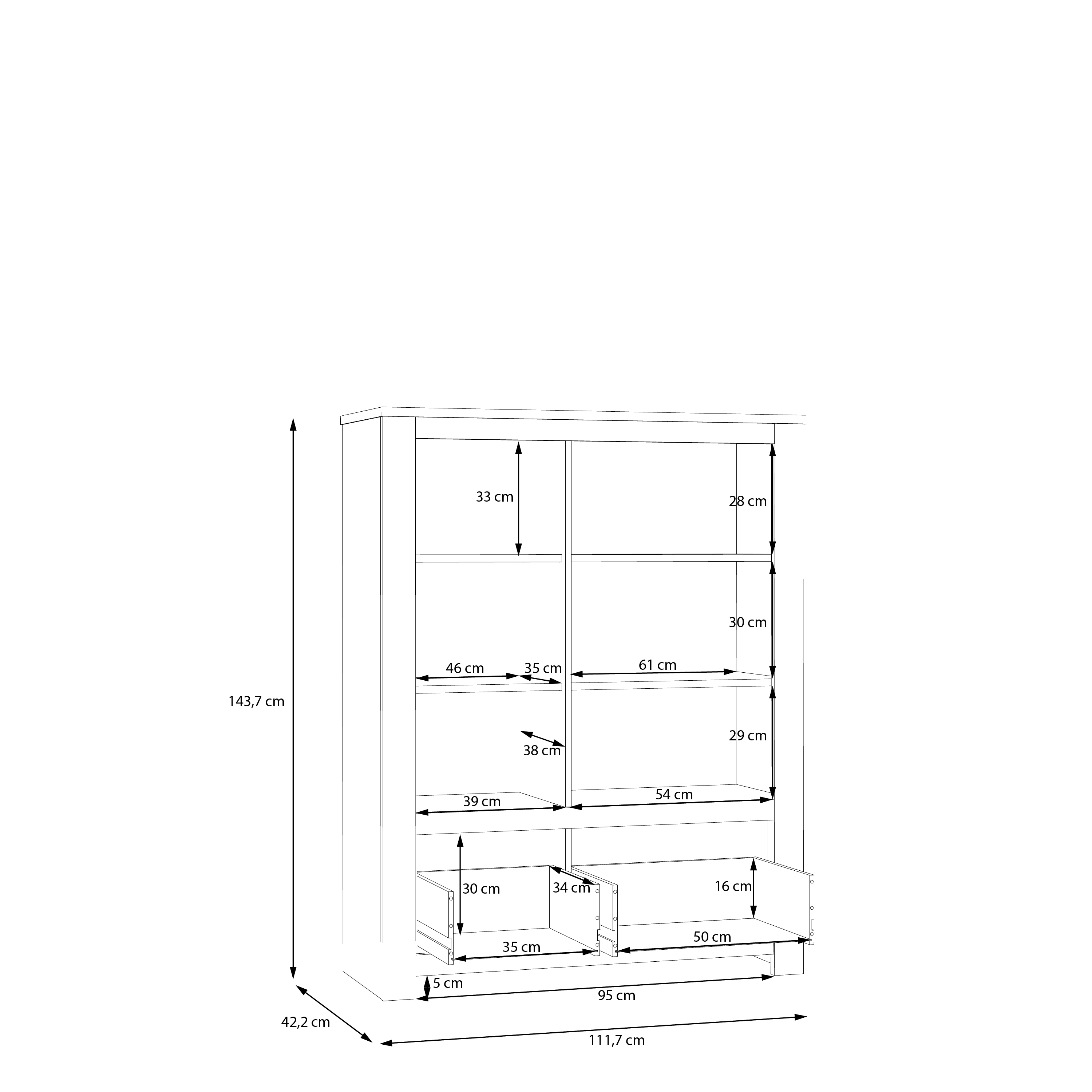 | Bahut haut vitrine | 111,7 | 143,7 | 42,2 |