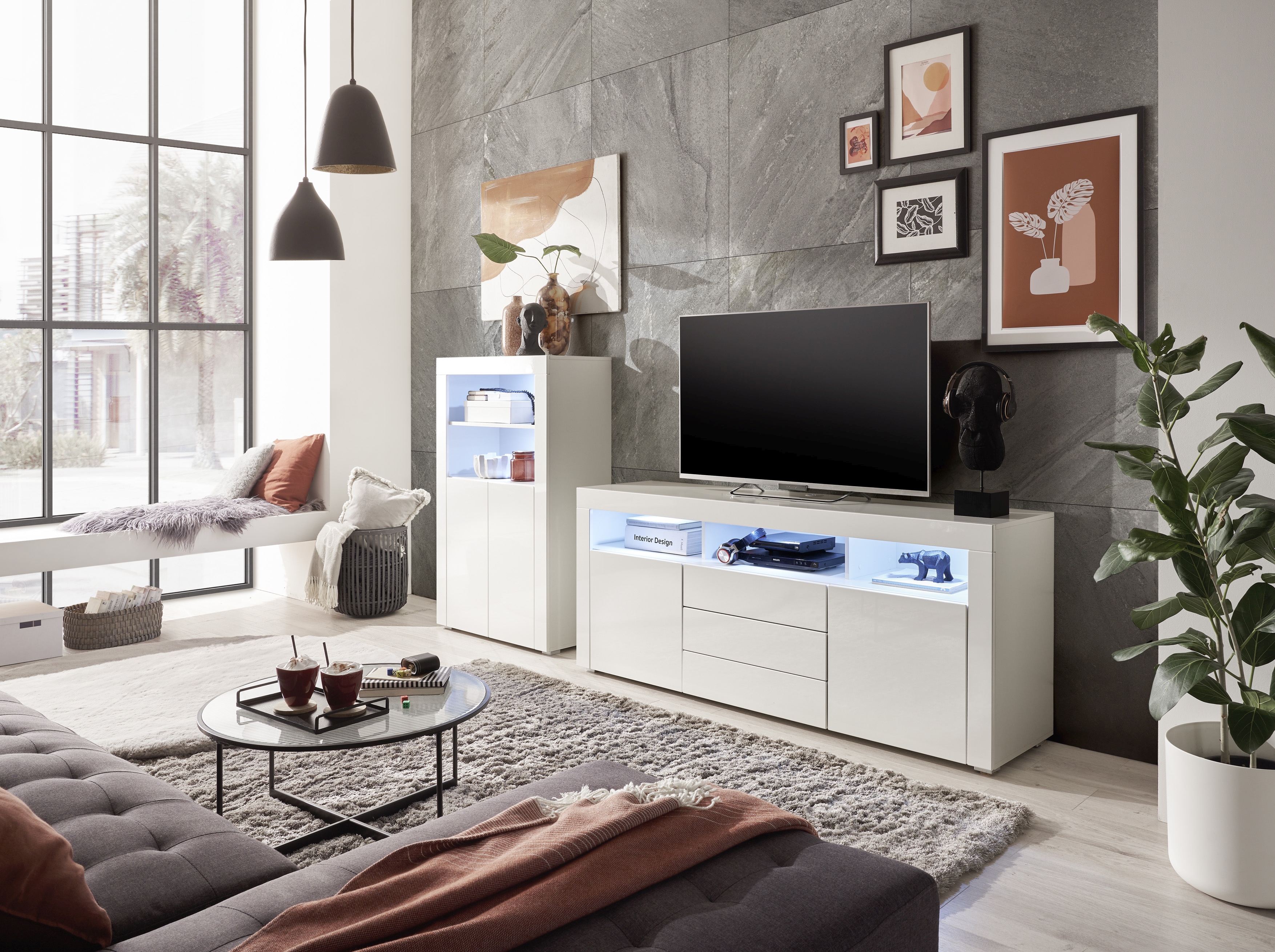 | Ausstattung Kommoden Phono Büro Regal: | Casiers ouverts, Portes, incl. éclairage | ||