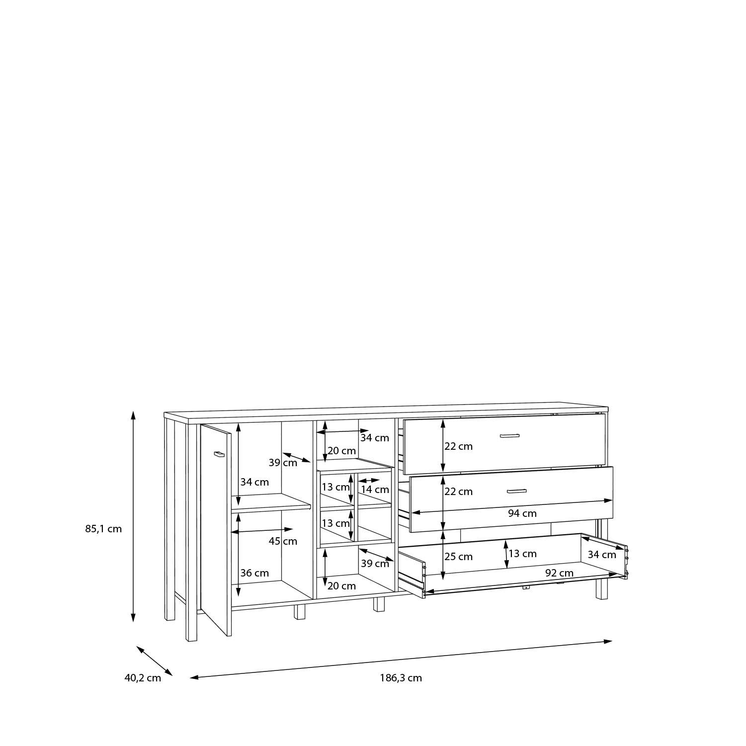 | Dimensions : | L/H/P env. 186,3/85,1/40,2 cm | ||