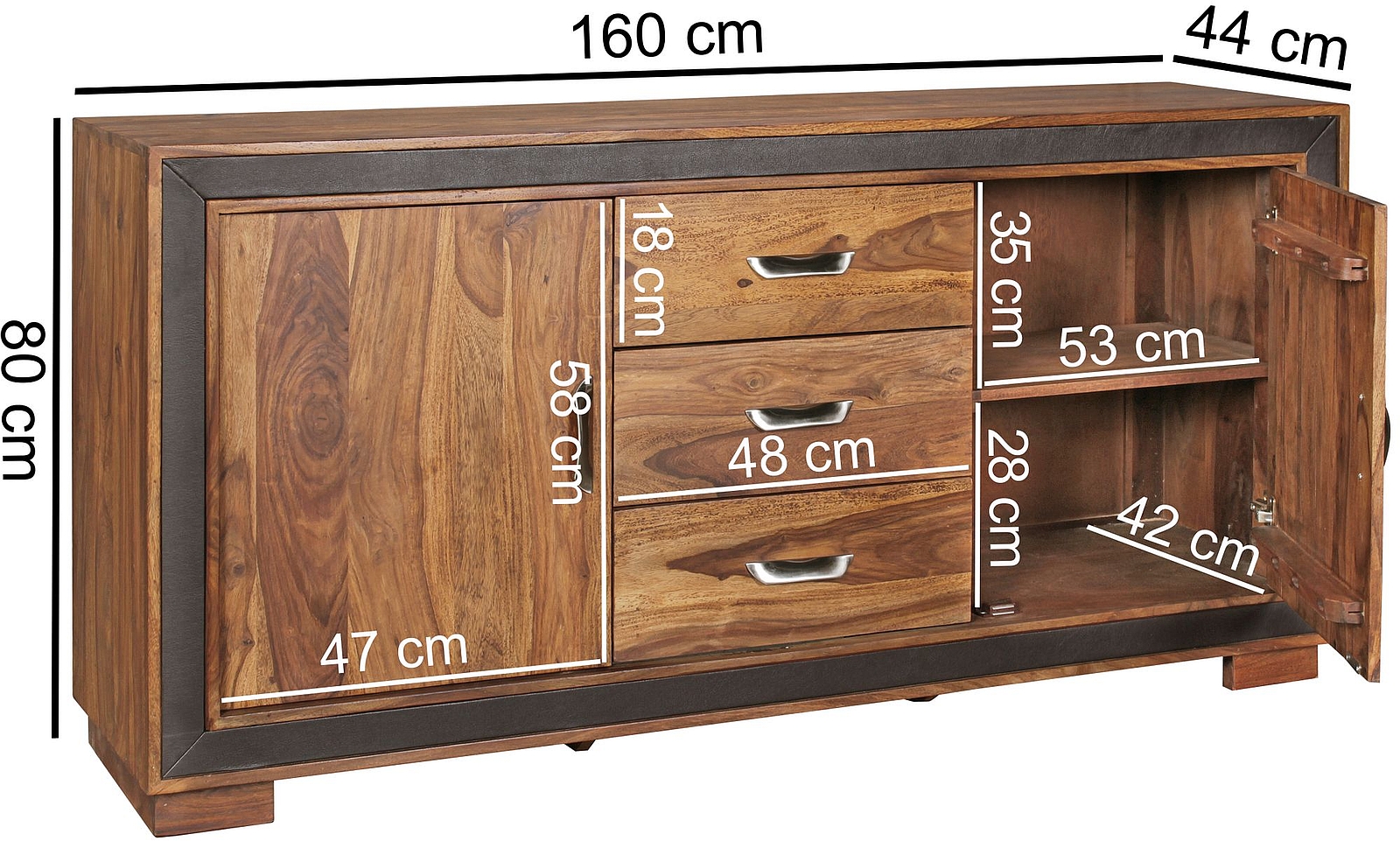 - DESIGN ✔ Grand buffet au look rustique de style campagne avec trois tiroirs et deux casiers de rangement // Encadrement en cuir au niveau de la façade du bahut