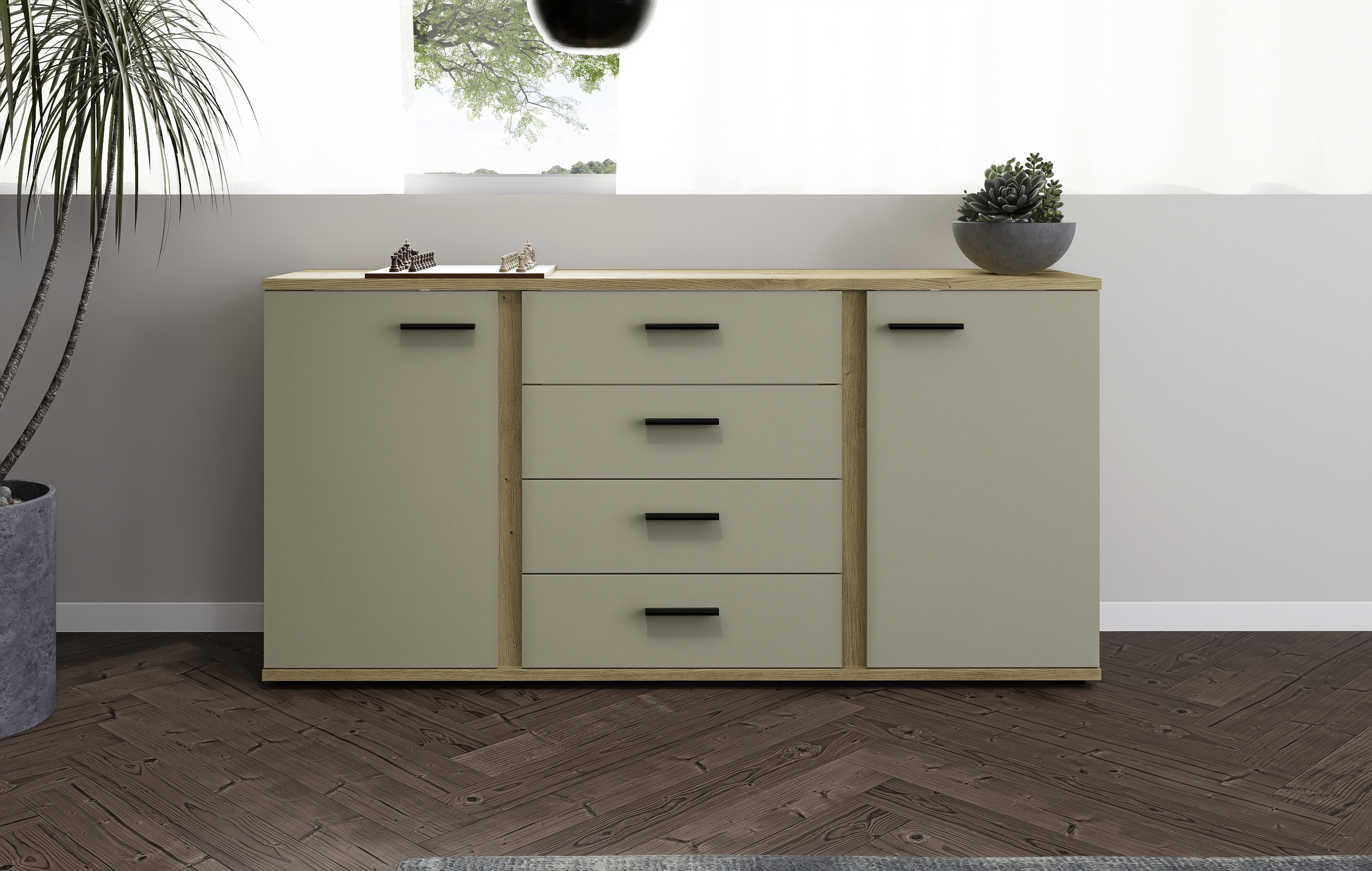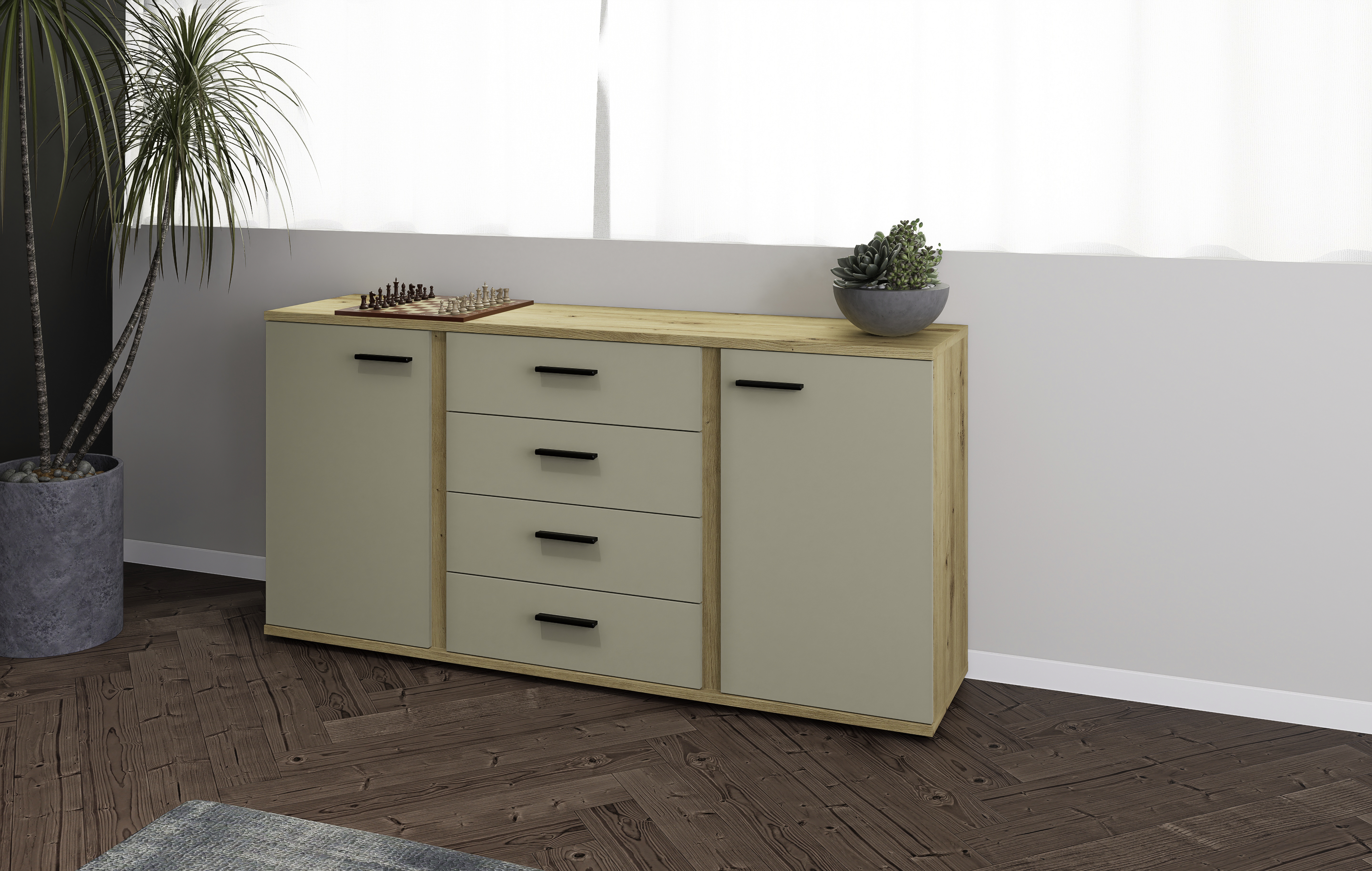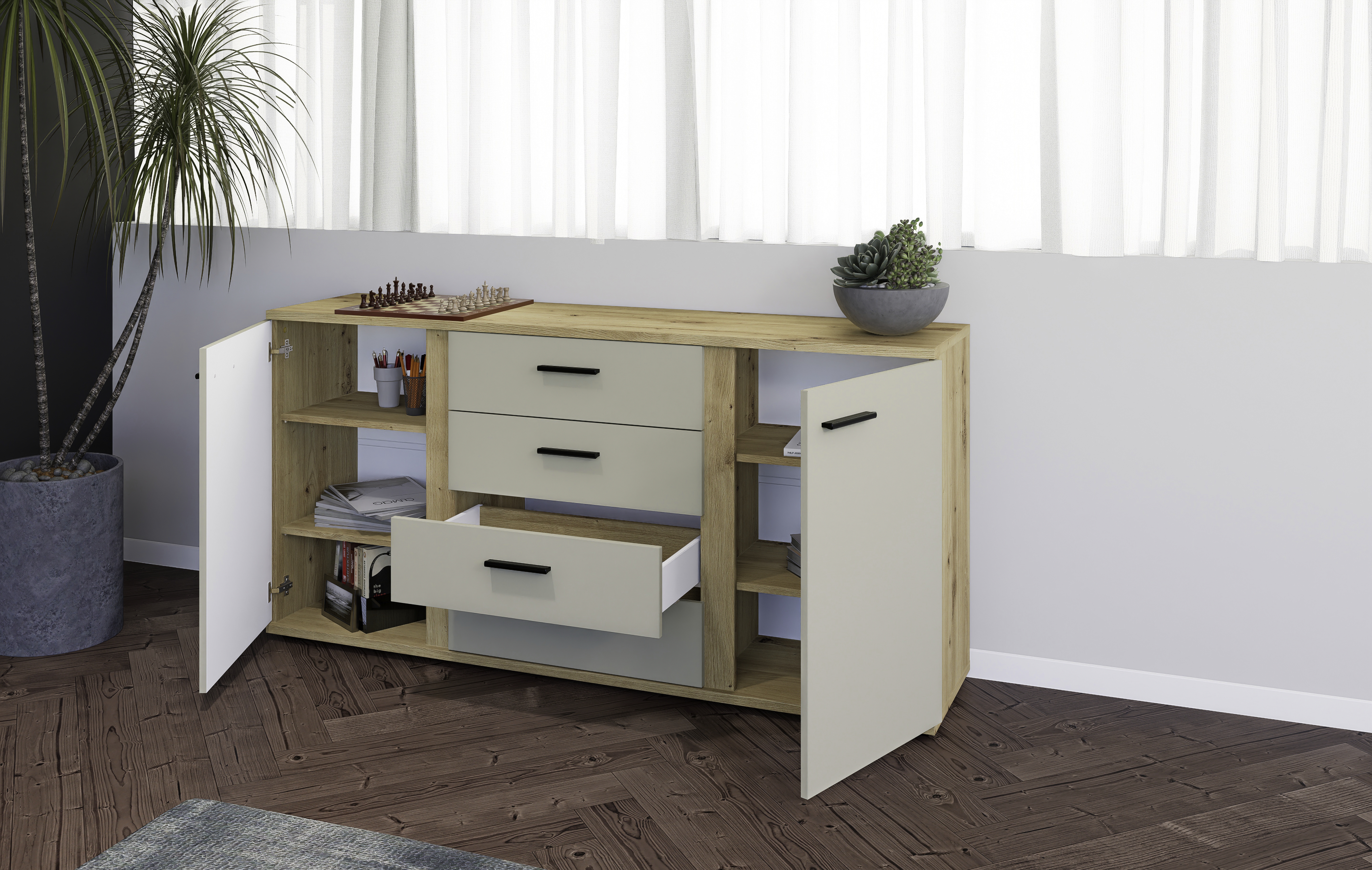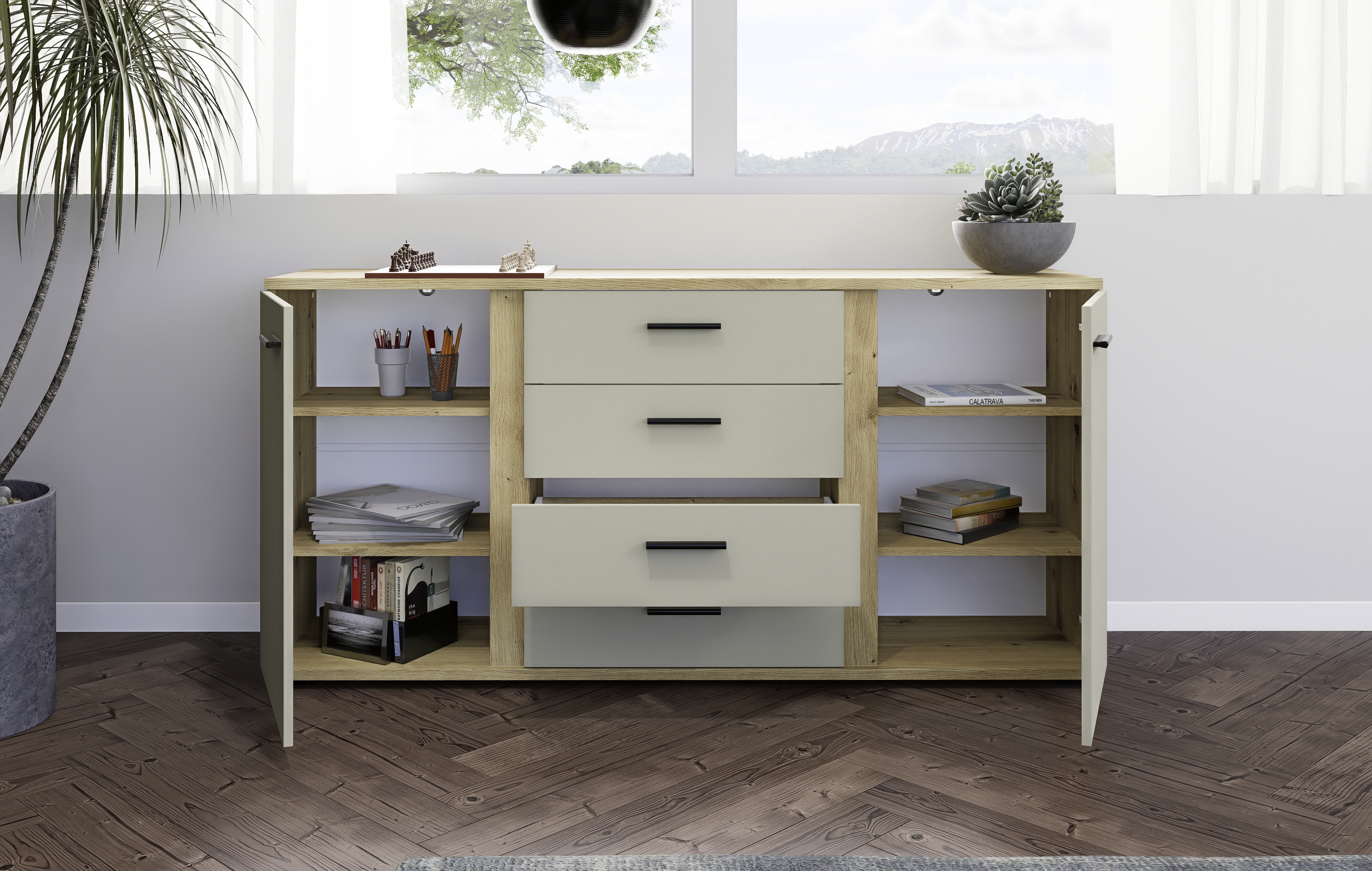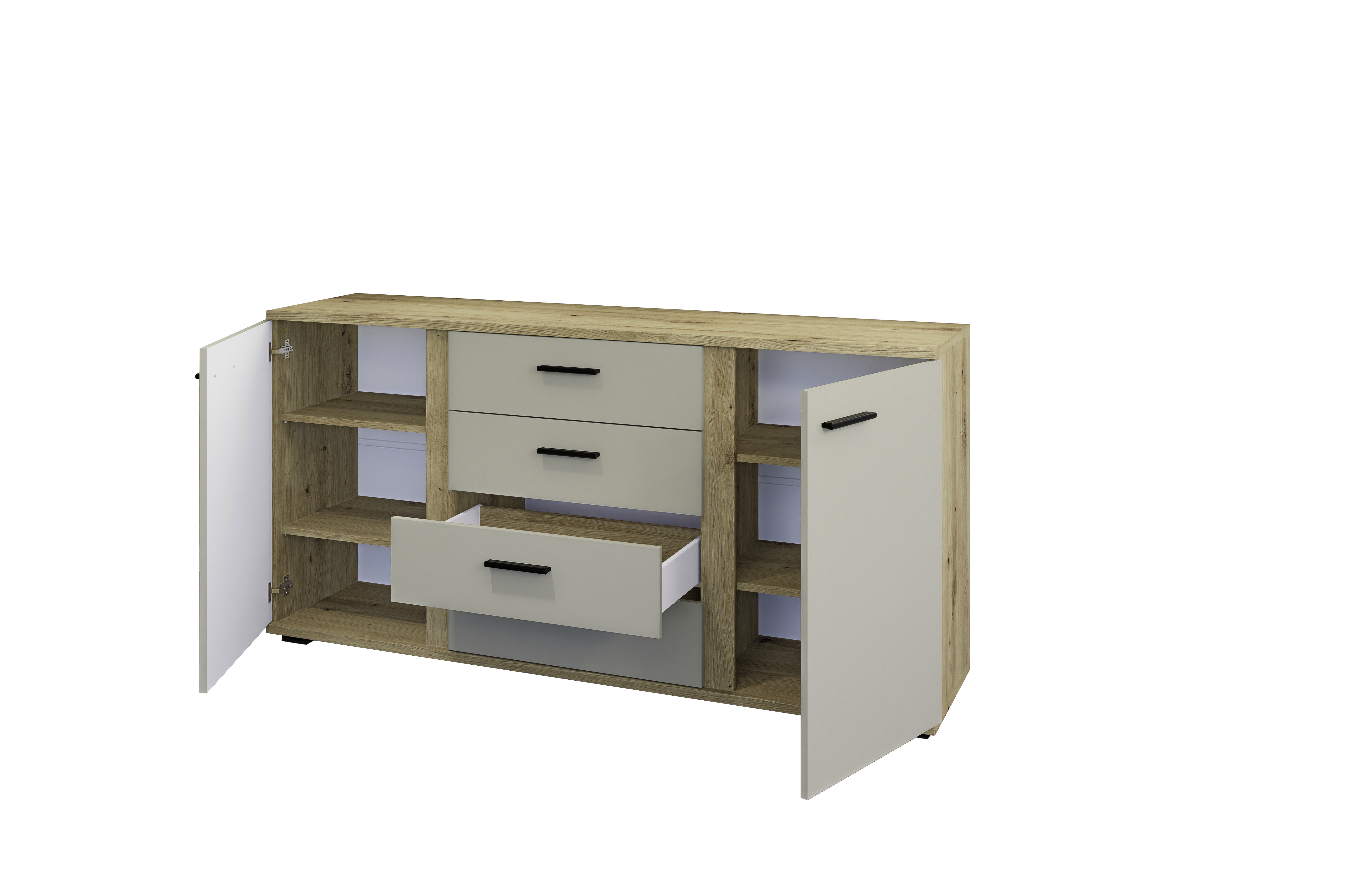 Façade : cachemire avec contrastes décor chêne Artisan, panneau de particules surfacé et mélaminé (PPSM)