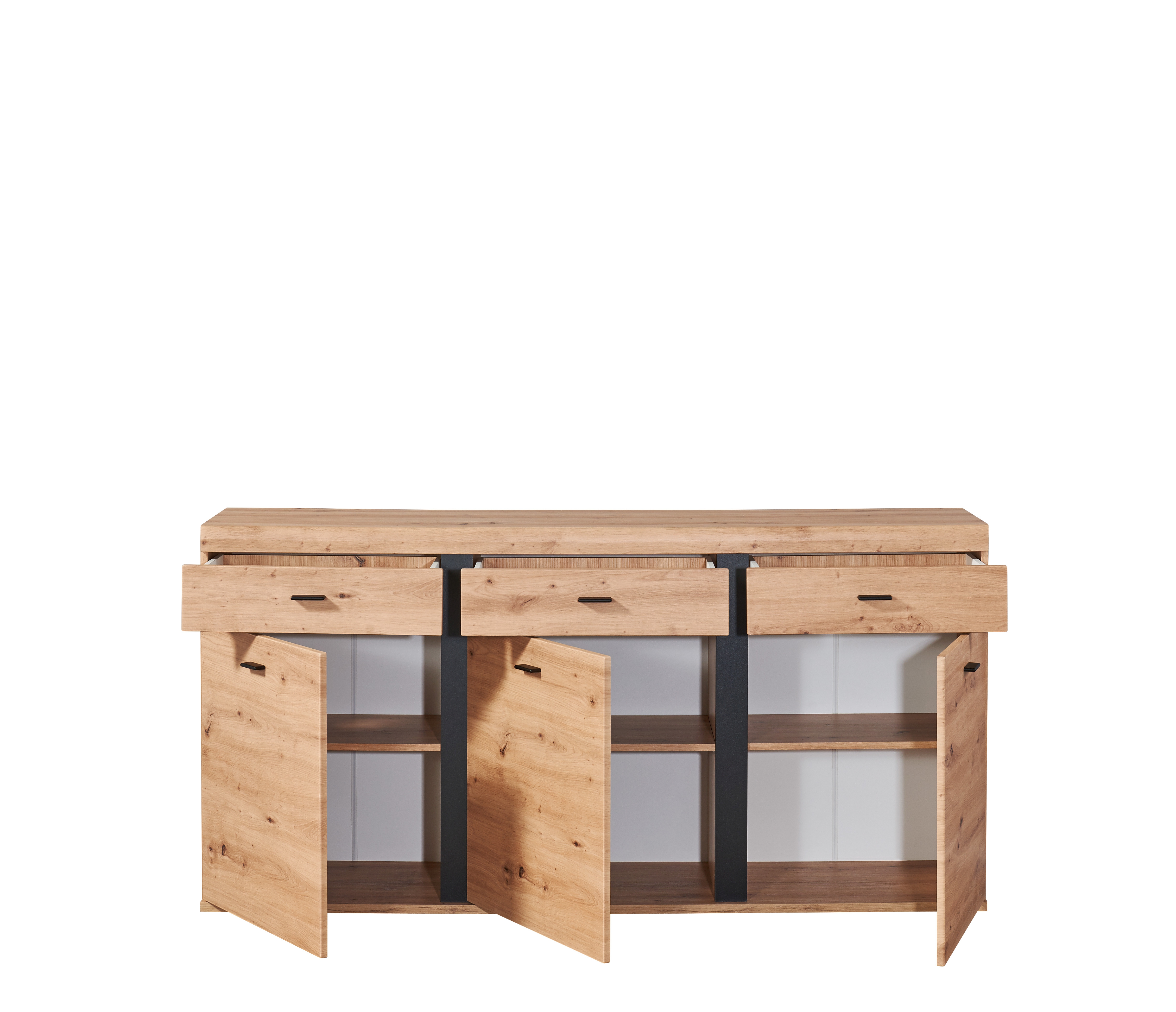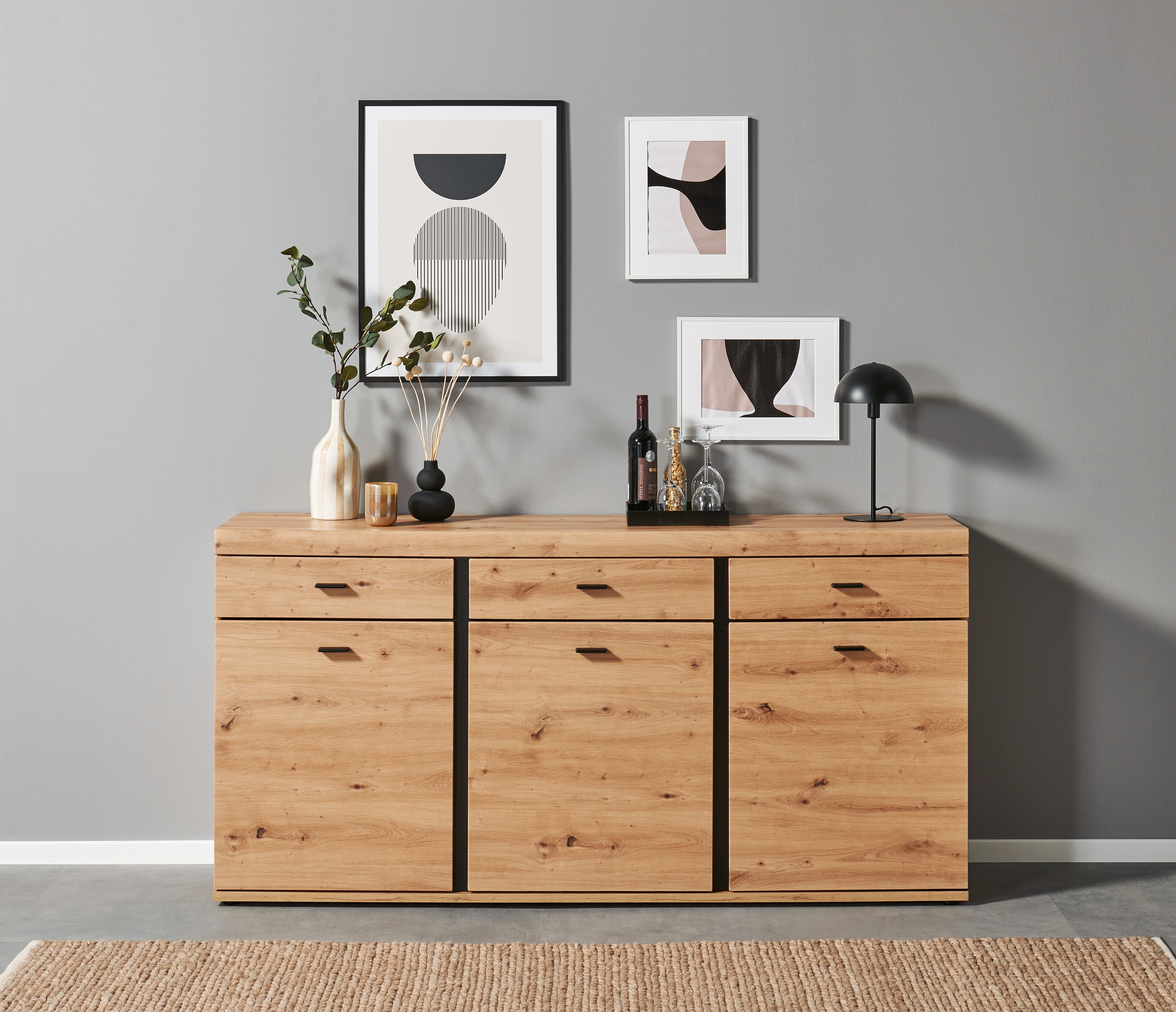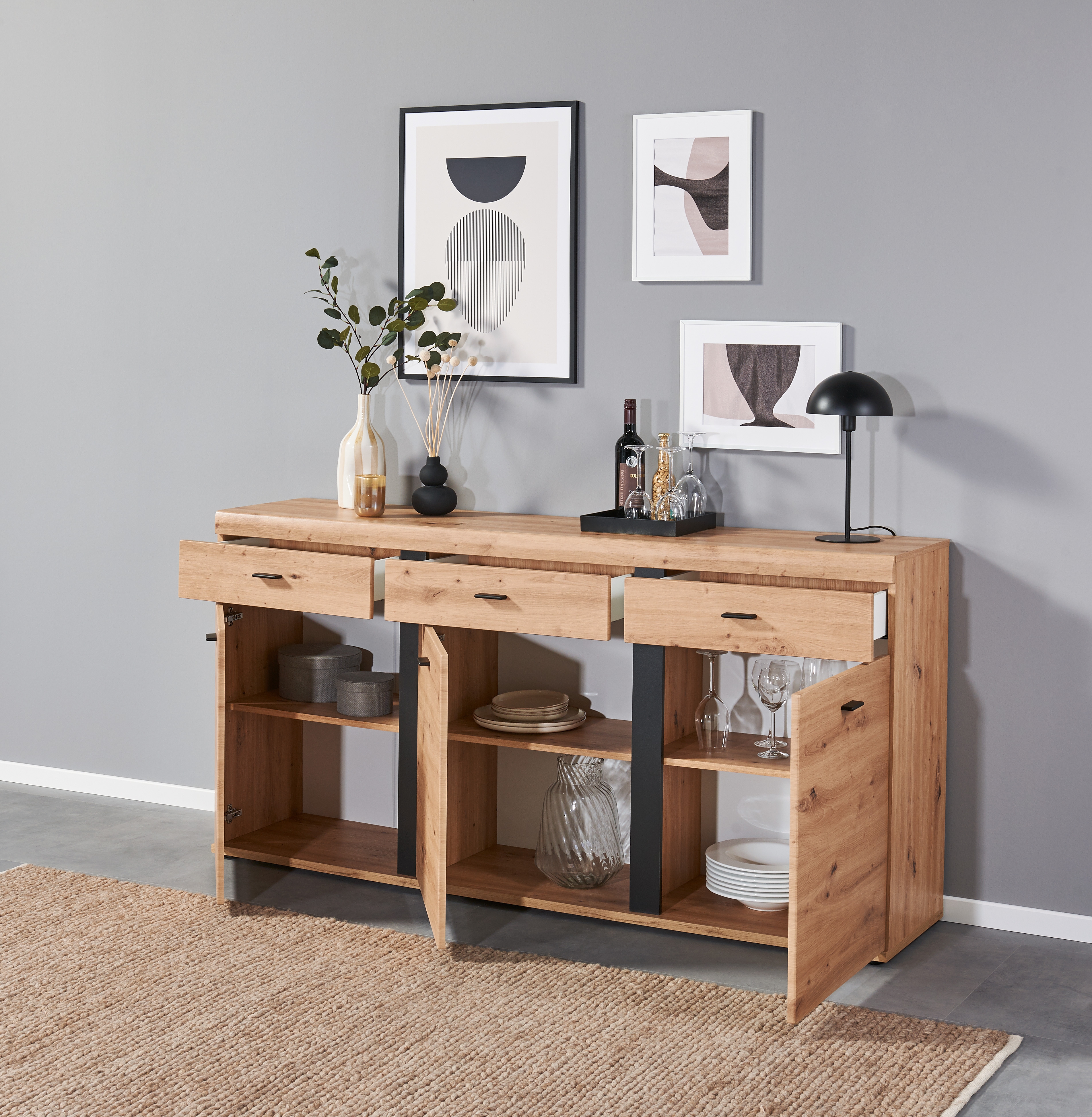 Façade : décor chêne Artisan, MDF (panneau de fibres de bois de densité moyenne) pelliculé avec contrastes ton noir (panneau de particules surfacé mélaminé (PPSM))