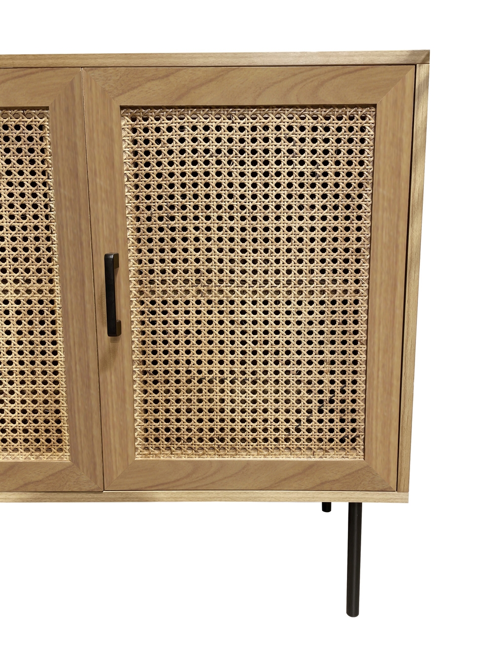 Ce bahut ton naturel avec façade en cannage fera entrer une touche chic et rétro dans votre intérieur. Derrière les deux portes, ce buffet offre un bel espace de rangement pour vos effets personnels. Le bahut est très polyvalent et peut s'utiliser dans le salon, la salle à manger, la chambre à coucher, mais aussi le couloir ou l'entrée tout en conférant à chaque pièce un charme particulier.