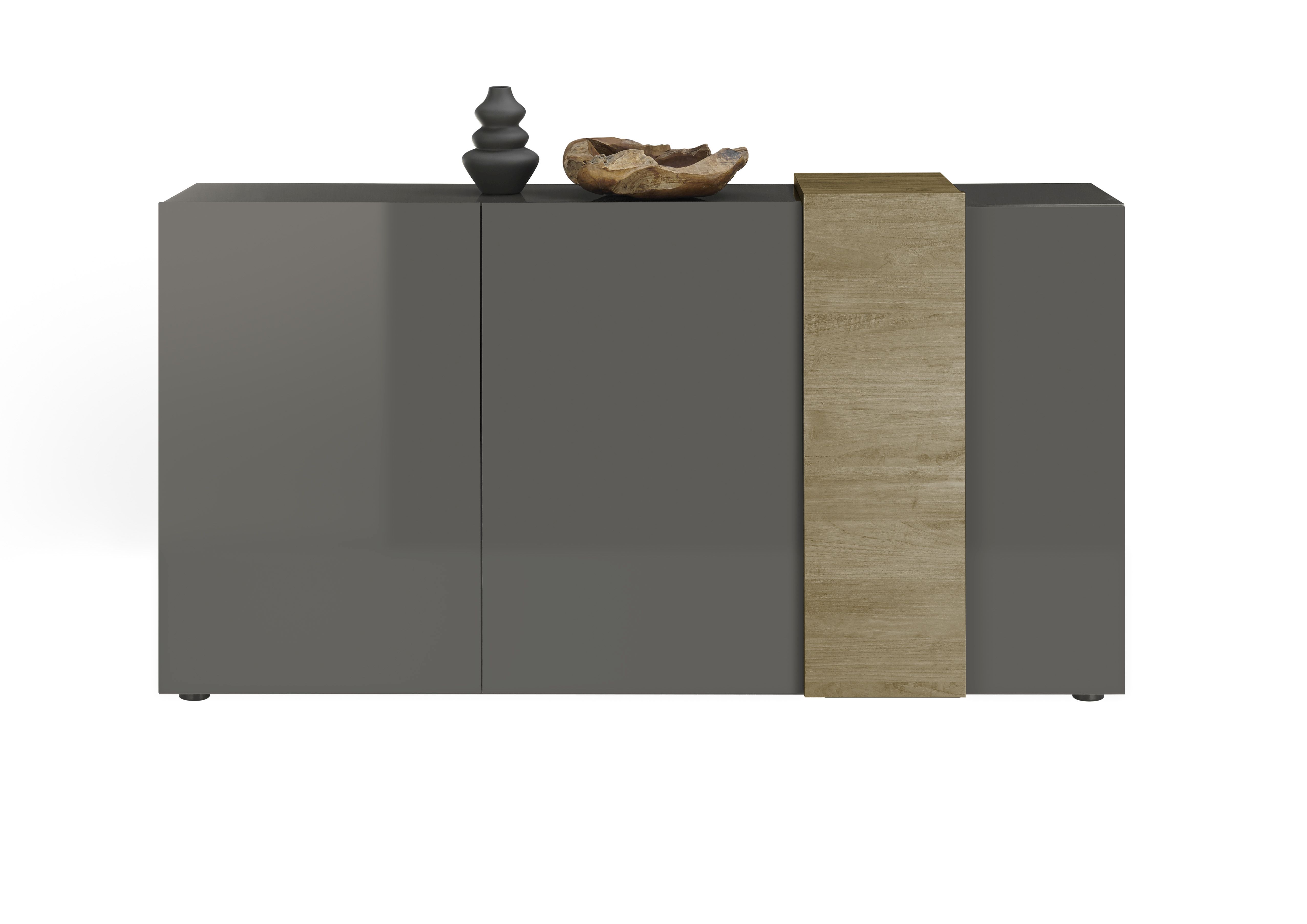Façade et caisson : ton gris foncé ultra brillant avec contrastes décor bois Mercure